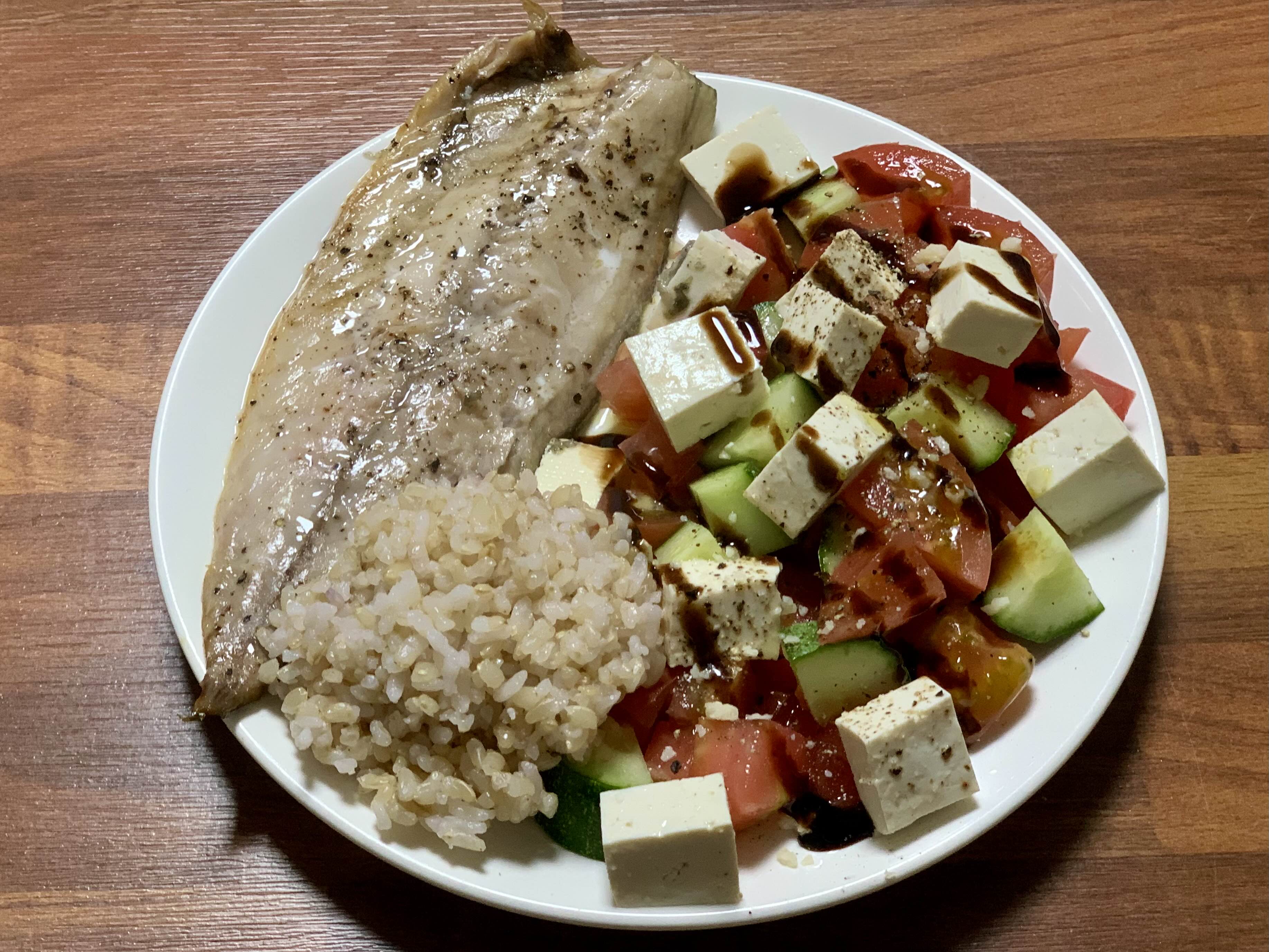 차가운 생손두부는 밀도가 있어서 발사믹소스와 먹으면 생모짜렐라 치즈 같은 느낌이다. 다이어트식단이 이렇게 맛있어도 되나. 오늘은 현미밥도 60g추가했다.