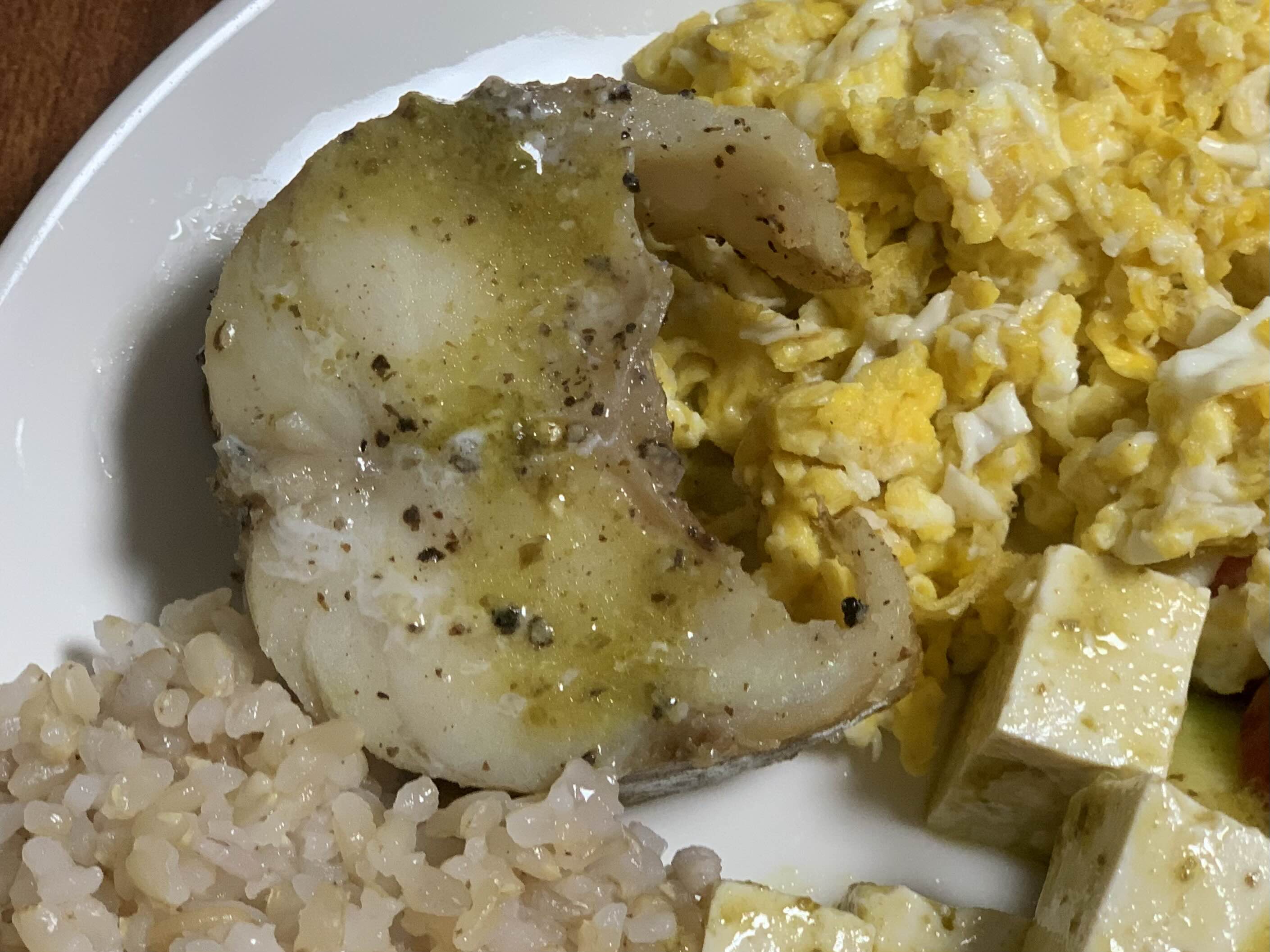 구운 대구살스테이크, 구운코다리 위에도 바질페스토 소스 올렸다.