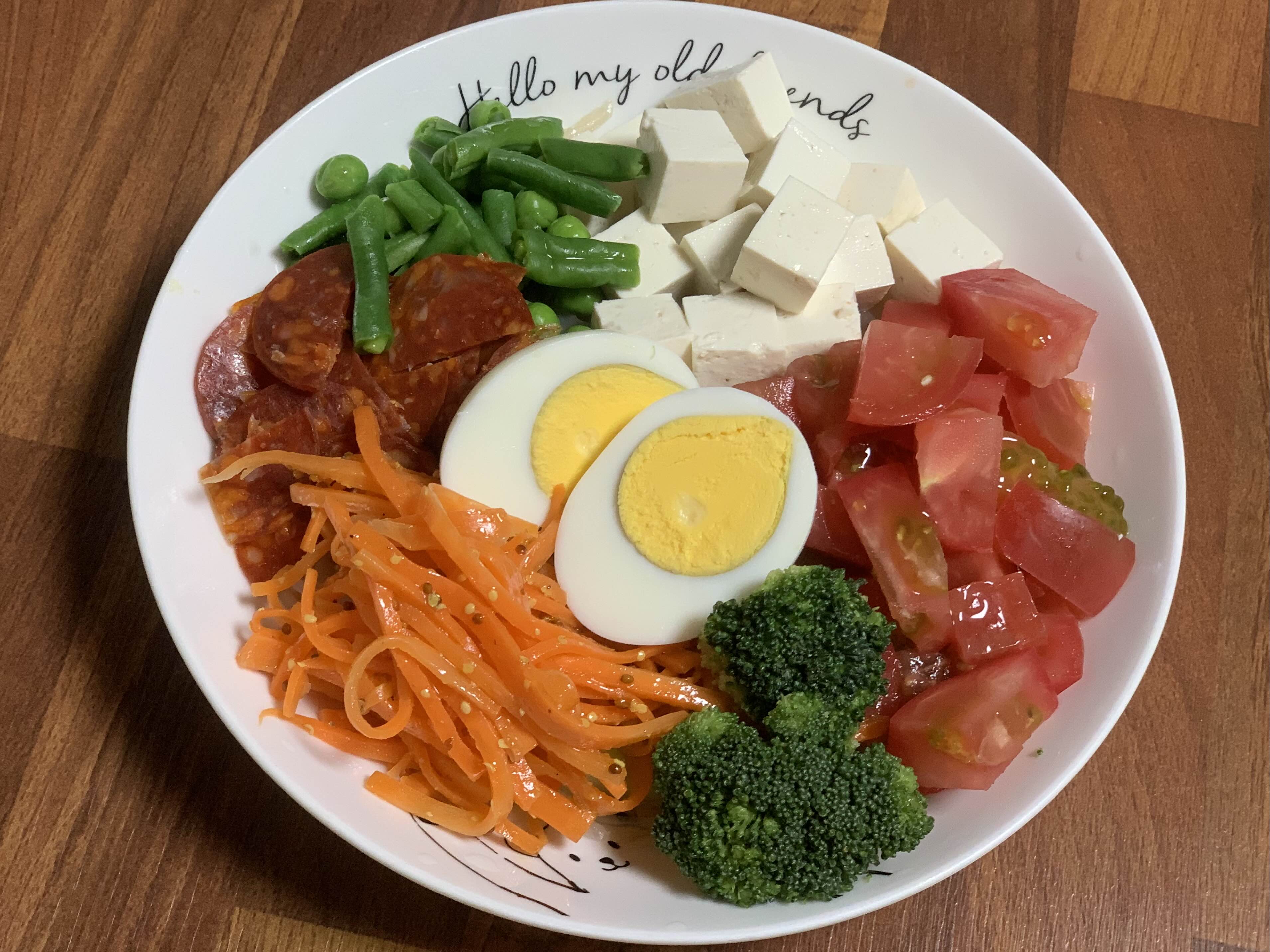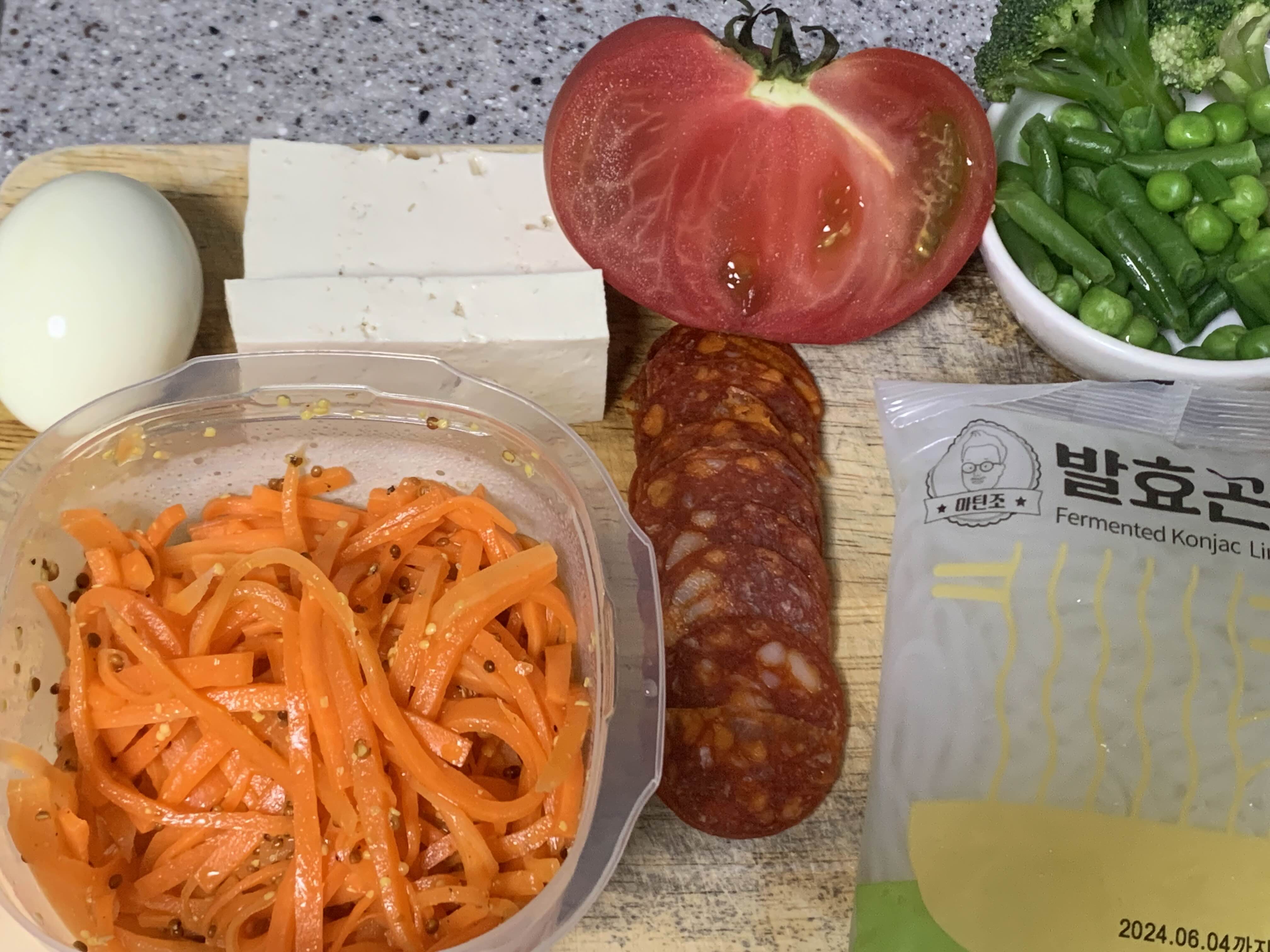 초리조곤약면샐러드 파스타에 당근라페 함께 곁들여 먹었다.
