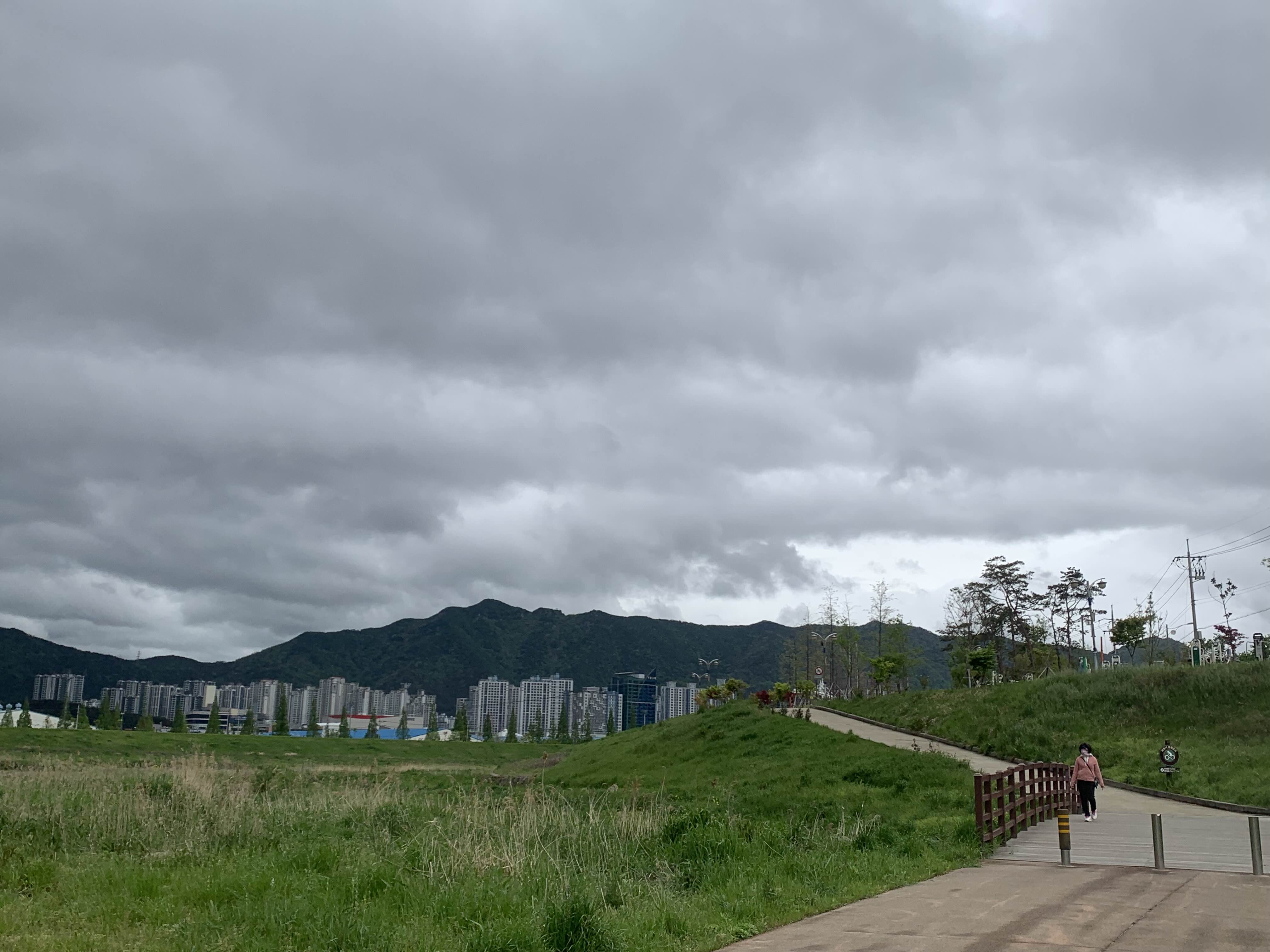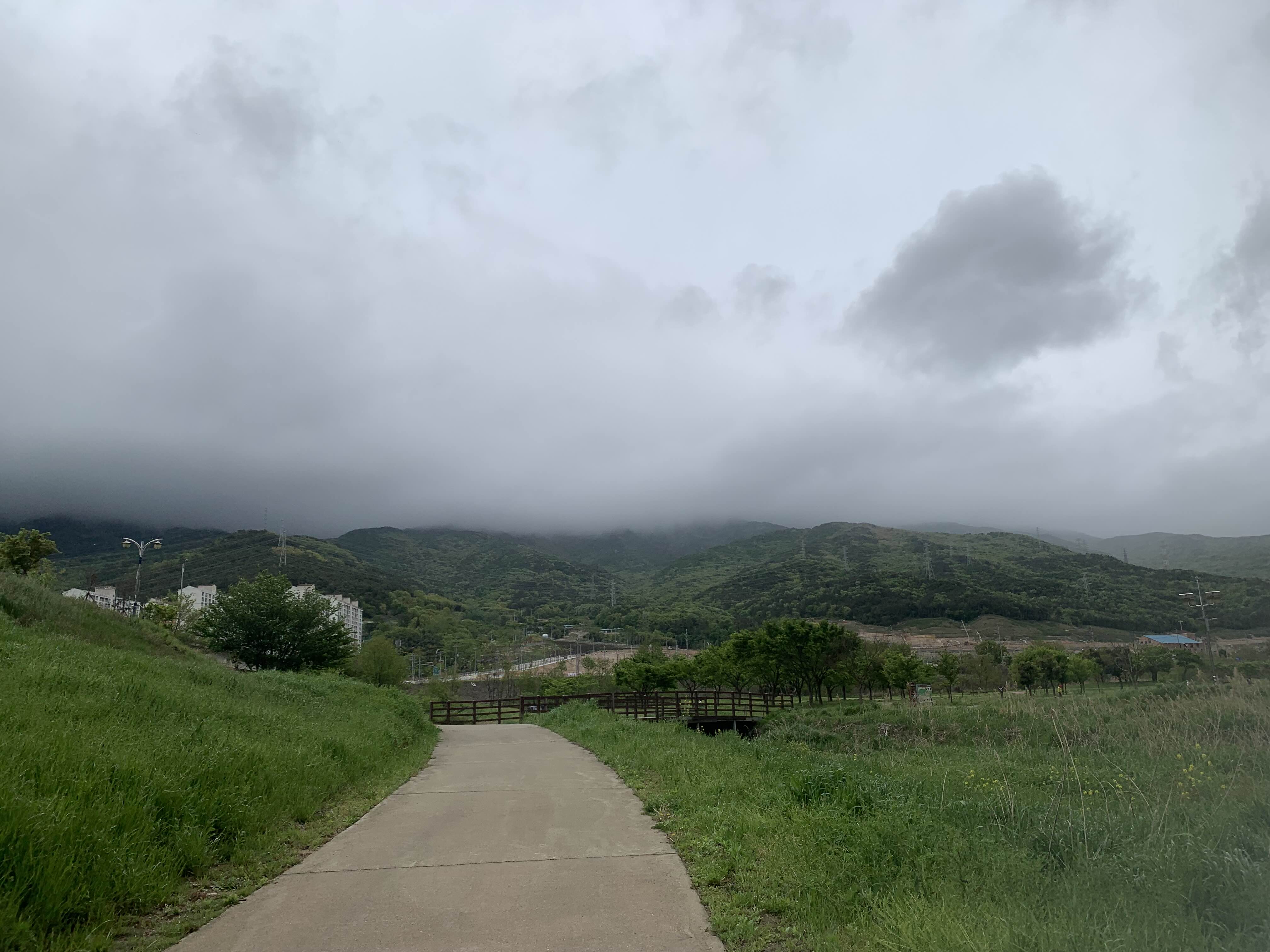 흐리긴 하지만 비와서 미세먼지도 없고 공기 좋다.