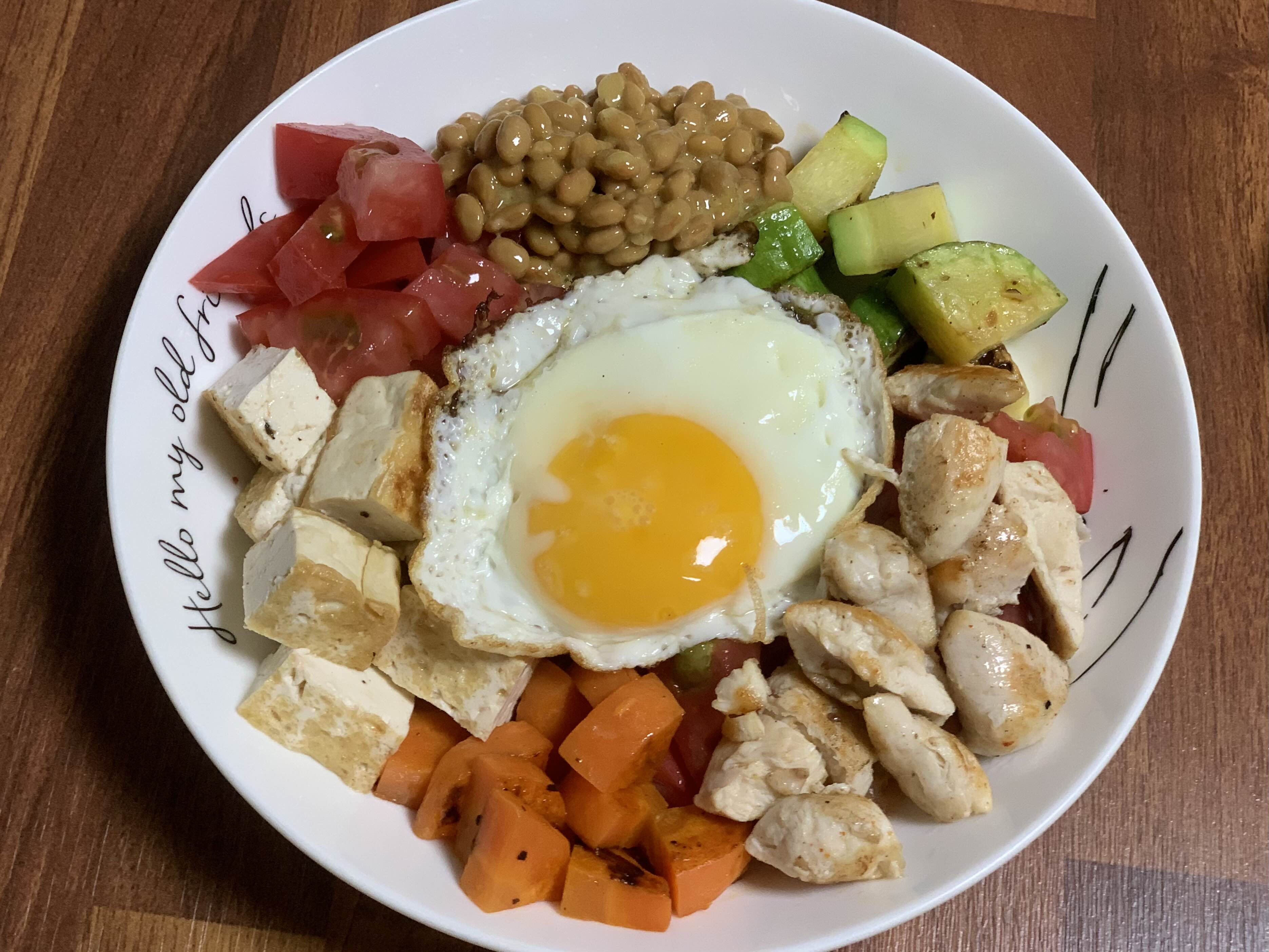 닭안심(닭가슴살)구워서 계란올리고 소스 올려서 비벼 먹으면 된다.