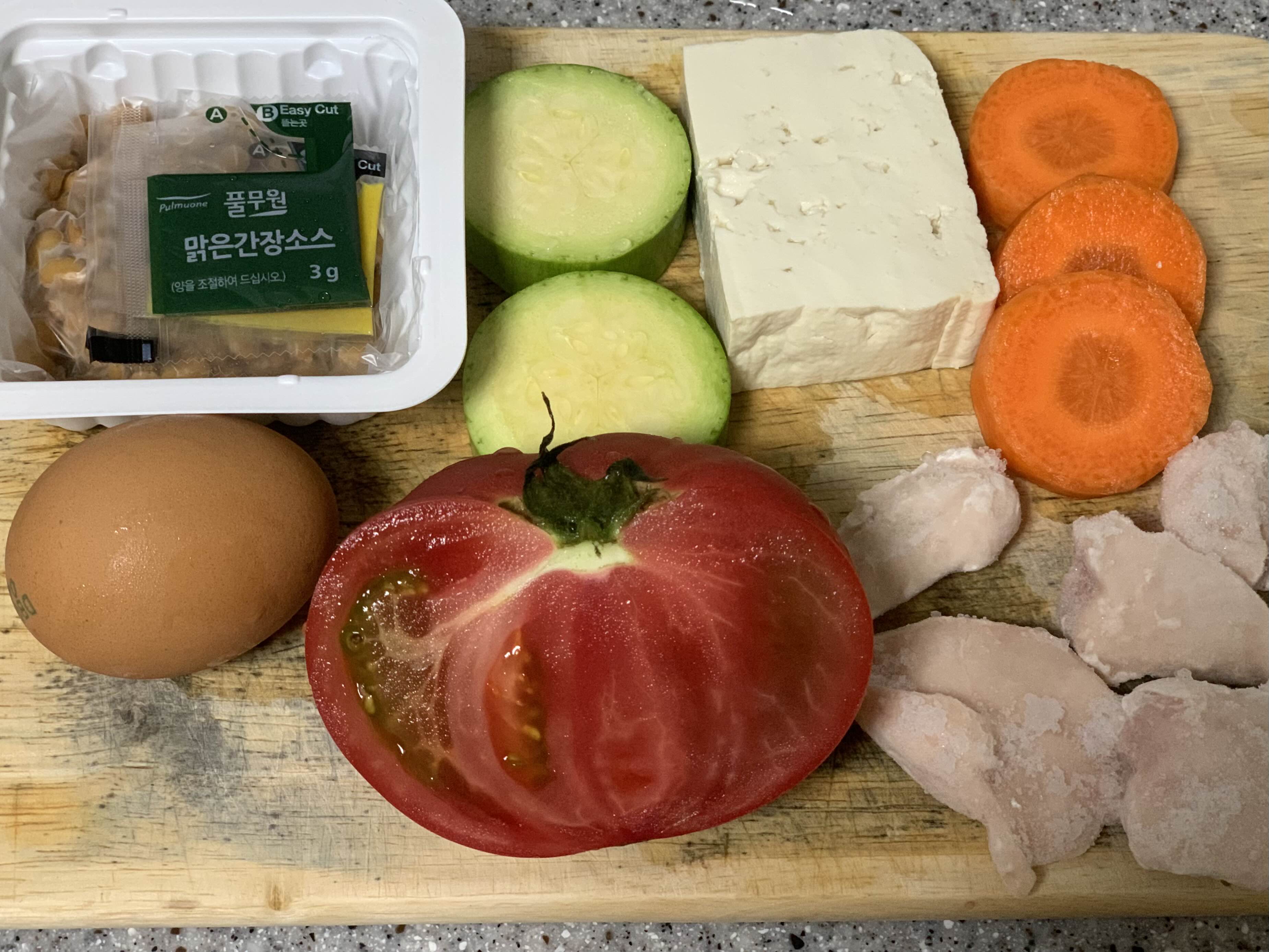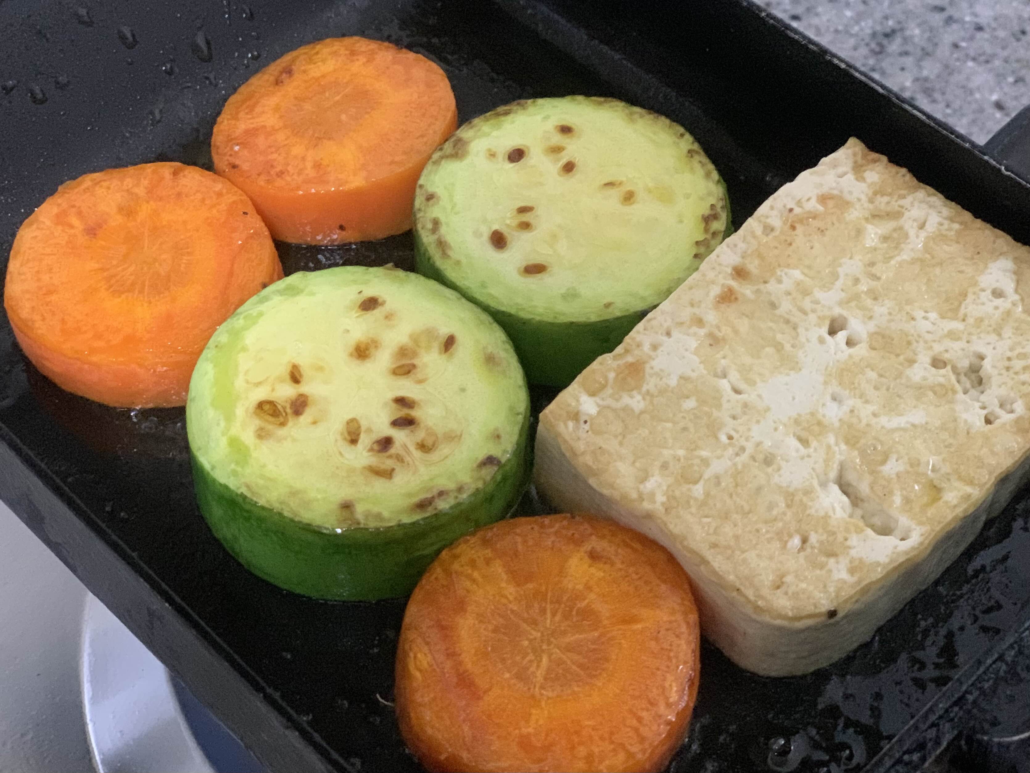애호박, 당근, 두부 올리브오일에 굽고