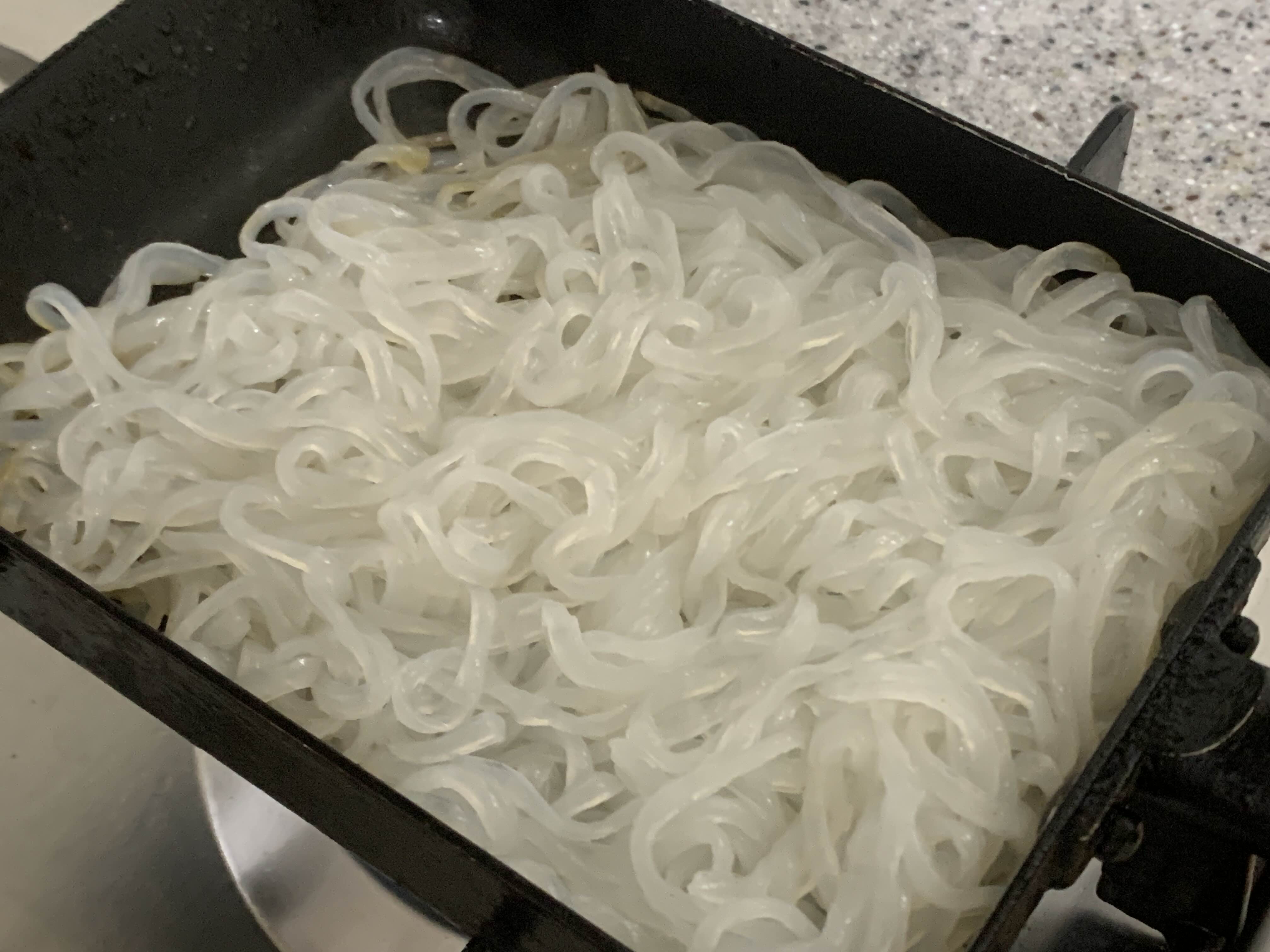 곤약면은 기름 두르지 않은 팬에 한번 볶아서 수분을 날려주면 소스가 잘 베여서 더 맛있게 먹을 수 있다.