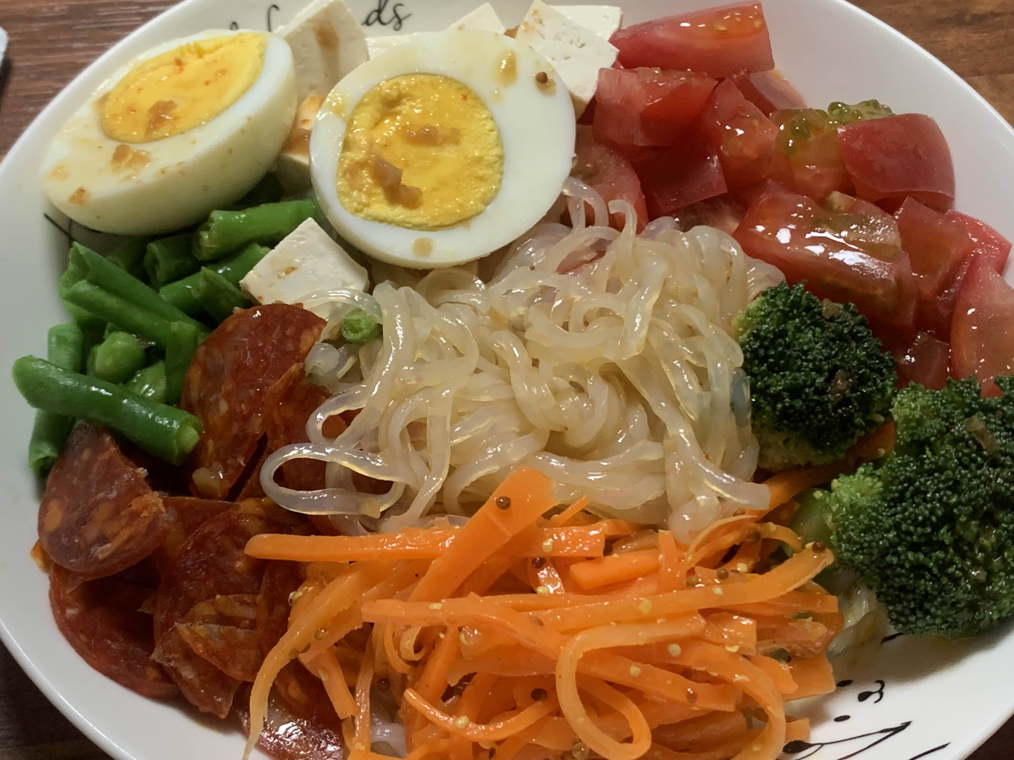 저녁 다이어트식단 초리조곤약면샐러드파스타