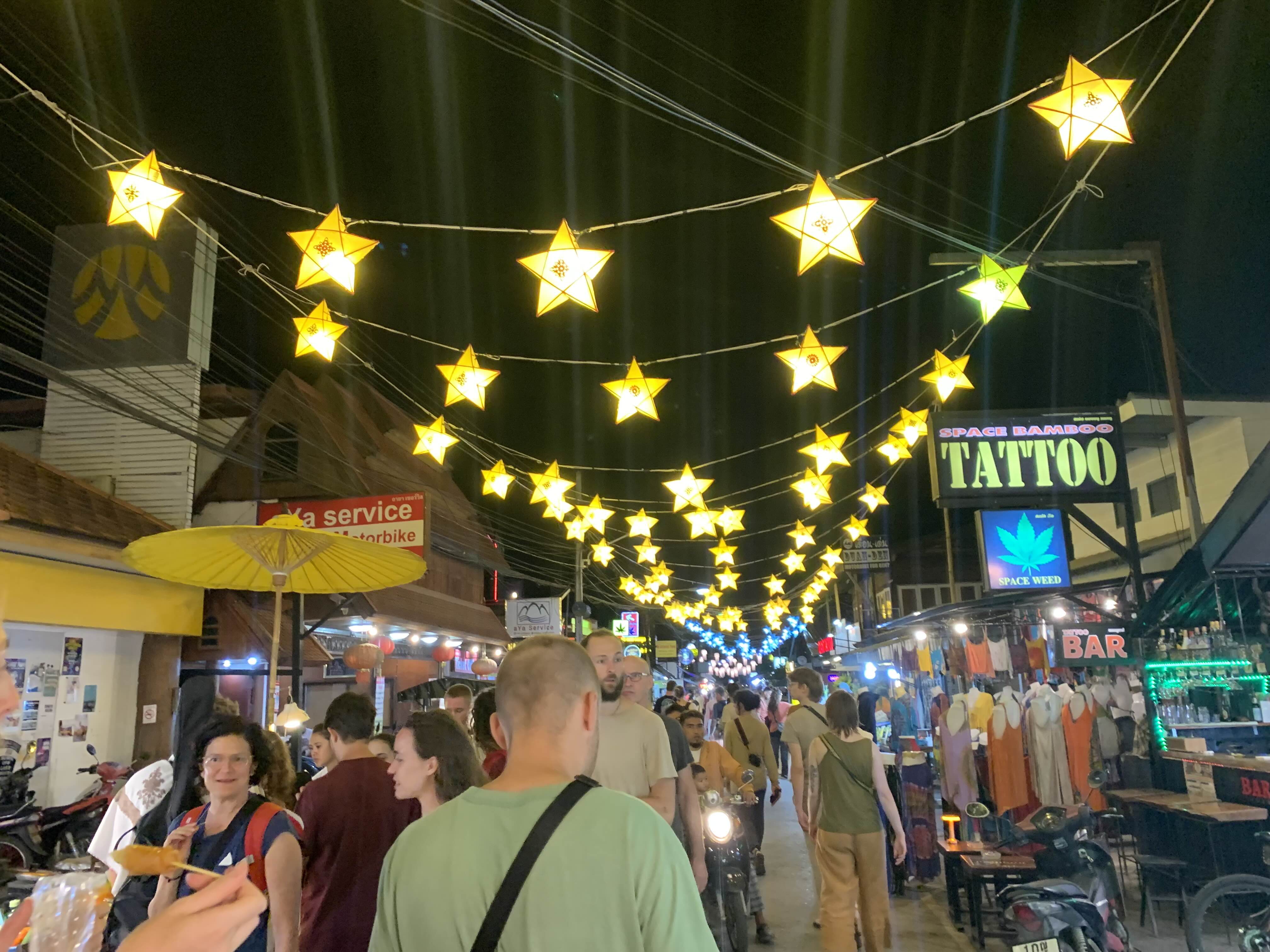 빠이는 길이 단순하다. 1키로 남짓 워킹스트리트를 중심으로 양옆으로 야시장이 열리고 샛길로 식당, 마사지샵, 술집이 인접하다. 빠이에서 짧게 머문다면 워킹스트리트 근처에 숙소를 잡으면 좋다.