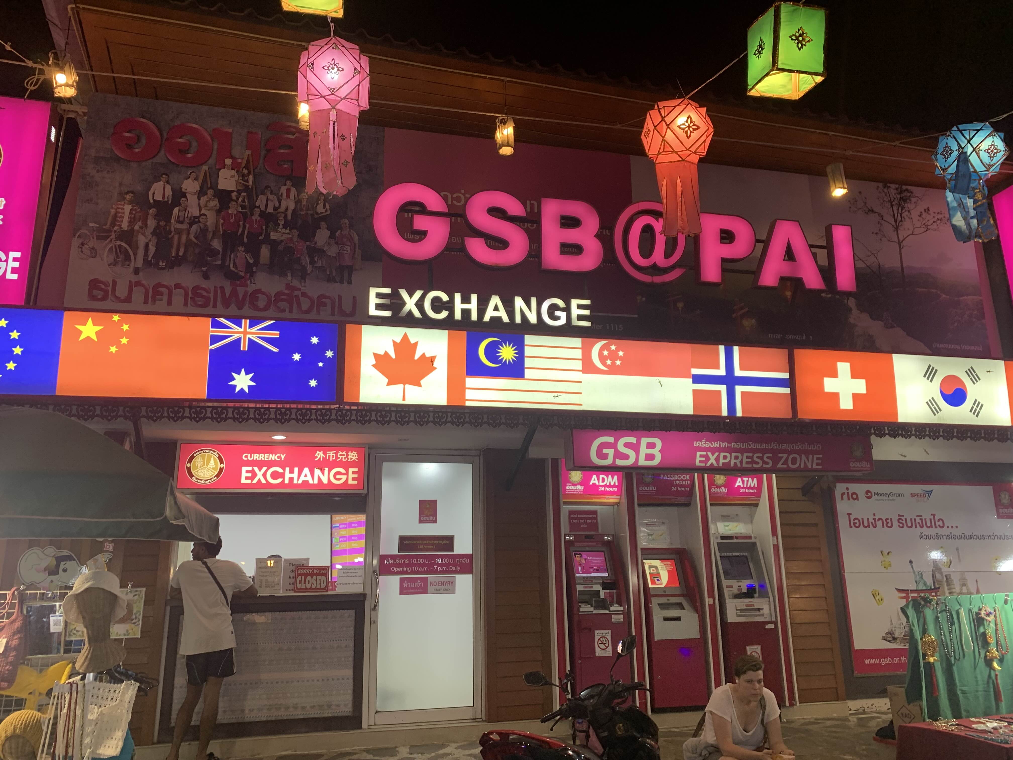 빠이 버스 터미널에서 제일 인접한 환전소이다. atm기도 있고 직접 환전을 해주는 직원도 있다. 내가 갔을 때 직원은 마감이라고 했으니 저녁 7시쯤 퇴근하는 것 같다.