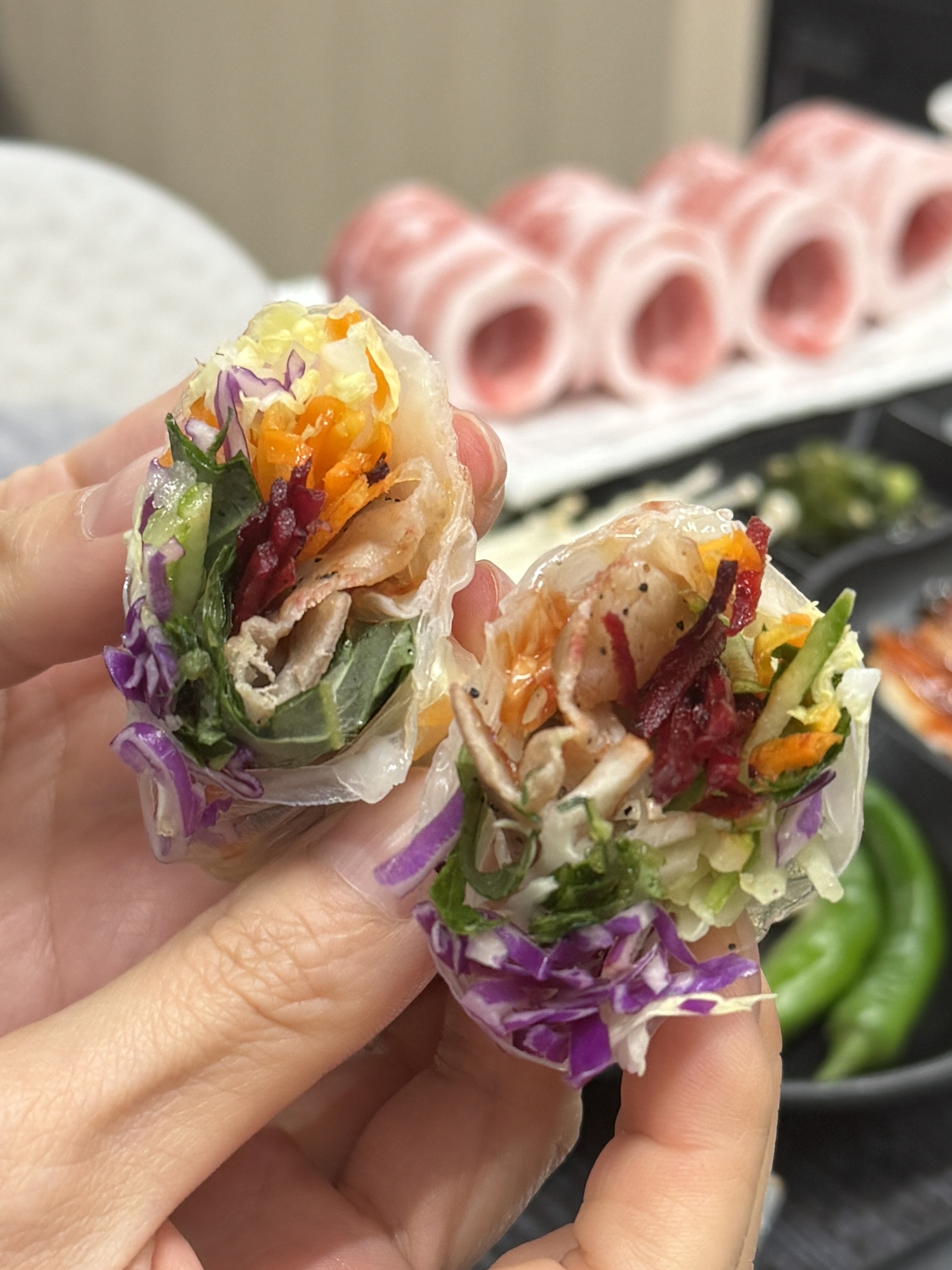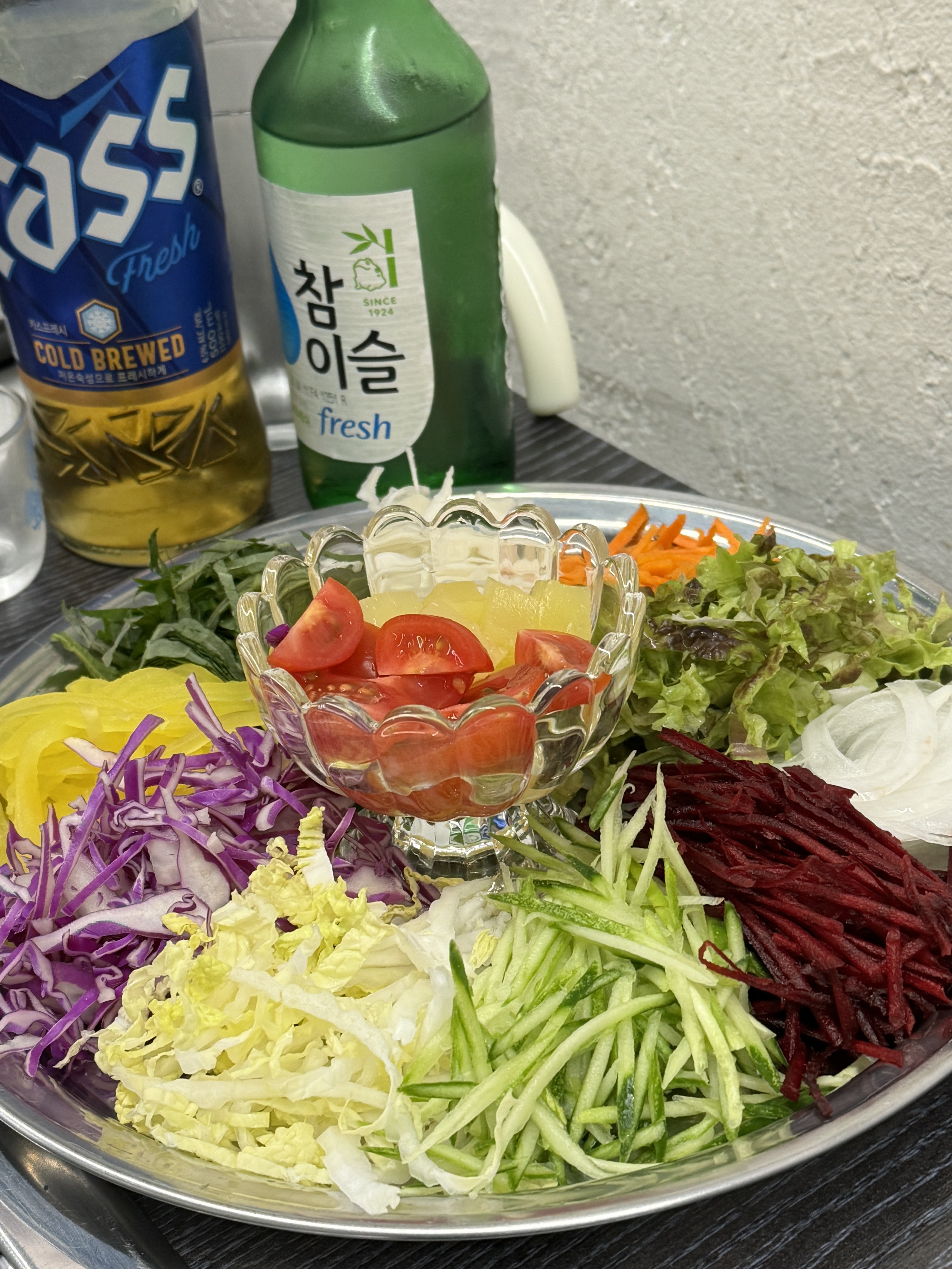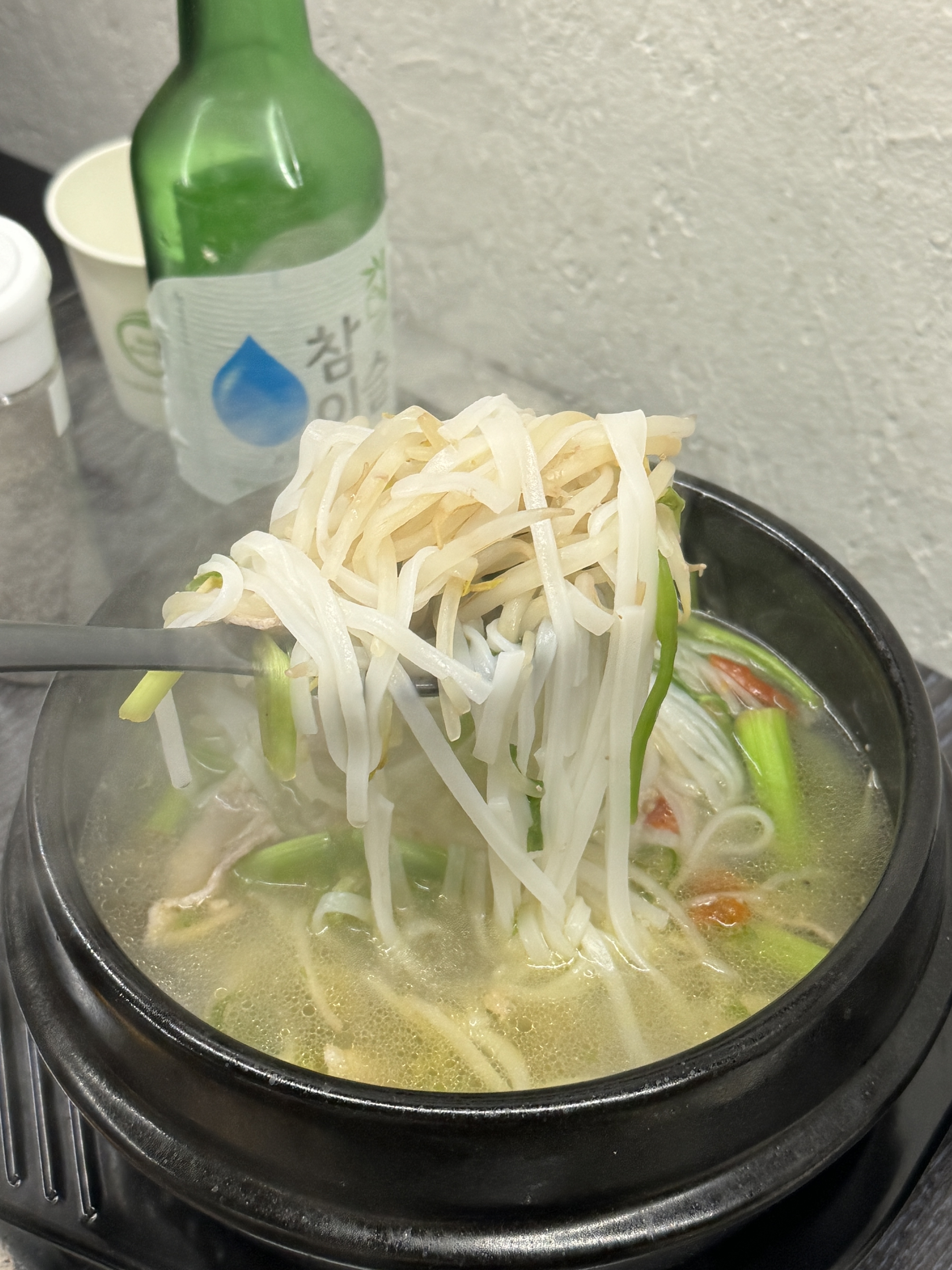 삼겹살에 월남쌈을 싸먹는 나름 클린치팅이라고 하고 싶었으나 쌀국수에 김치라면짜글이에 소맥까지 완벽한 한상. 다시 다이어트는 내일부터다.