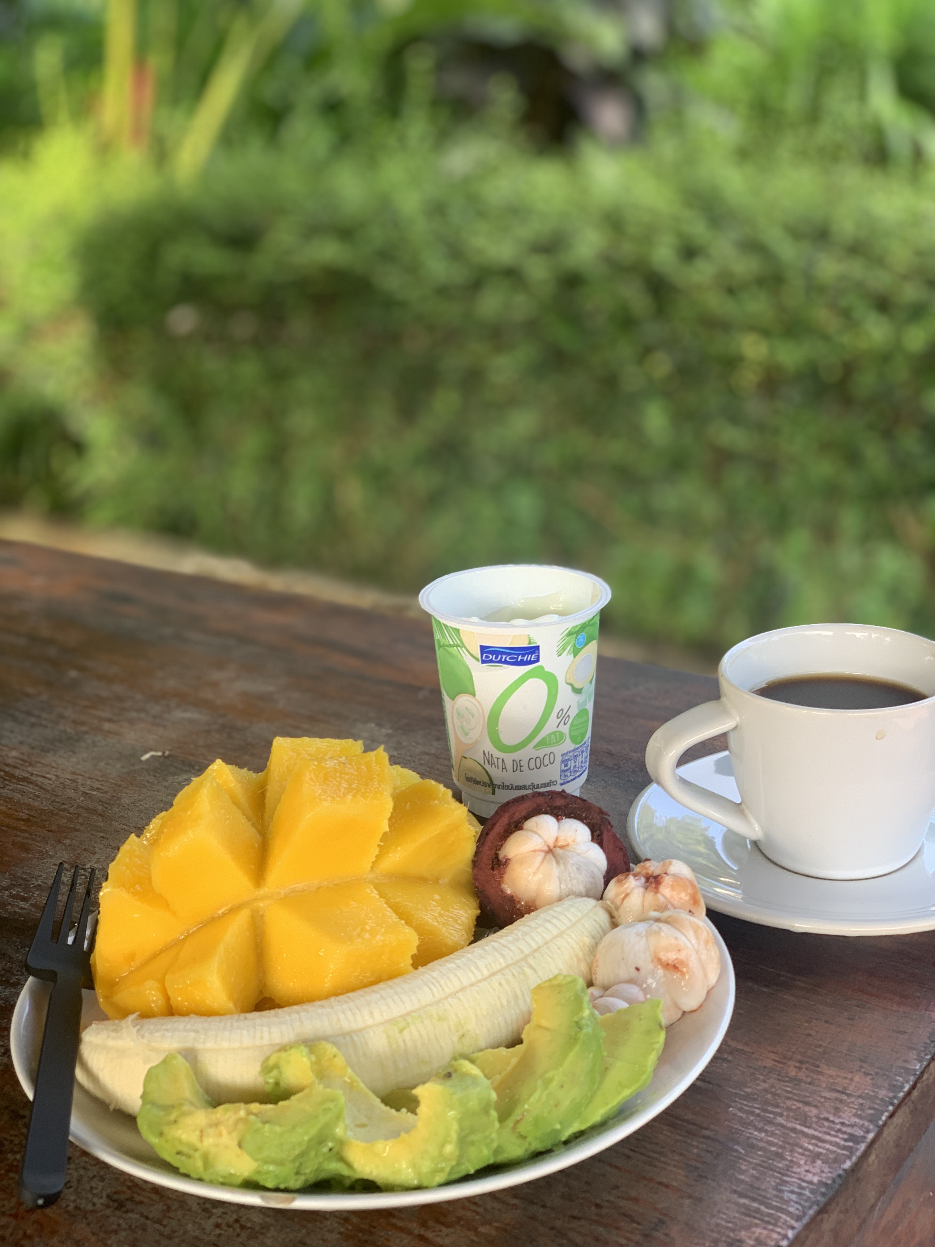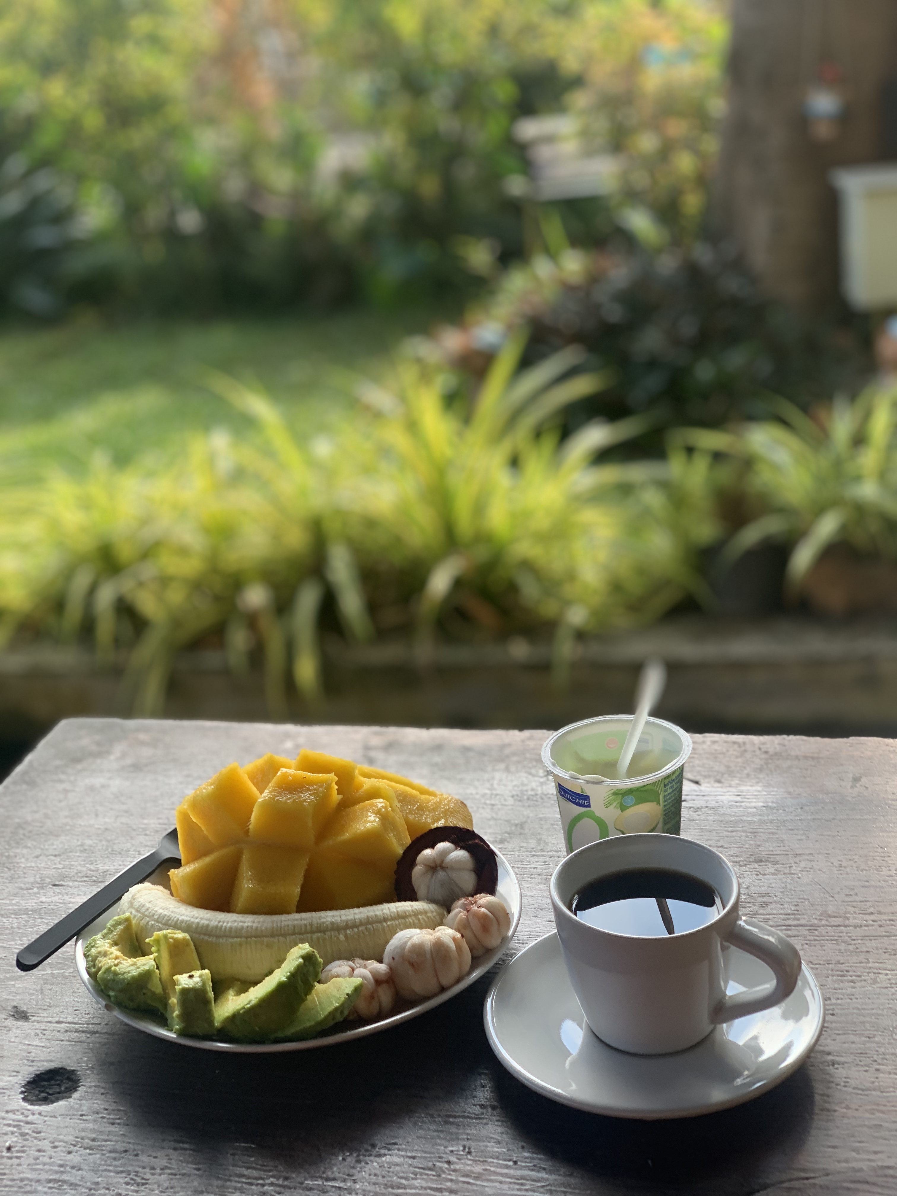 여기서 저녁에 맥주도 마시고 아침에 커피랑 과일도 먹었다.