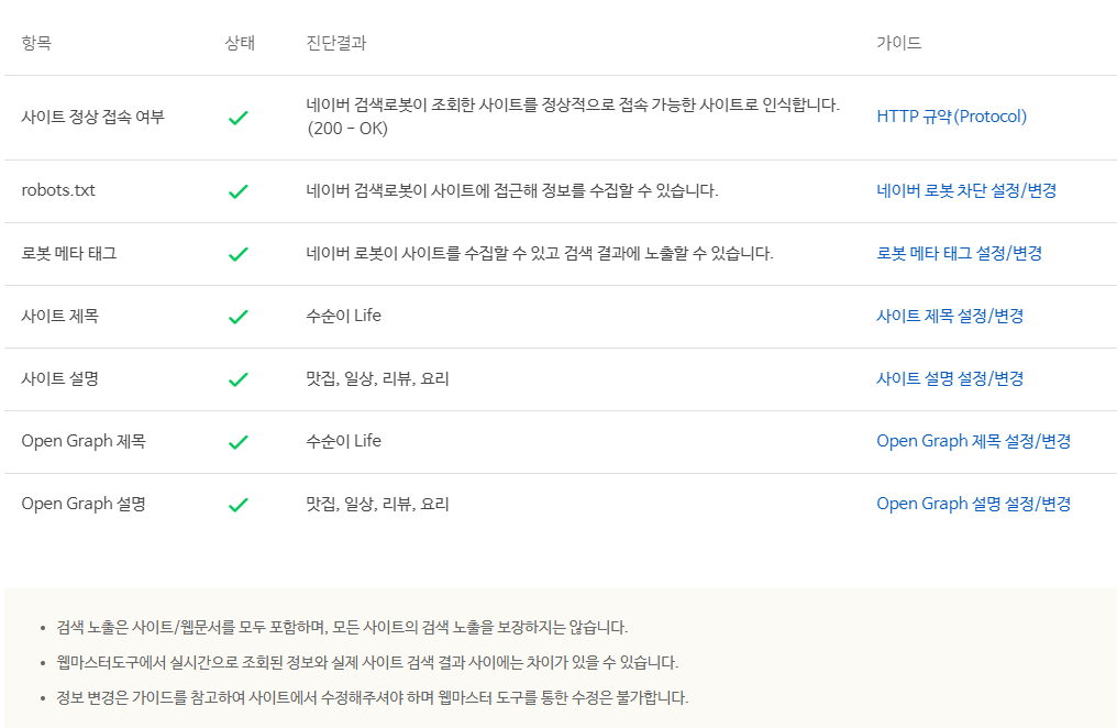 이미 최적화는 되어있는 블로그라면 네이버서치어드바이저의 네이버웹마스터도구를 다시 셋팅 할 필요는 없을 듯 하다.