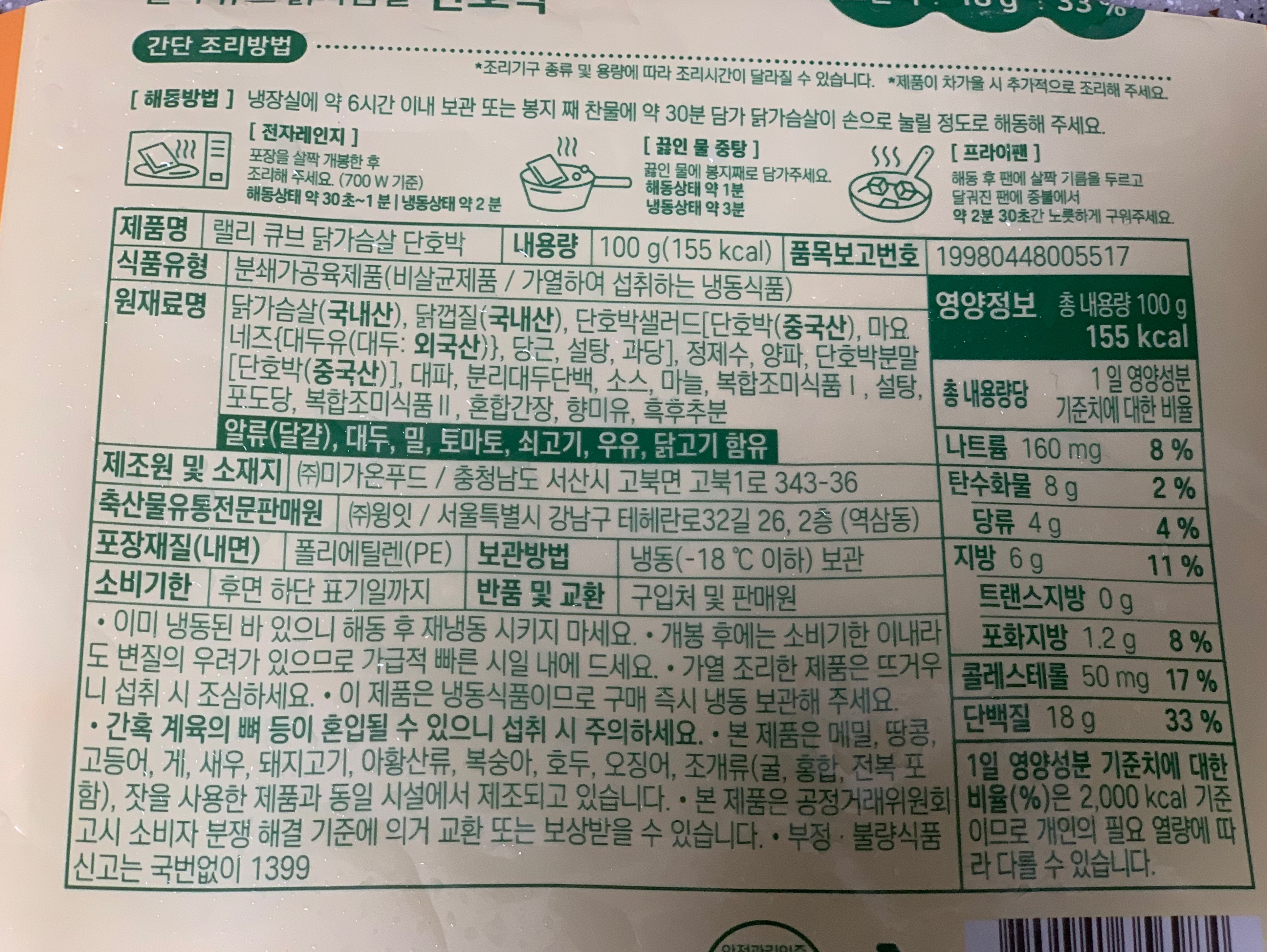 오늘 먹은 건 윗잉 랠리큐브 닭가슴살 단호박맛.