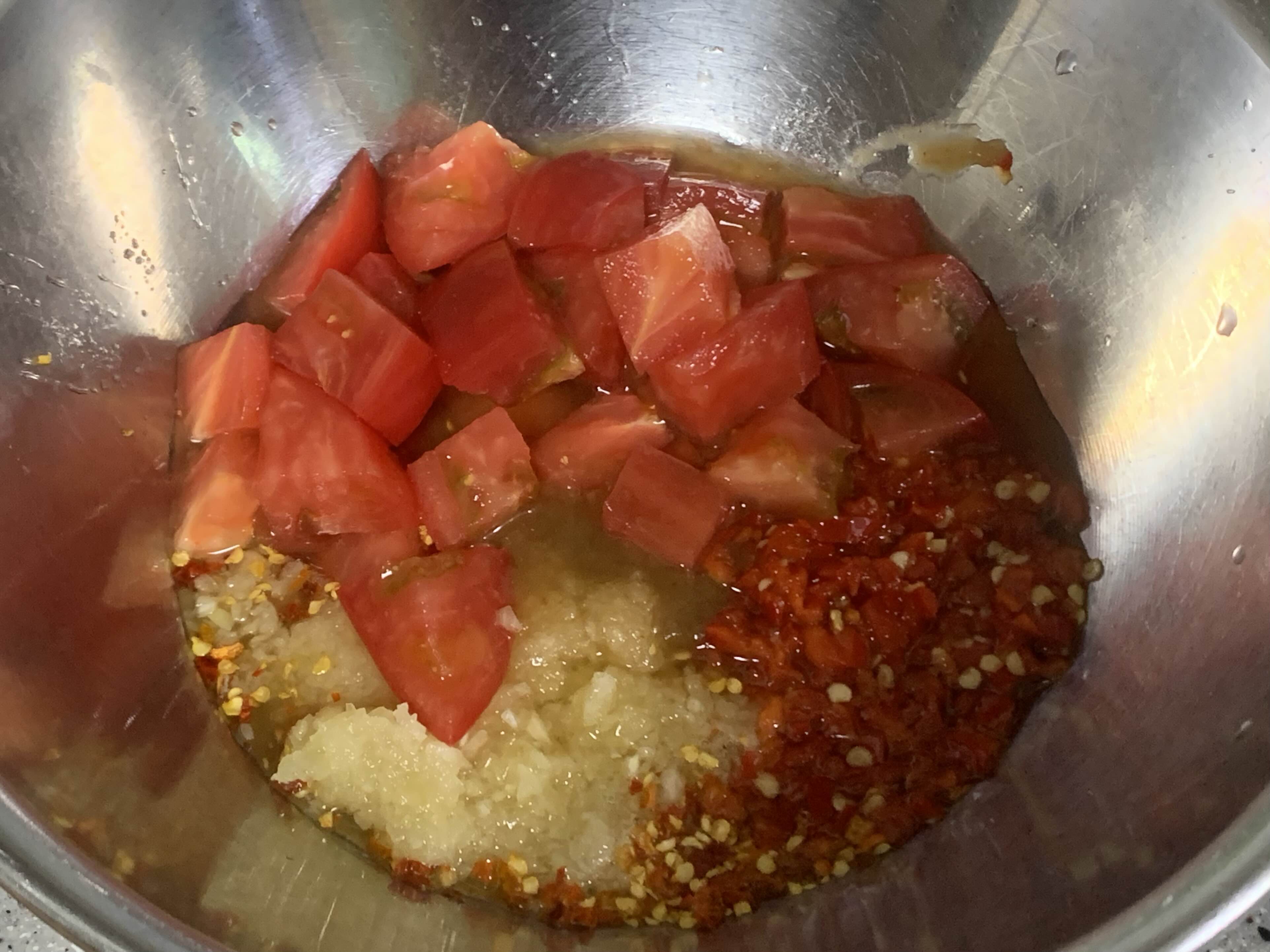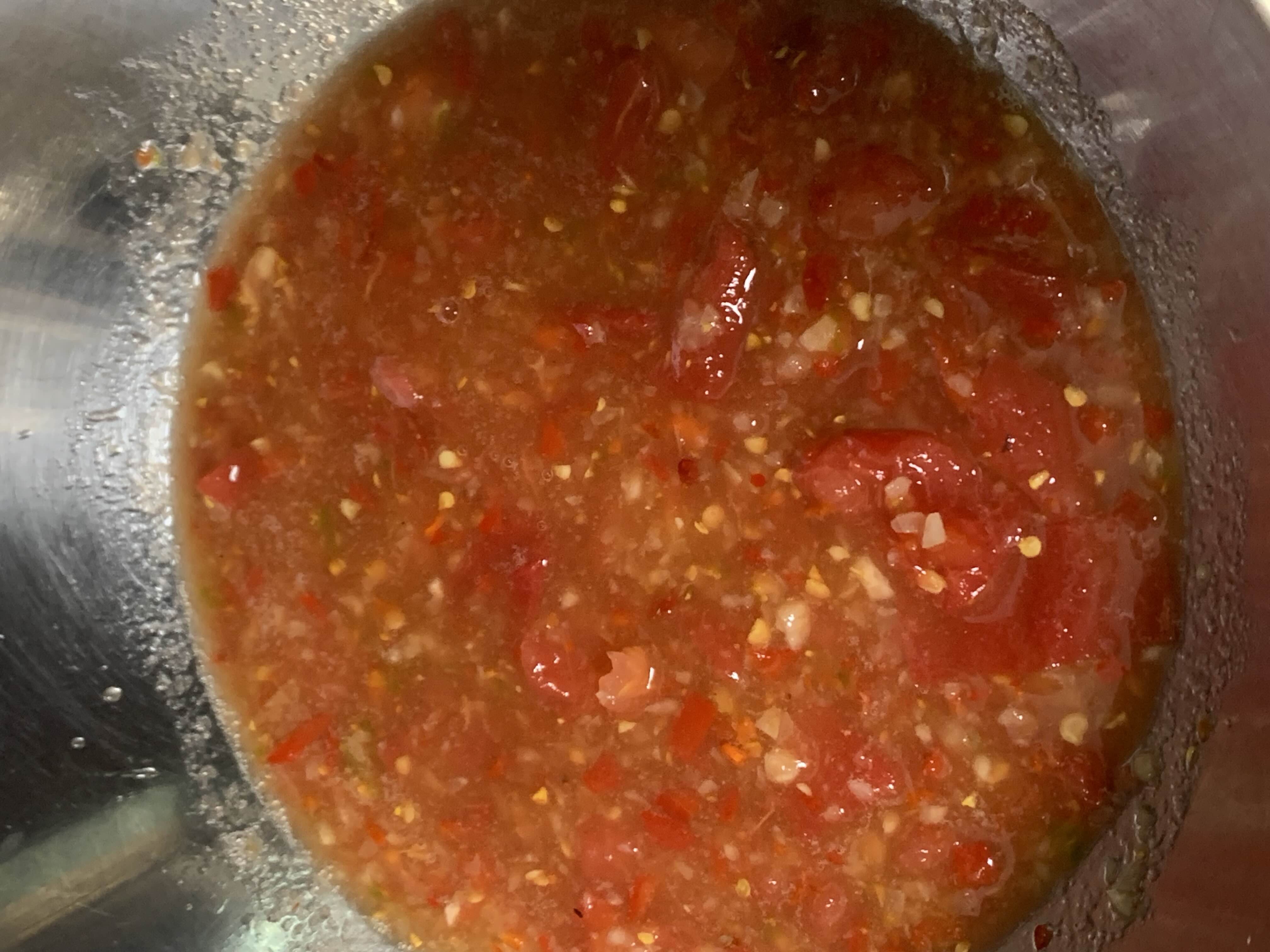 토마토까지 손으로 짓이겨서 잘 소스를 잘 섞어줍니다.