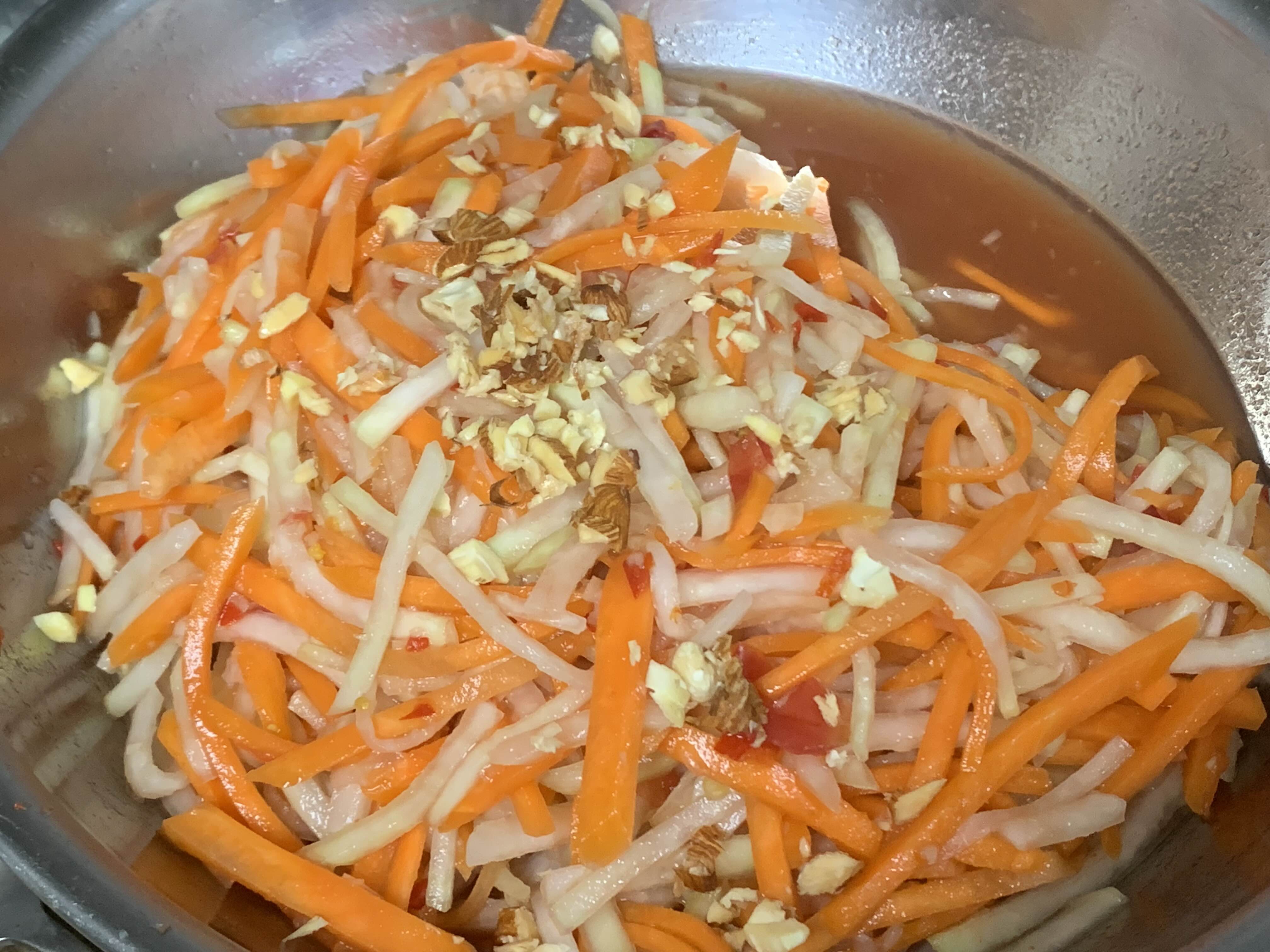 그린파파야는 한국에서 가격도 비싸고 구하기 어려워서 식감이 비슷한 콜라비나 당근으로도 쉽게 만들 수가 있습니다.