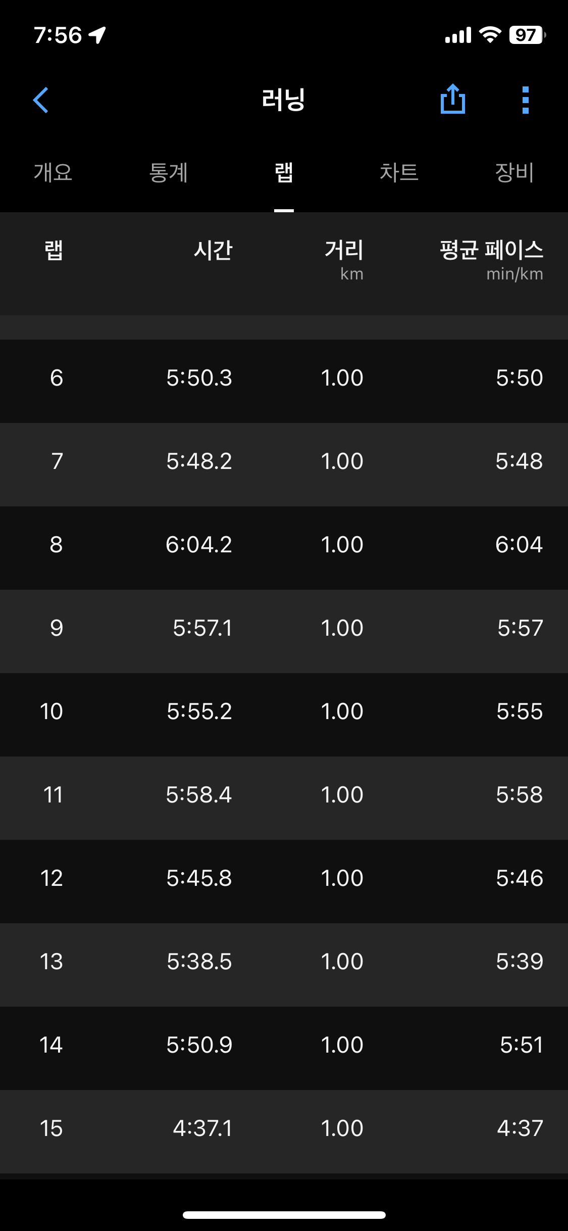 새벽에 15K 뛴것 치고 페이스도 나쁘지 않았고 마지막 1K는 조금 높여서 437로 마무리
