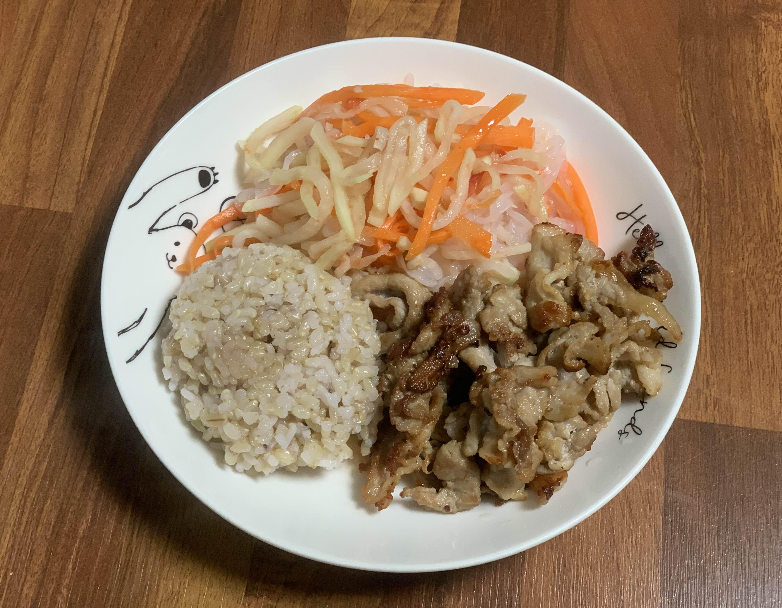 돼지뒷다리살 150g, 현미밥100g, 쏨땀