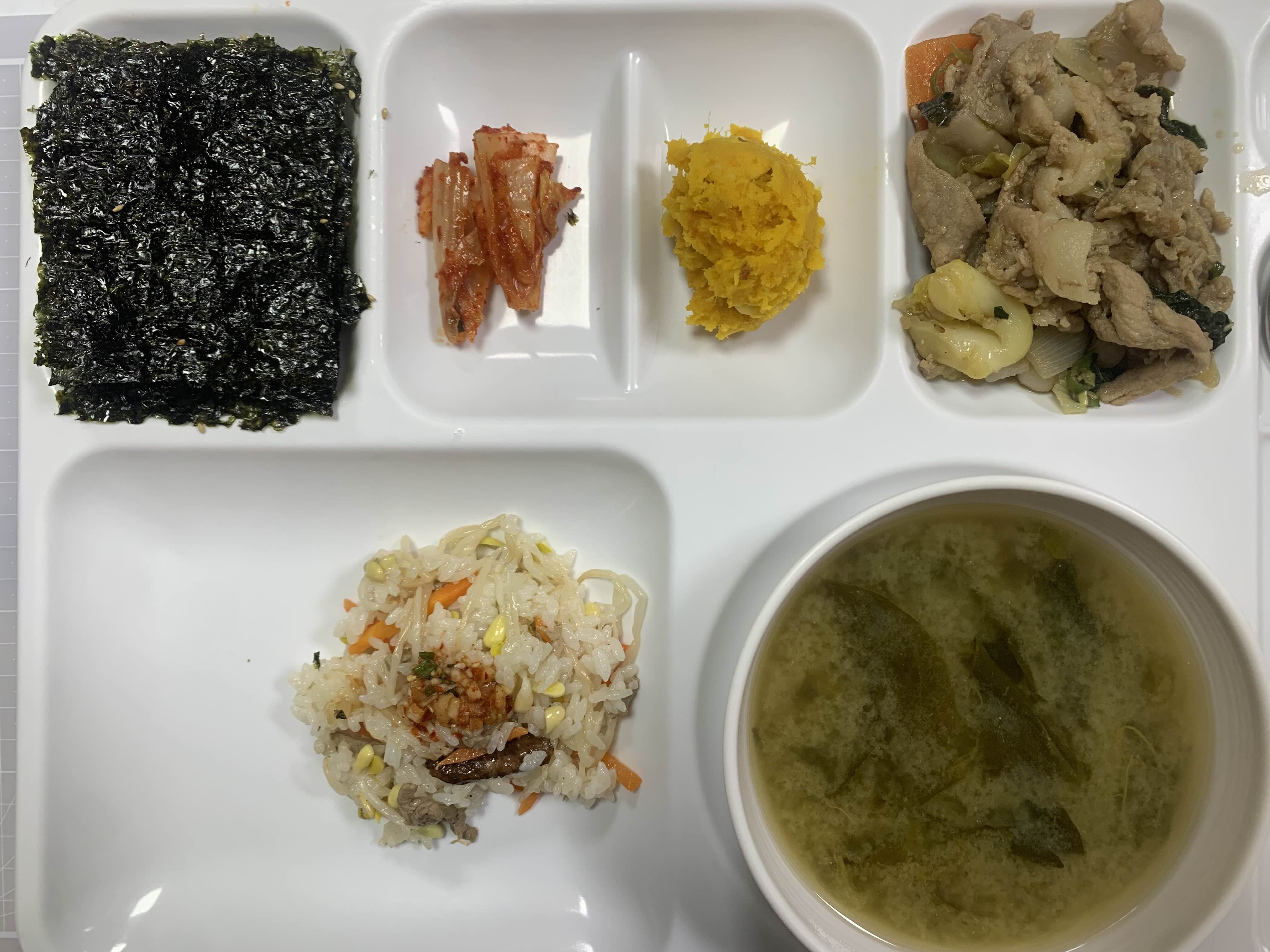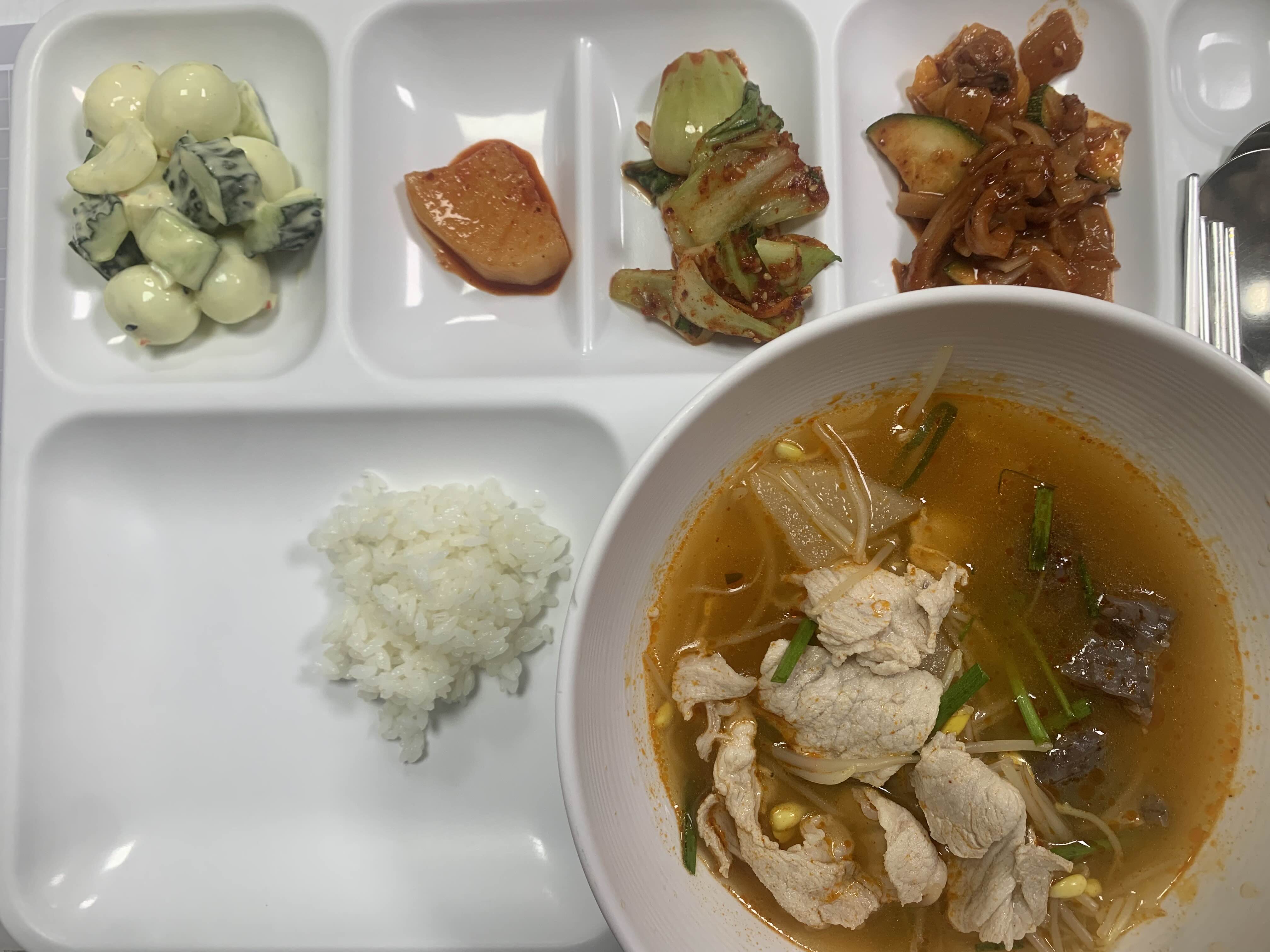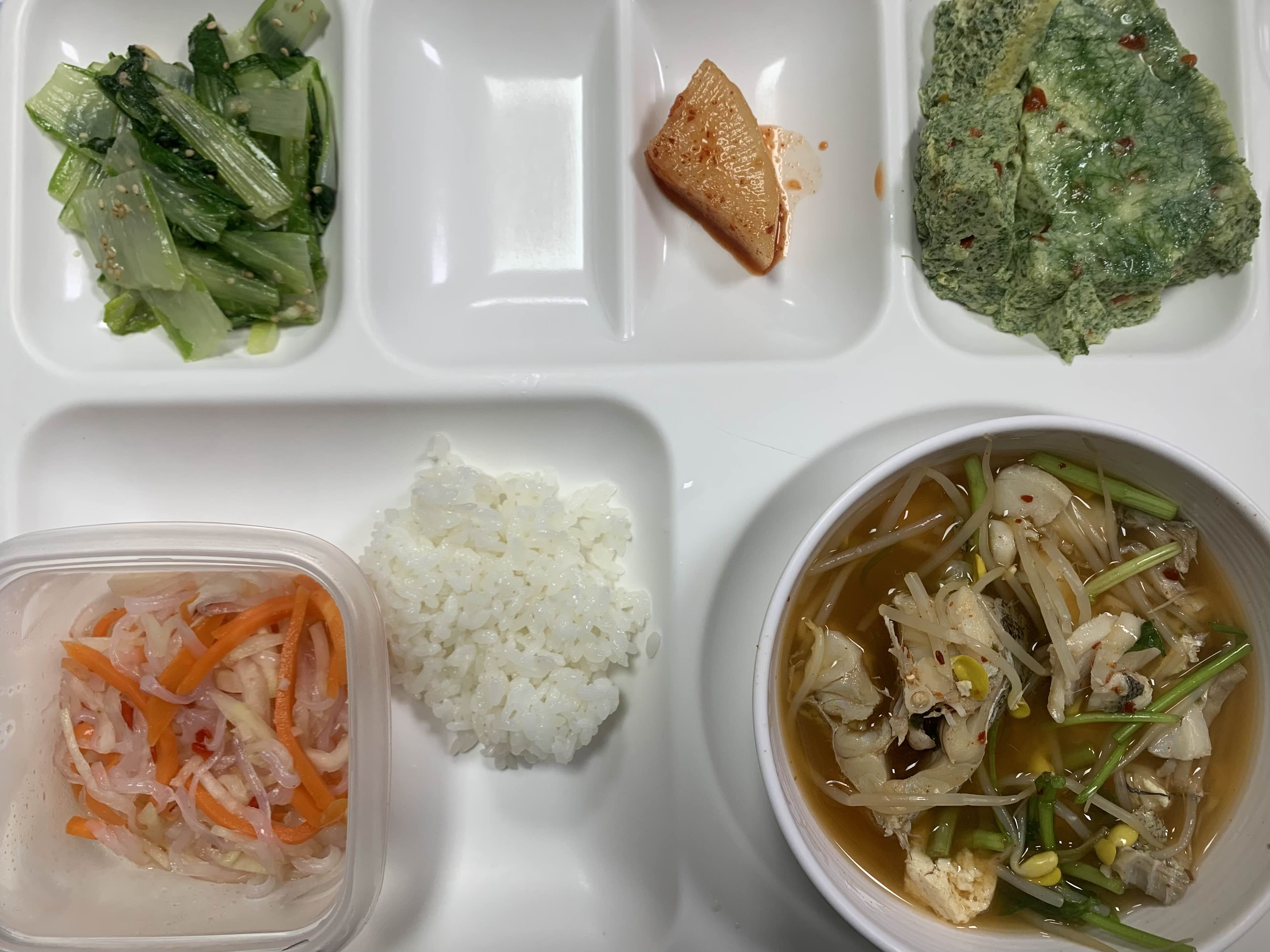 계란찜이랑 국에 있는 생선 많이 먹었다.