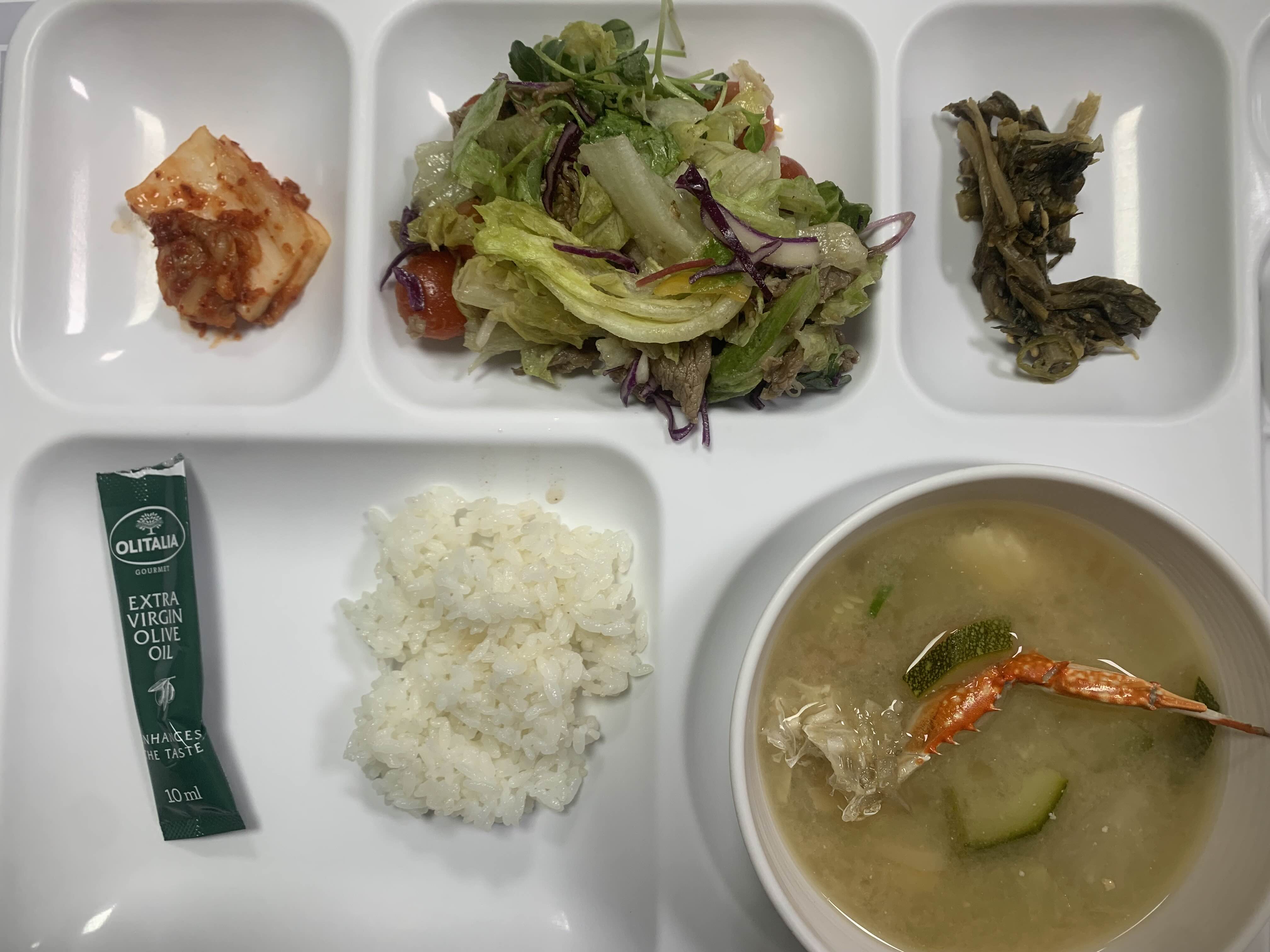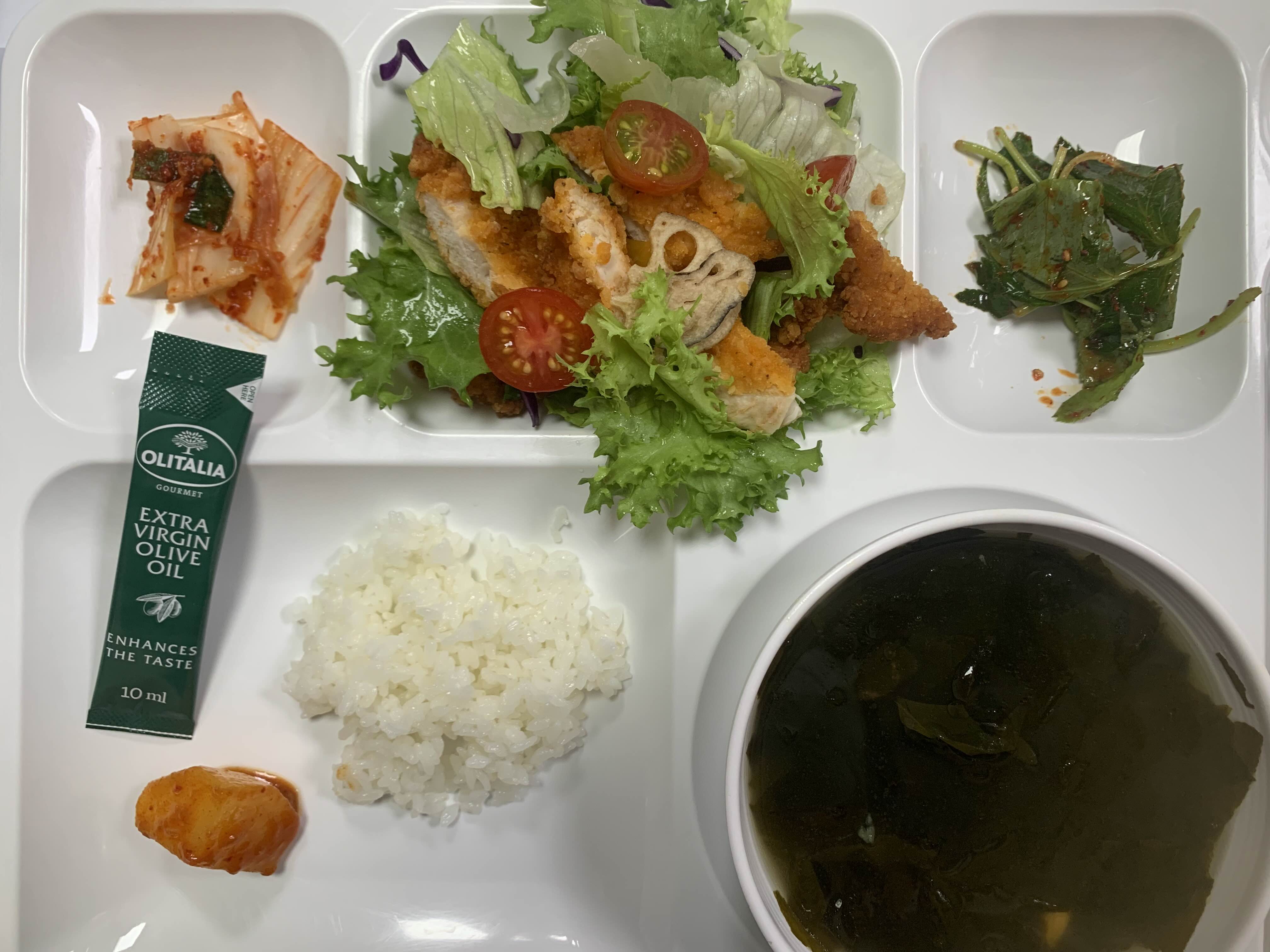 치킨텐더 샐러드 나와서 미역국이랑 많이 먹었다.