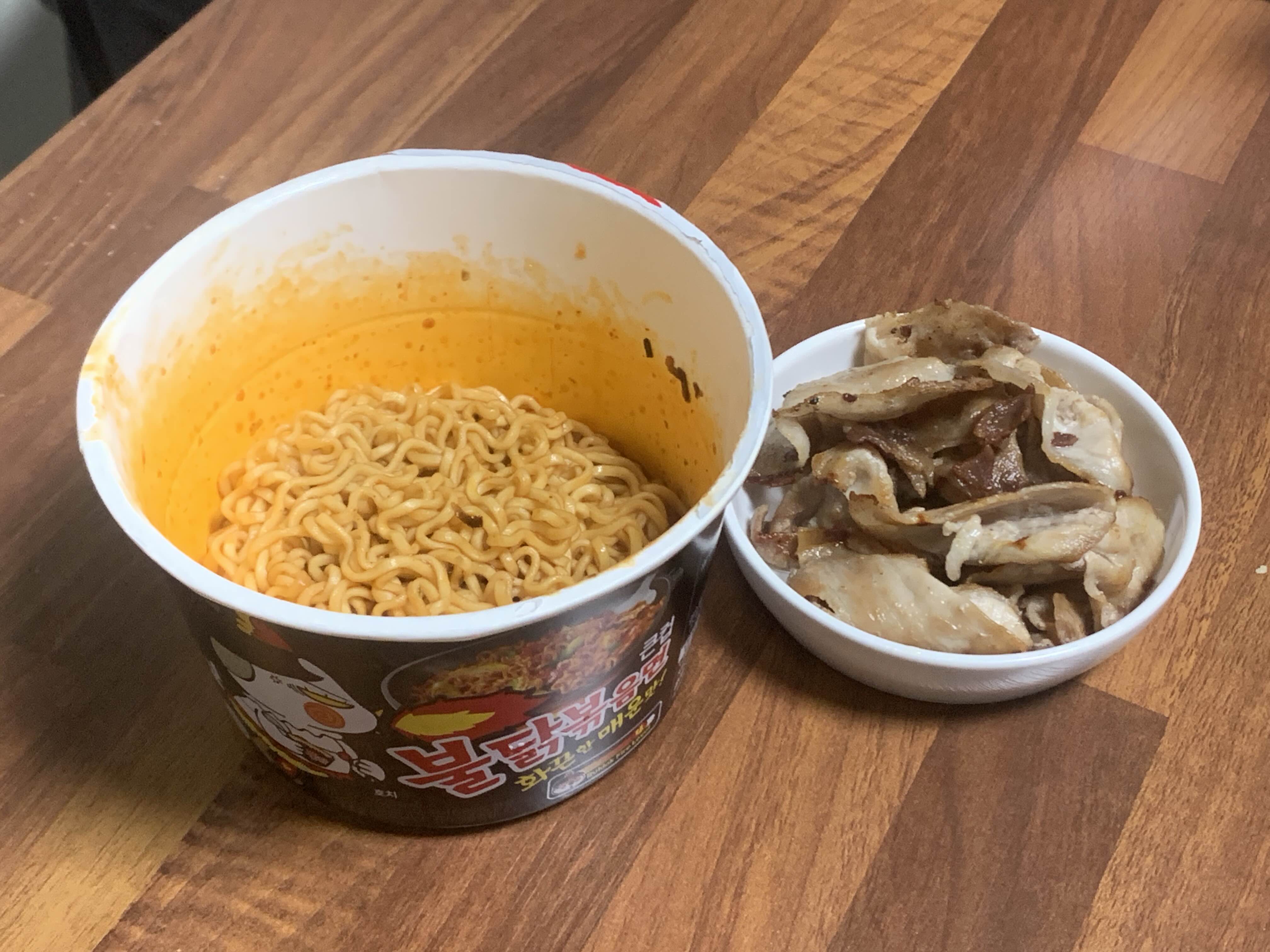 지방 없는 돼지뒷다리살 다이어트 식단으로 먹으려 한건데 .. 결국 벌크업식단으로 붉닭볶음면이랑 먹었다.