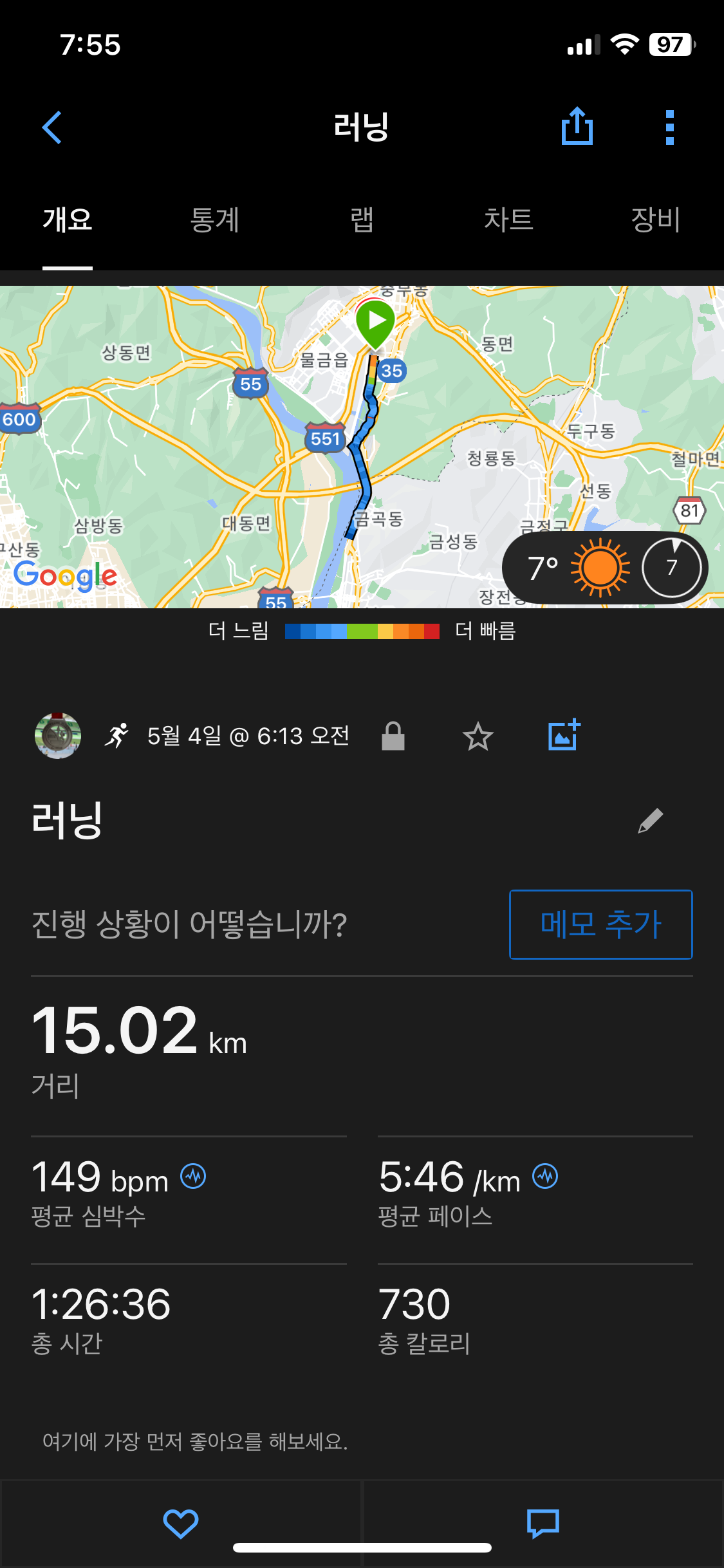 조으다 조아. 그런데 뛰면서도 저녁에 뭐먹을까 생각함.