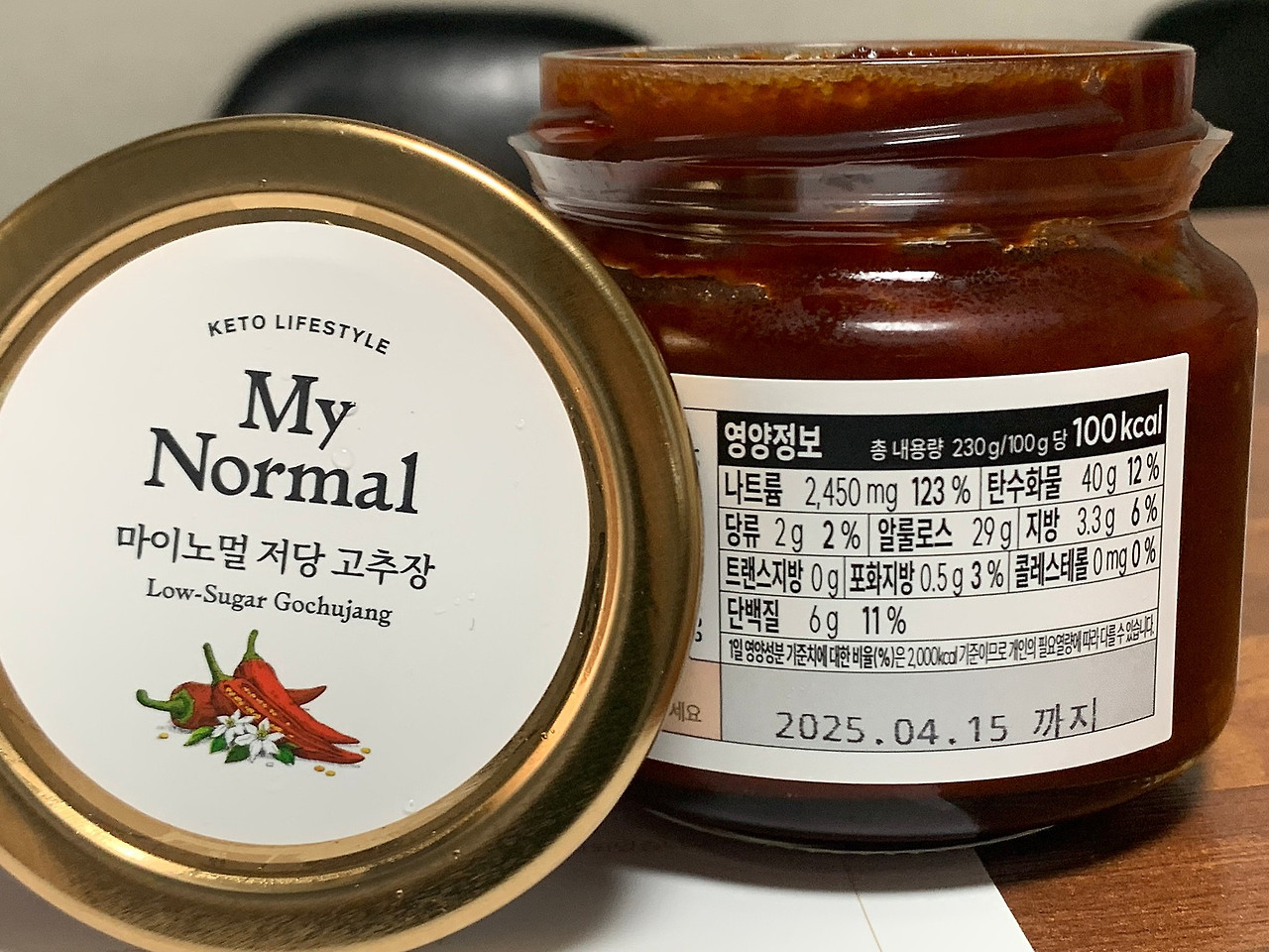 마이노멀 저당고추장은 100g당 탄수 40g에 당류 2g입니다.