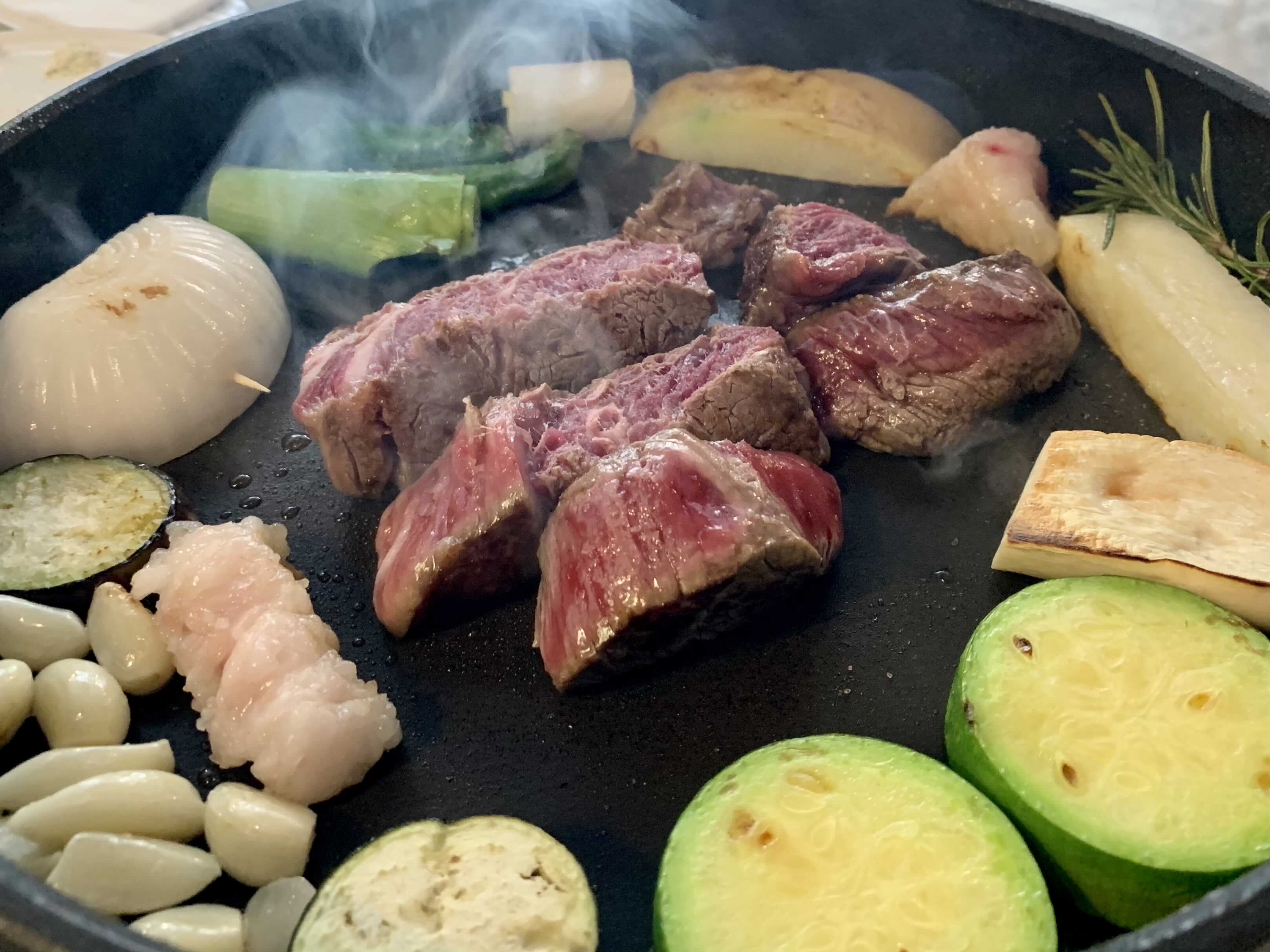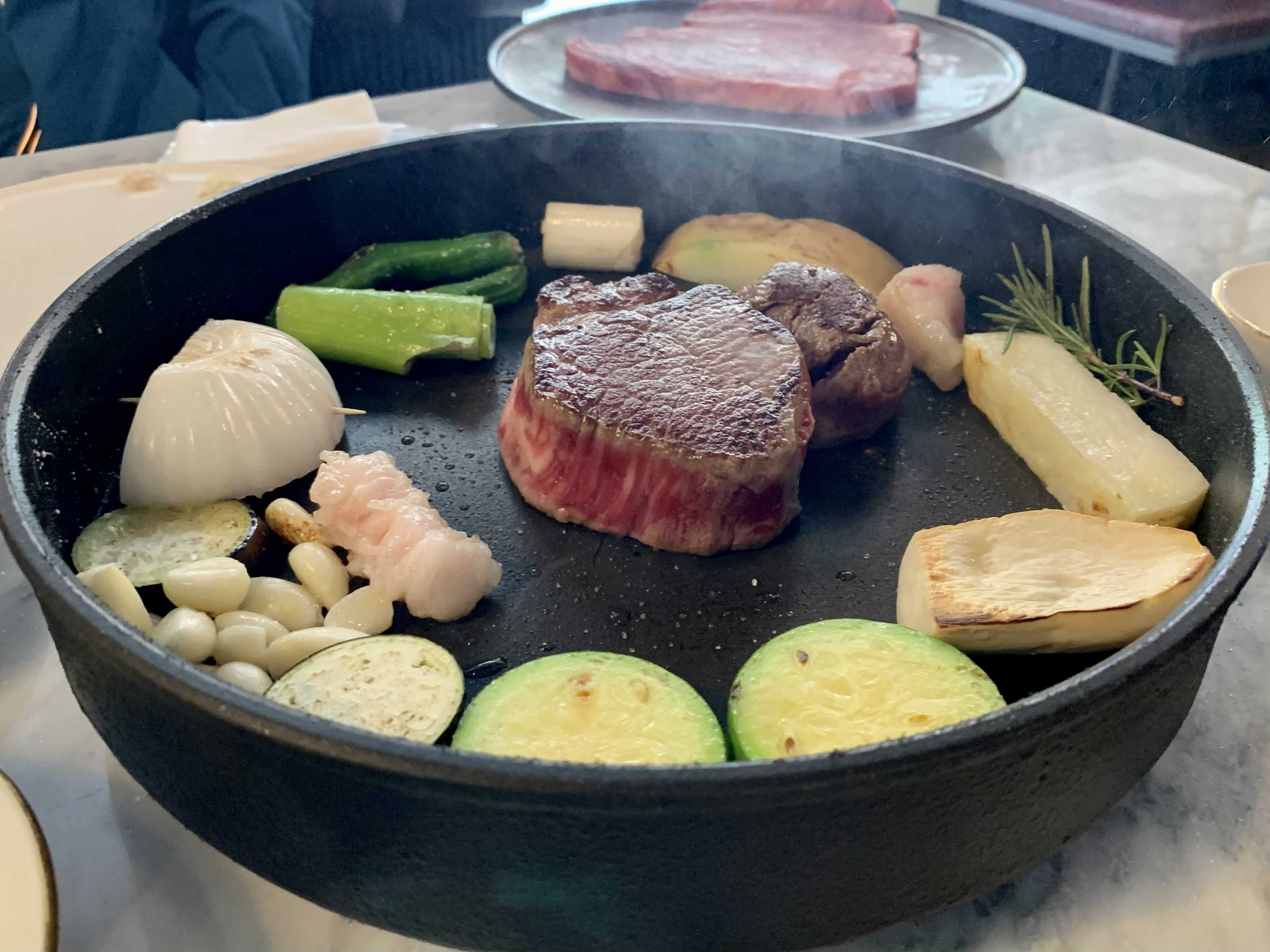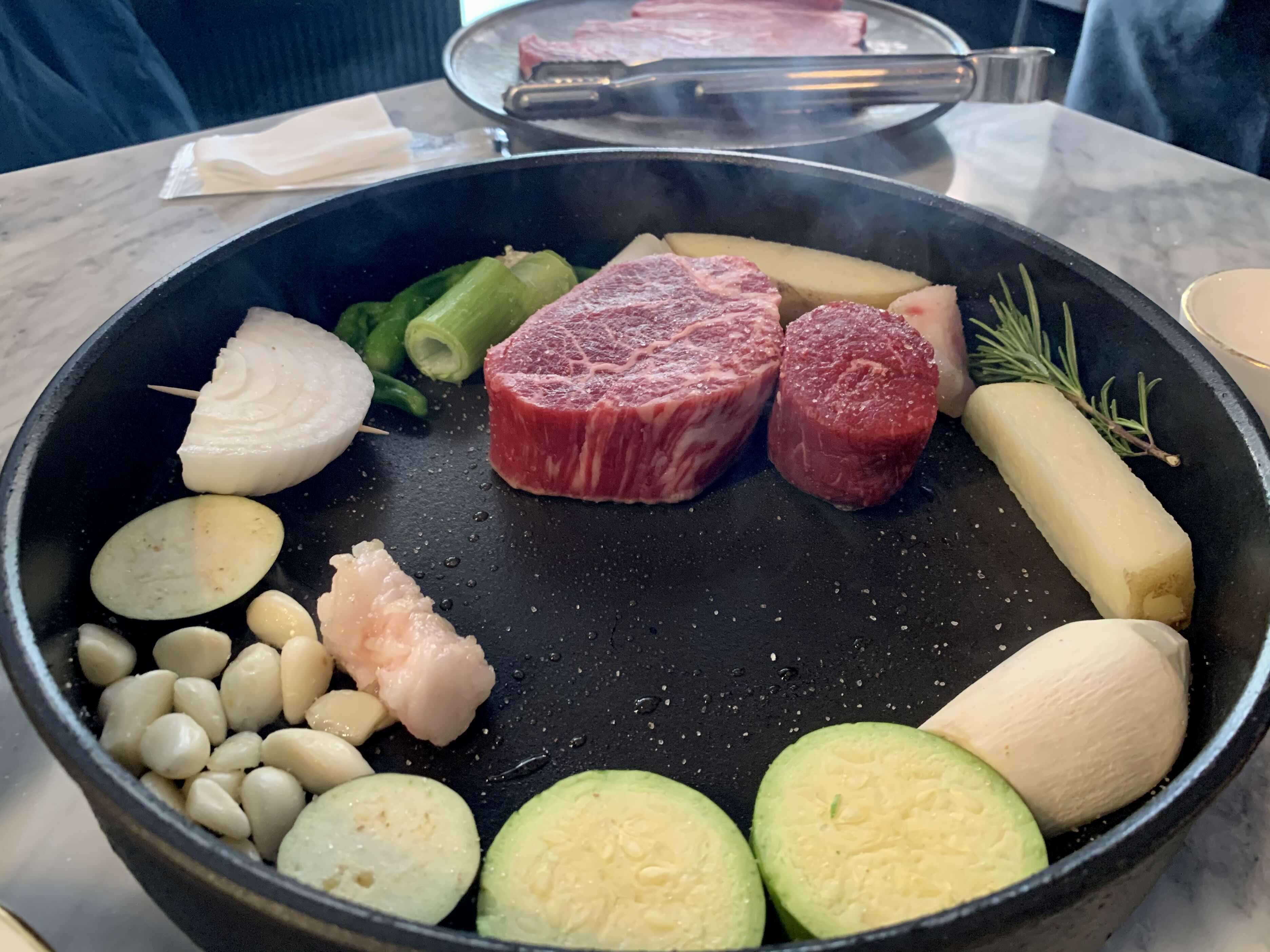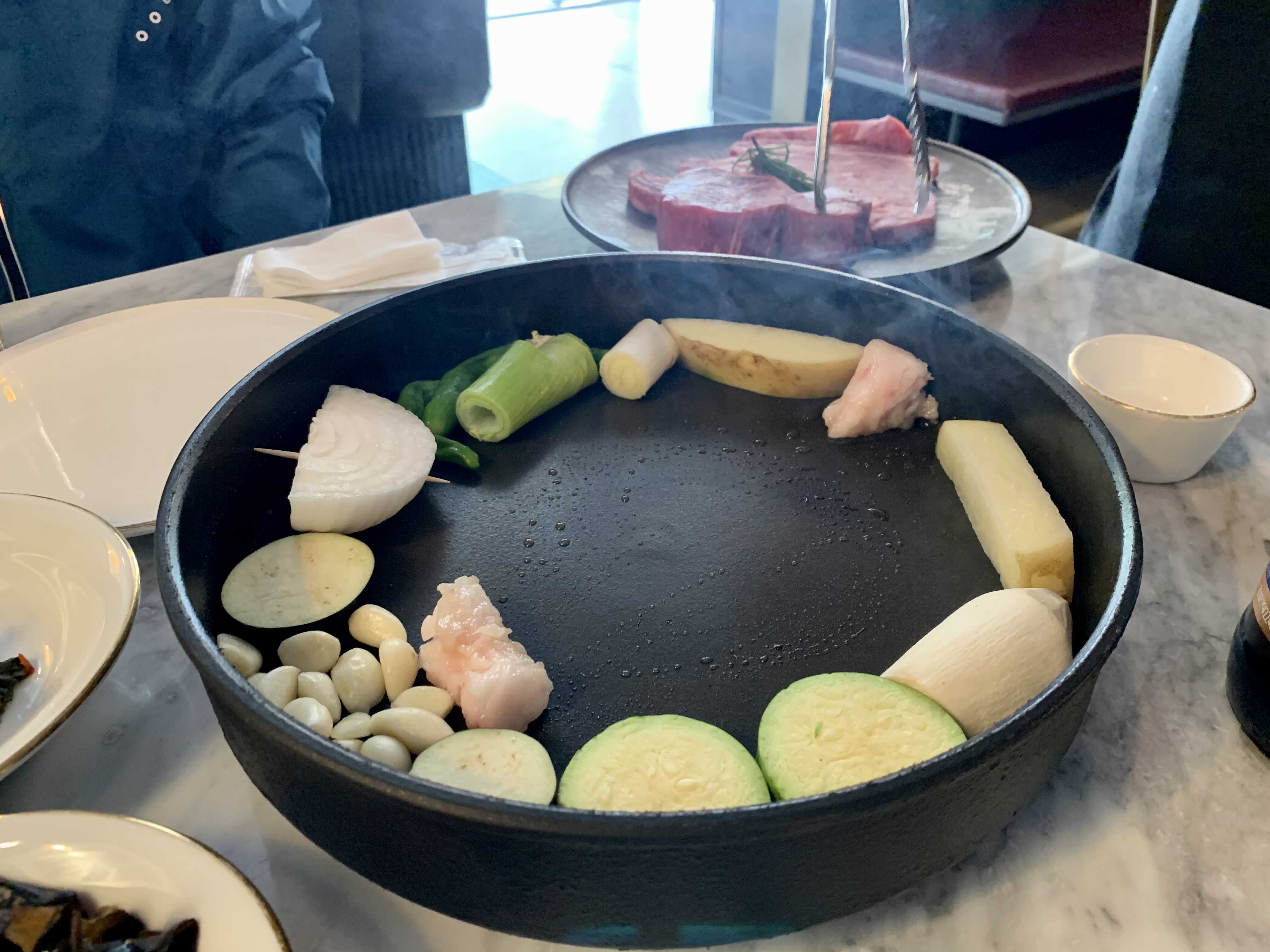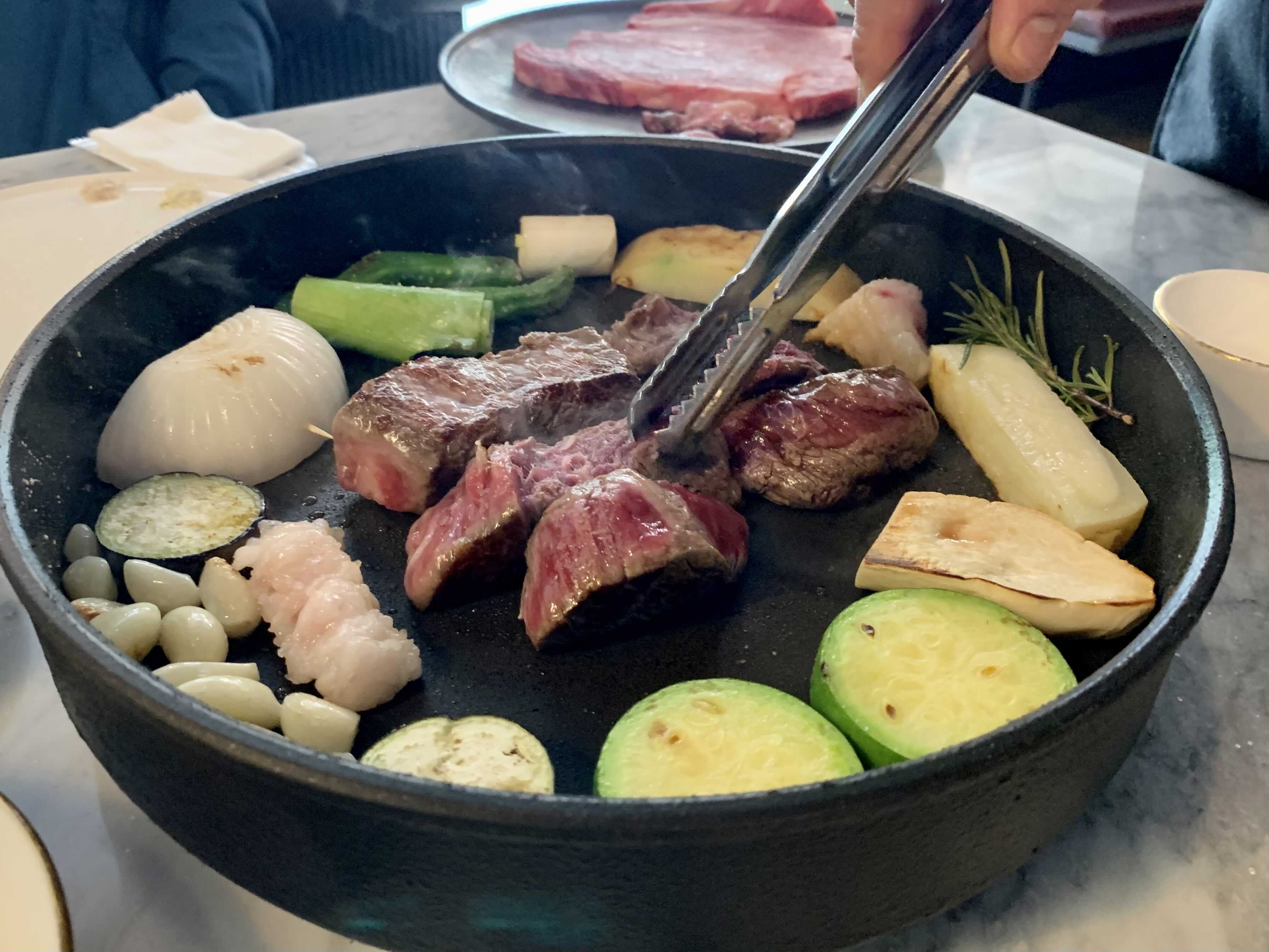특히나 좋았던 점은 테이블마다 하나씩 올려진 인덕션 팬에 고기를 직접 구워서 서브까지 해 준다는 것입니다.