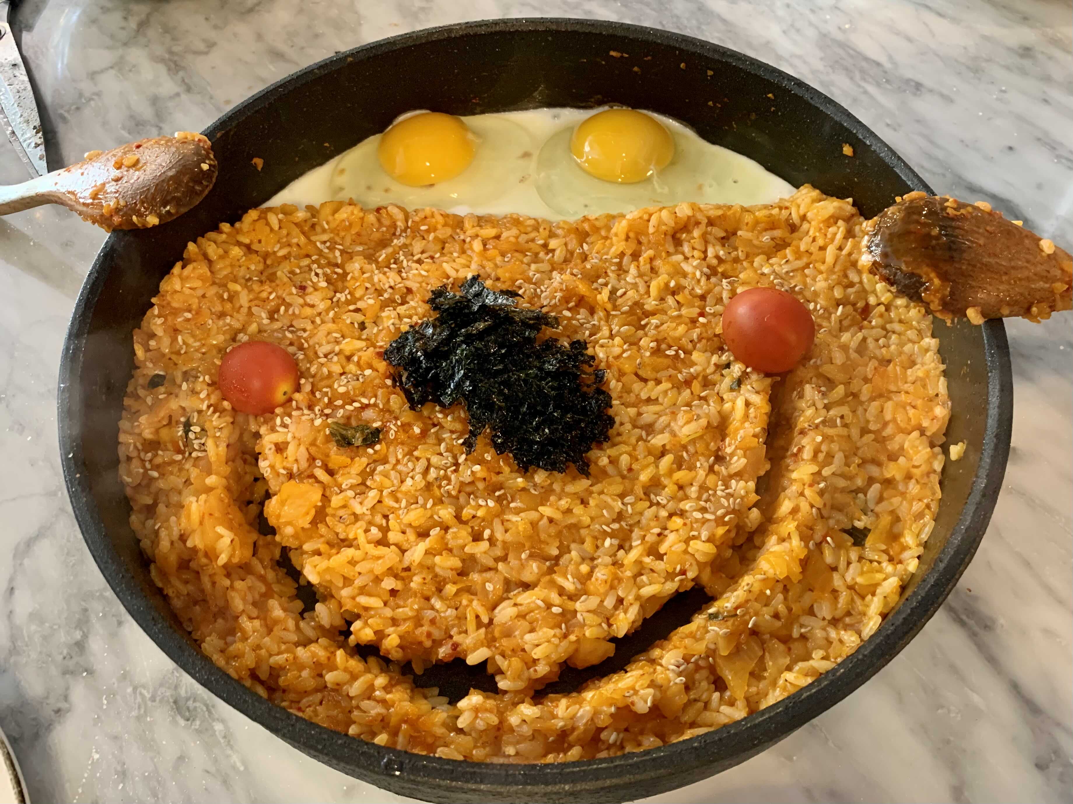 귀여운 깍두기 볶음밥이 완성되었습니다. 처음은 조금 짠 듯했지만 계란에 볶아서 같이 먹으니 짜지 않았어요.