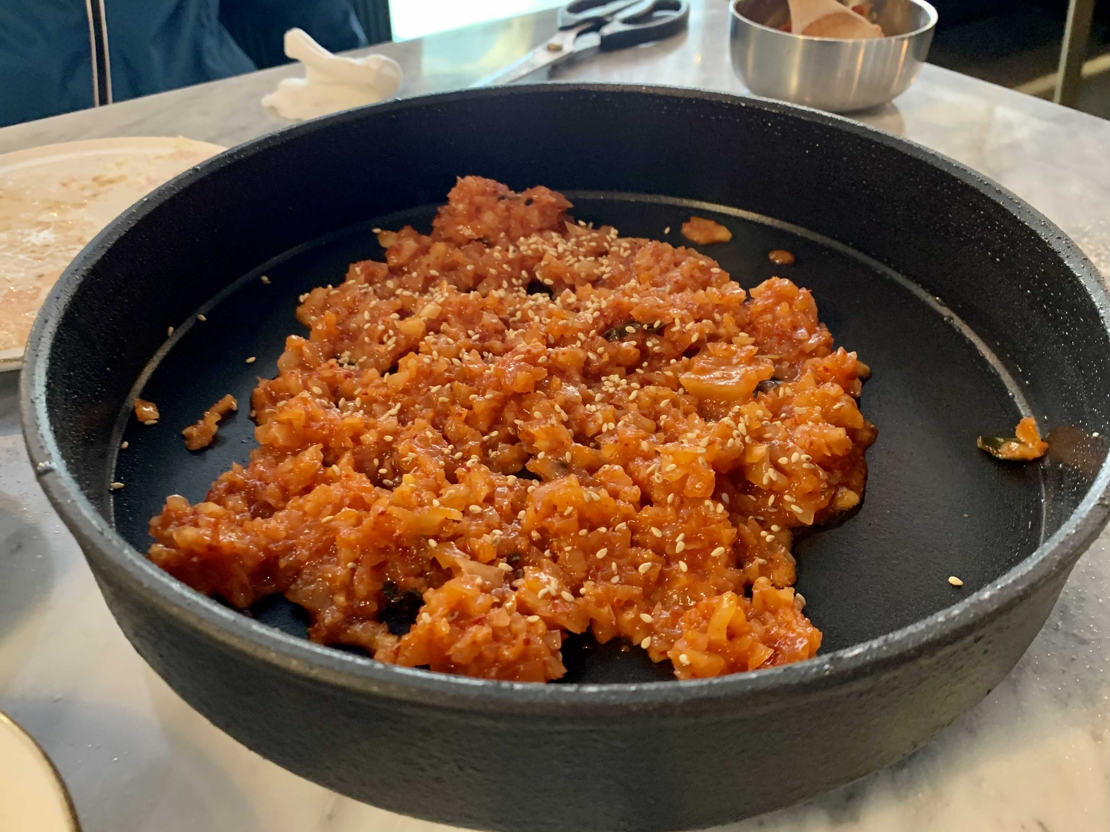 한국 사람은 마무리 밥 먹어야 해요. 깍두기 볶음밥과 된장찌개를 주문했습니다.
