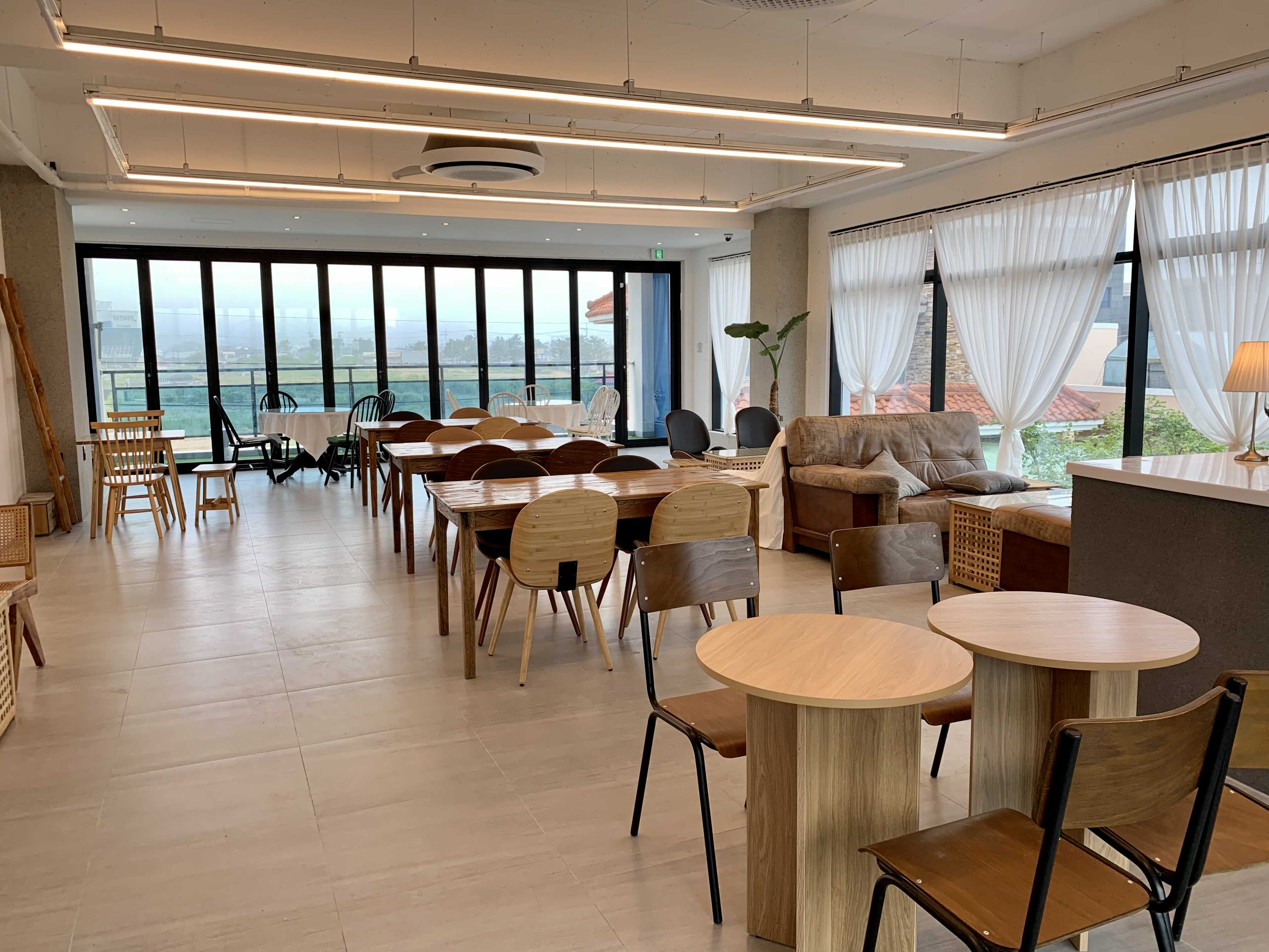 왼쪽 내부 계단을 통해서 바다가 보이는 루프탑에 올라갈 수 있어요.