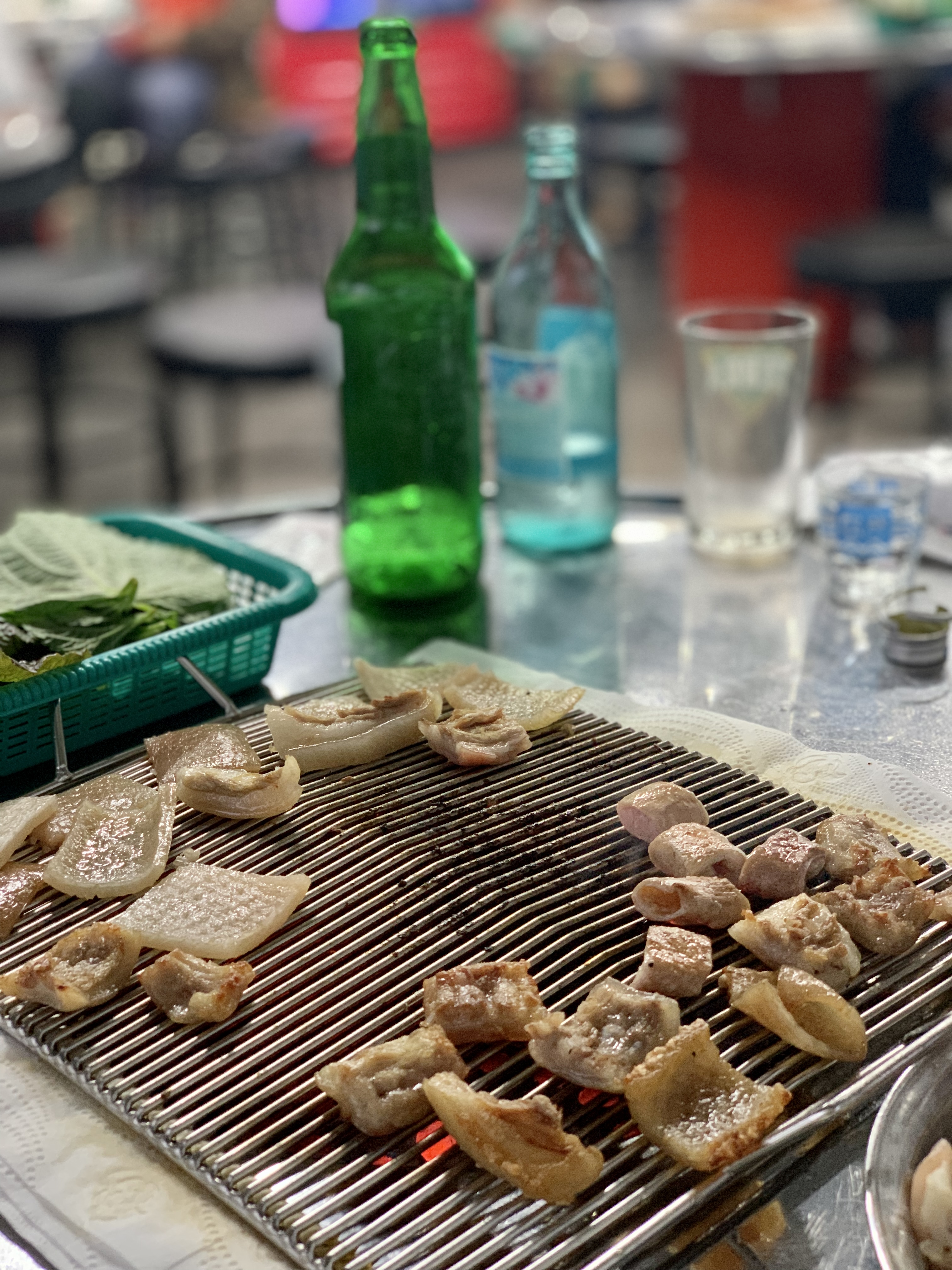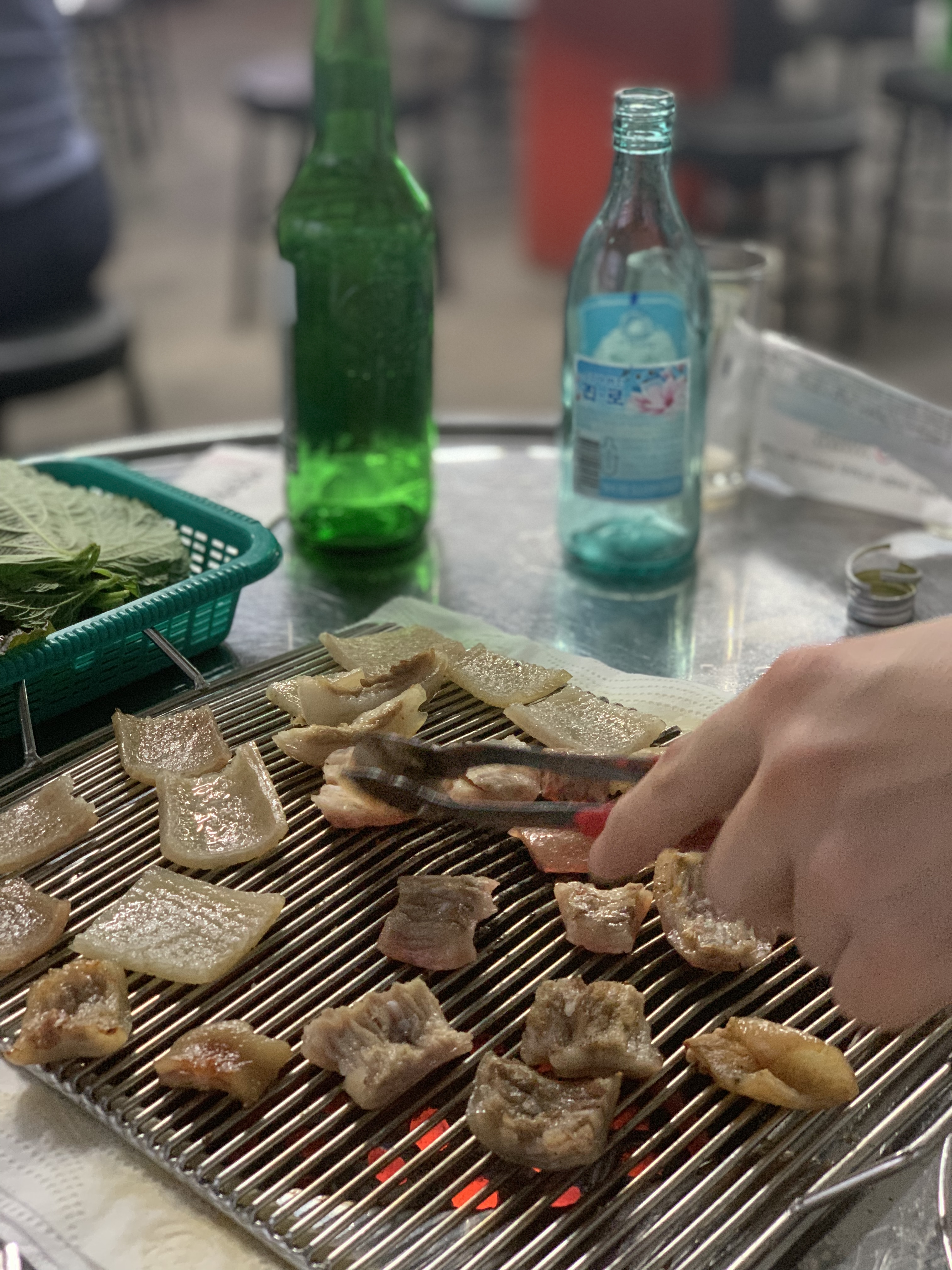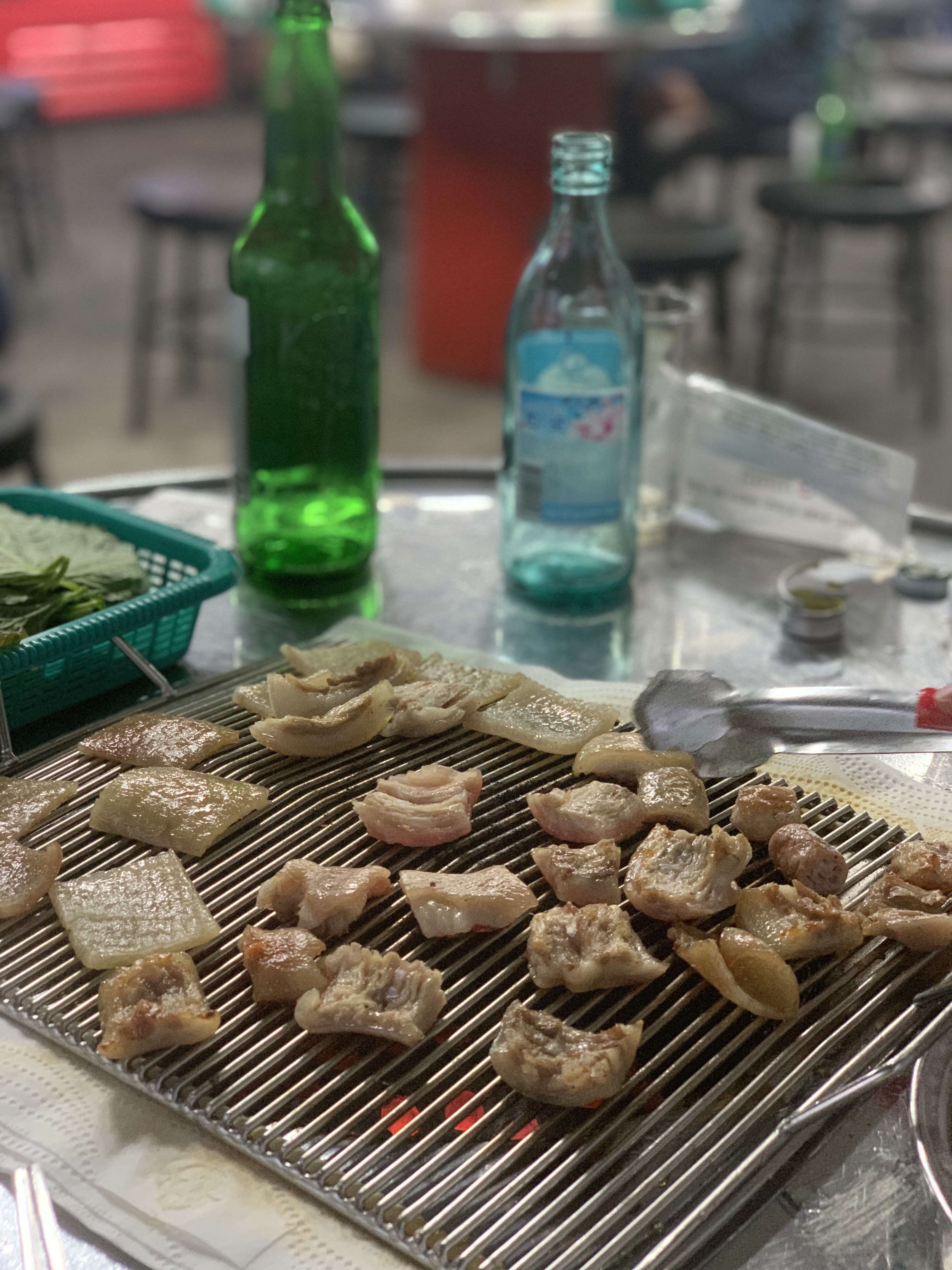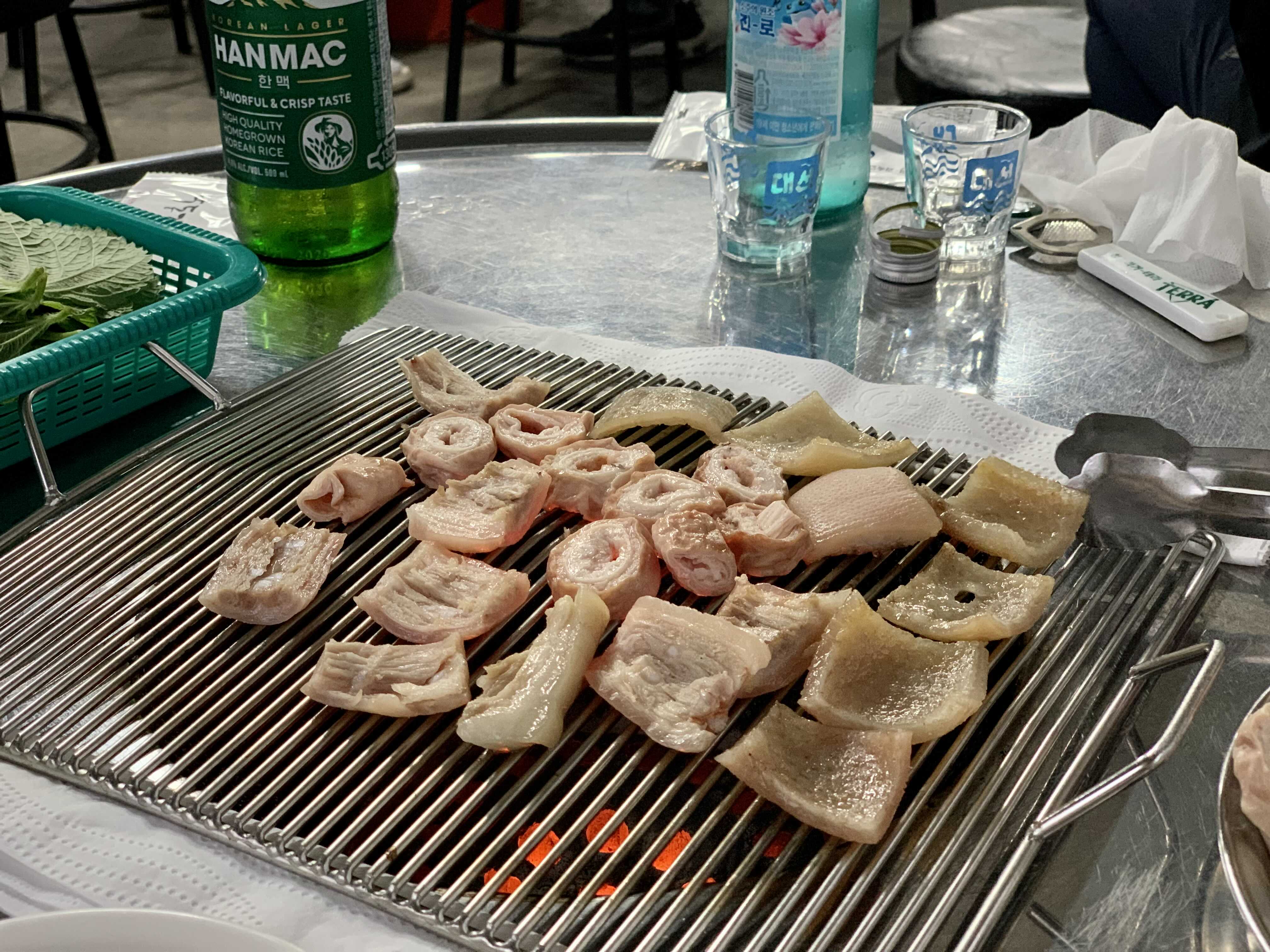 입가심 맥주 한 병과 소주 두병을 조지고 다음 2차 장소인 고깃집으로 출발했습니다. 여기서는 콜라겐만 섭취했기 때문에 본격적으로 고기를 먹으러 떠났습니다.