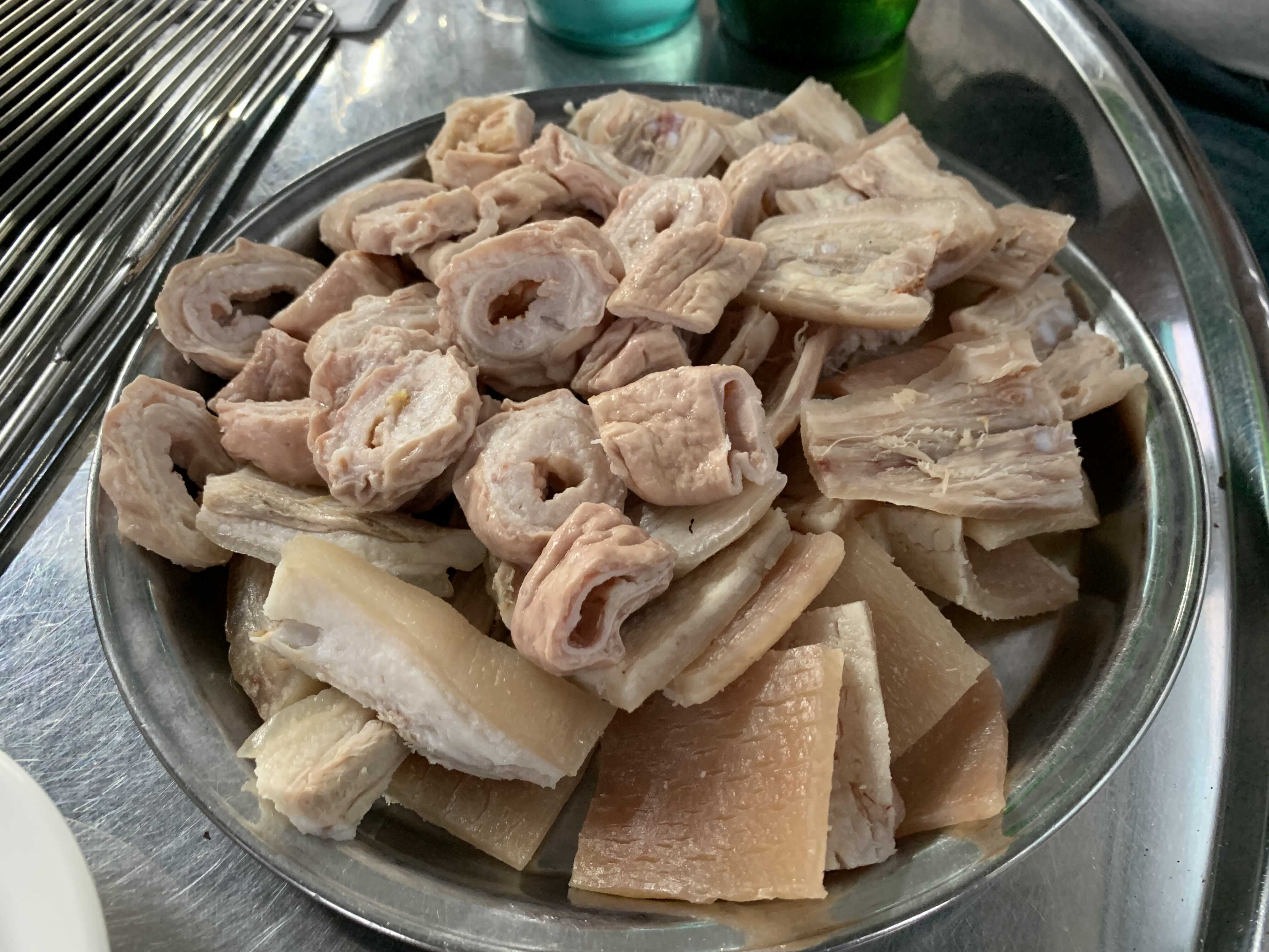 저희는 막창, 꼬리, 껍데기 구성의 모듬 메뉴를 주문하였습니다. 가격도 참 저렴합니다. 2명이면 모듬 하나 먹고 마무리로 라면을 먹으면 알맞습니다.