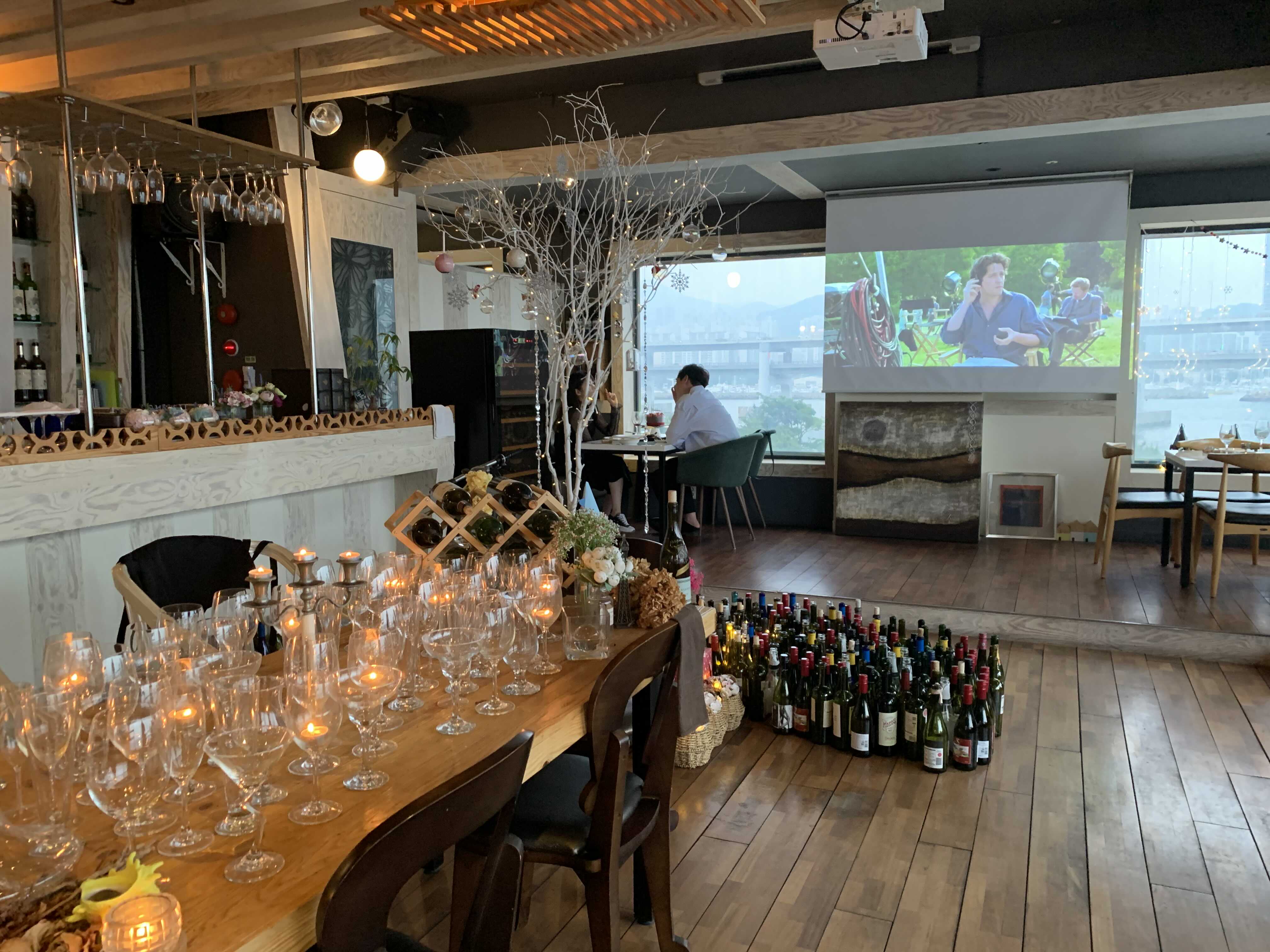 저희가 예약한 창가석입니다. 요즘은 해가 길어 아직 밝았는데 어두워지면 정말 뷰가 이쁠 것 같았습니다.