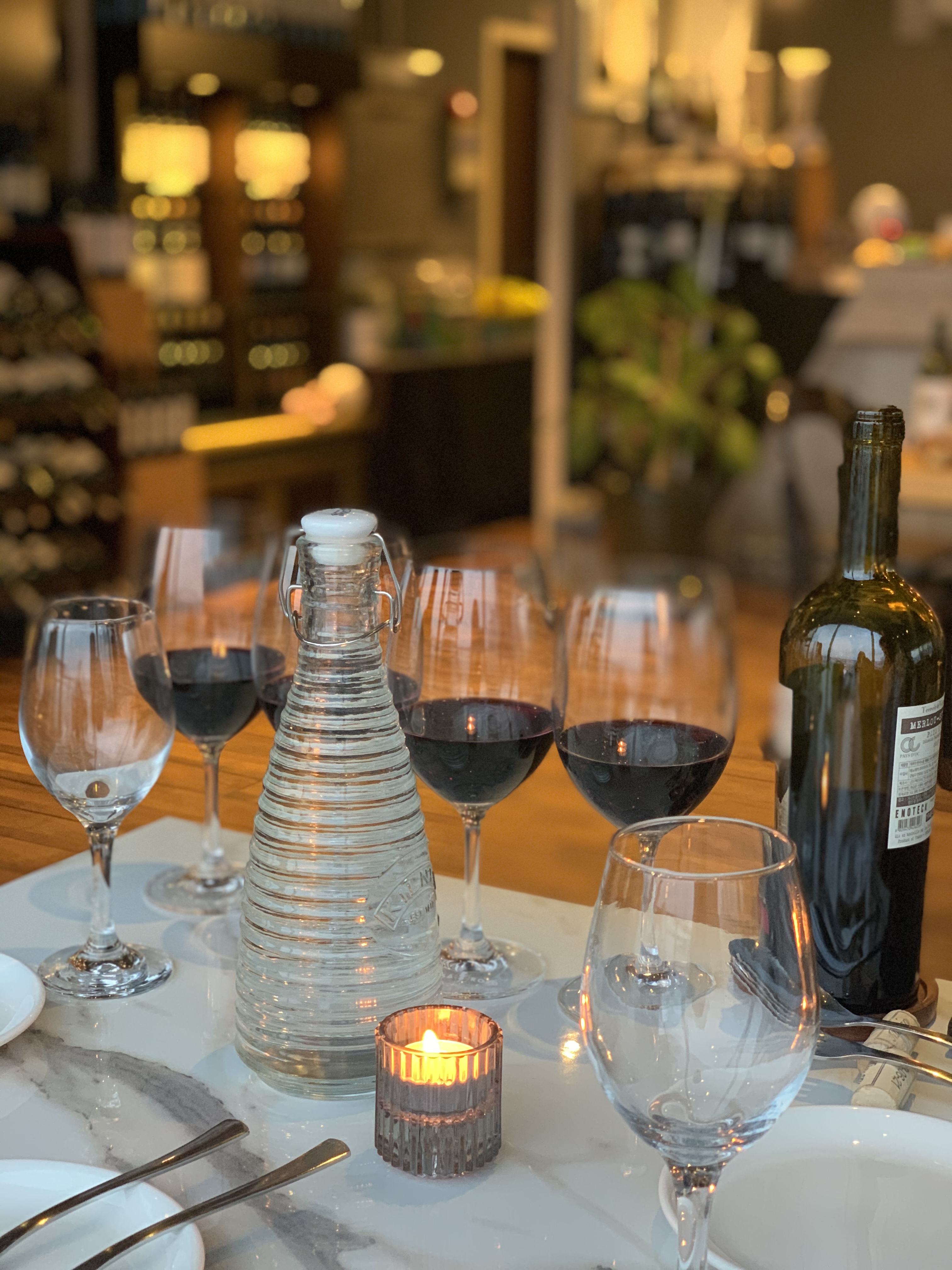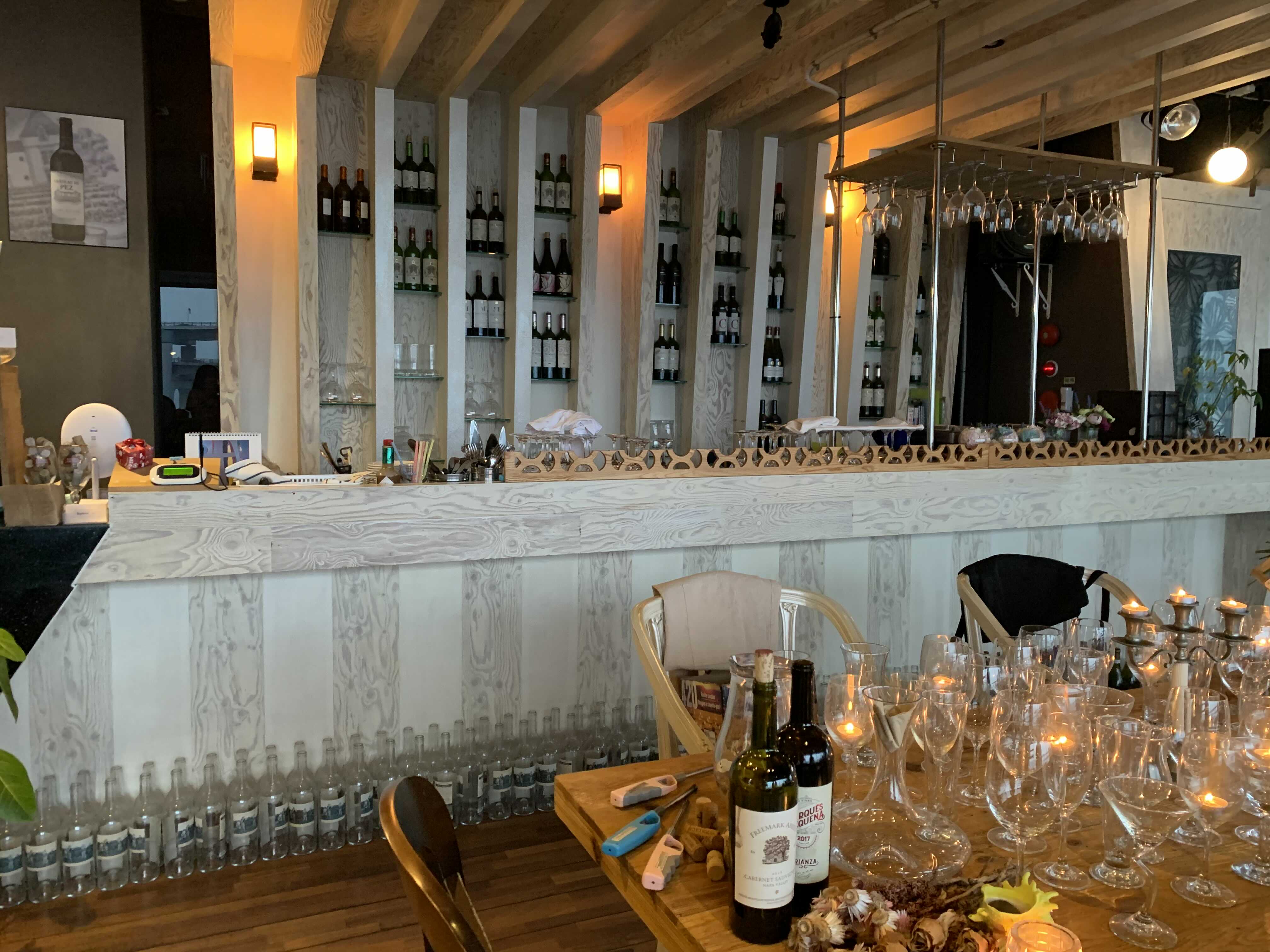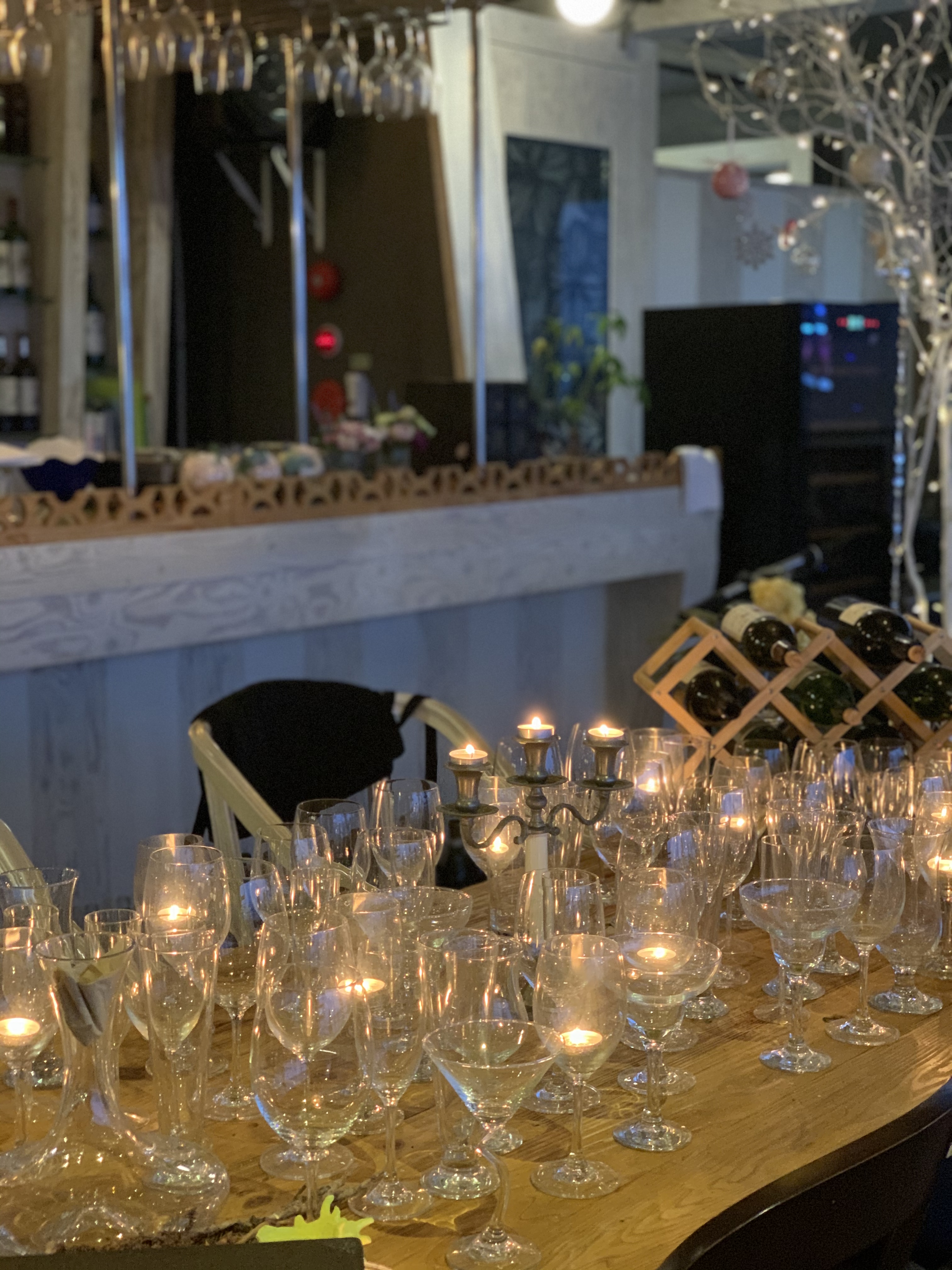 어두워지니 매장에 촛불과 작은 전구에도 불이 켜지면서 더 분위기가 멋있어졌습니다.
