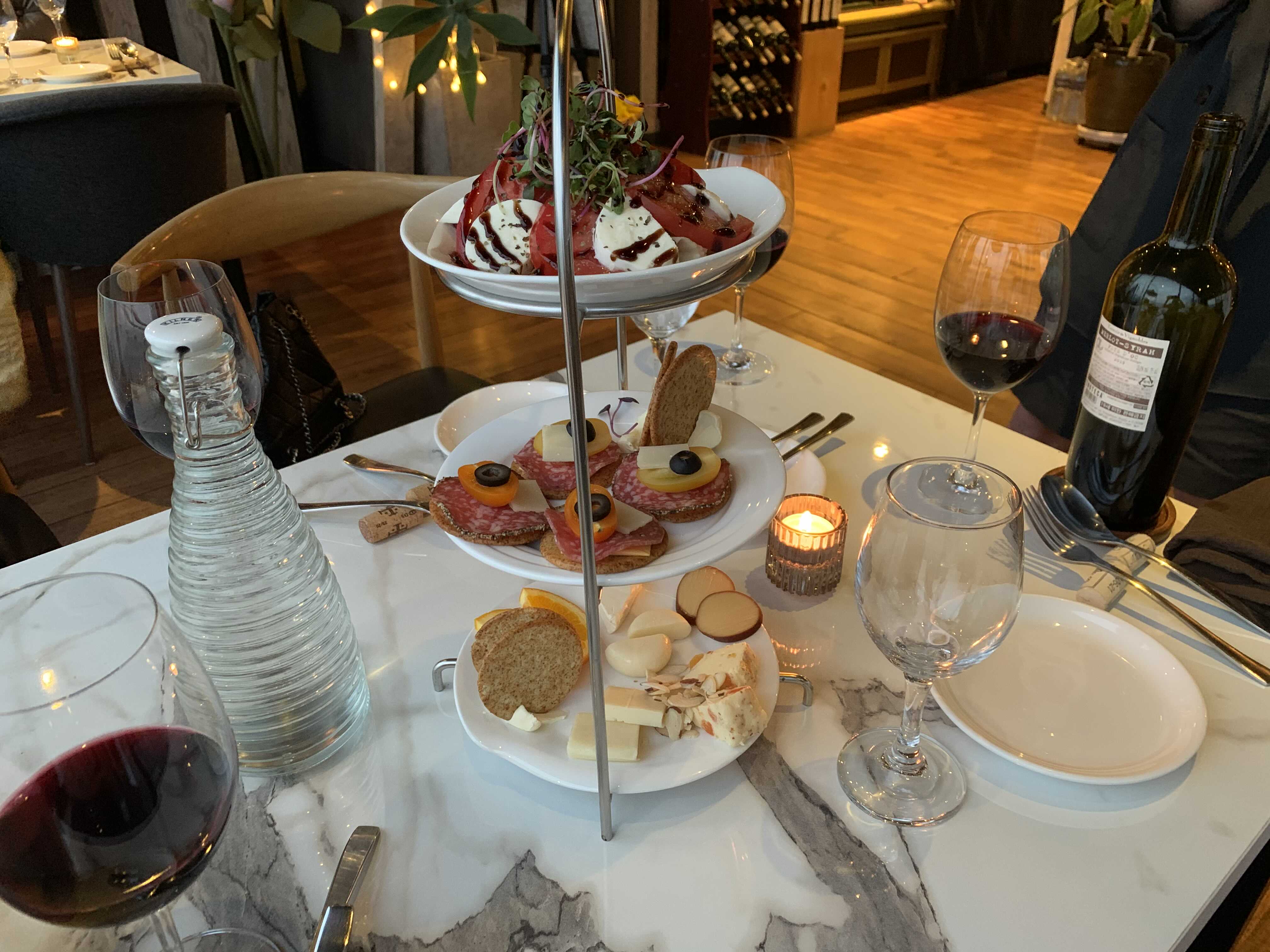3단 트레이는 치즈와 카프레제 샐러드 카나페 등 와인과 어울리는 안주가 3단으로 나오는 메뉴인데, 먹을 목적보다는 사실 사진 찍기에 멋있어 보이는 비주얼 때문에 여성분들이 많이들 주문하는 메뉴입니다.
