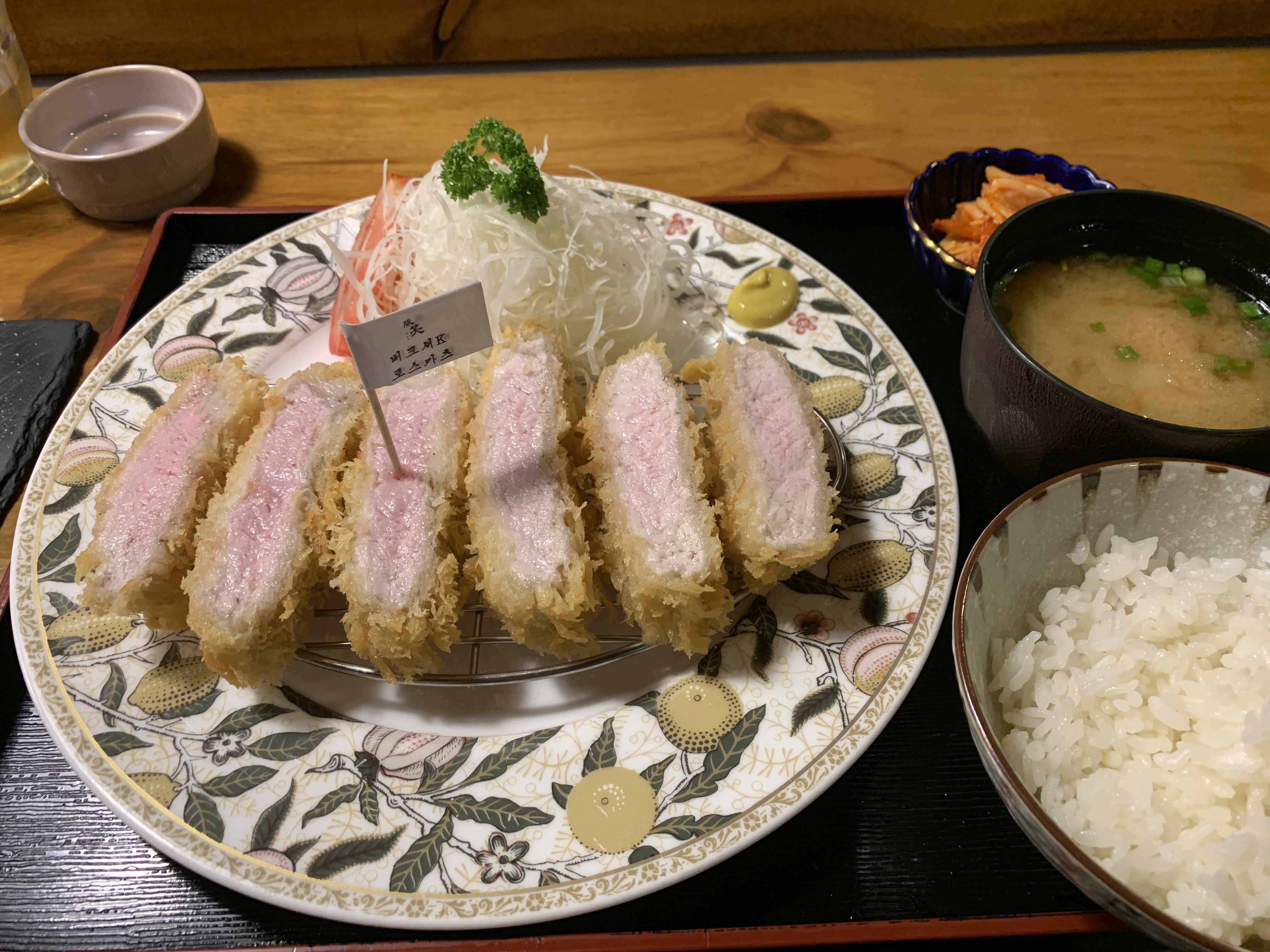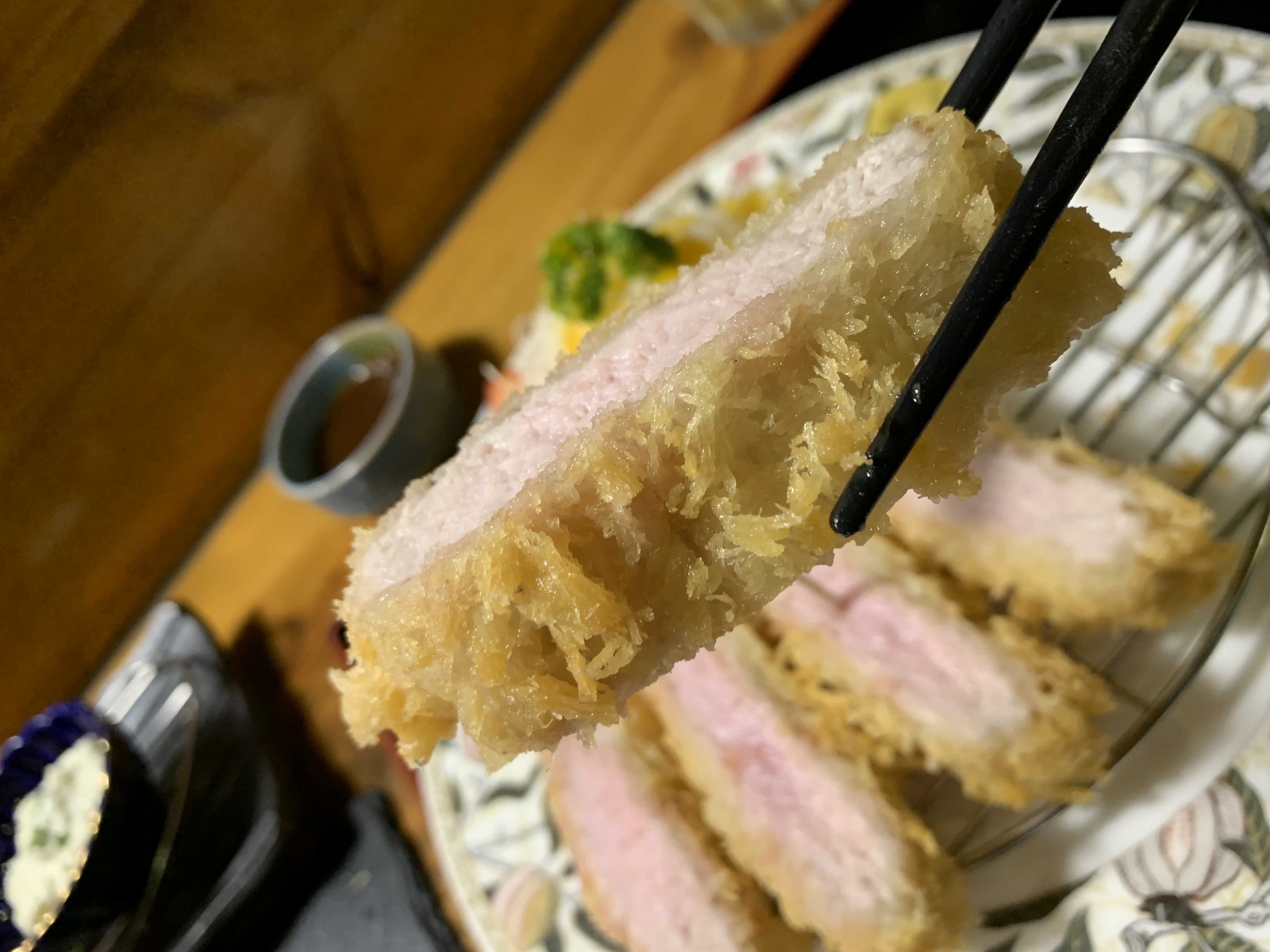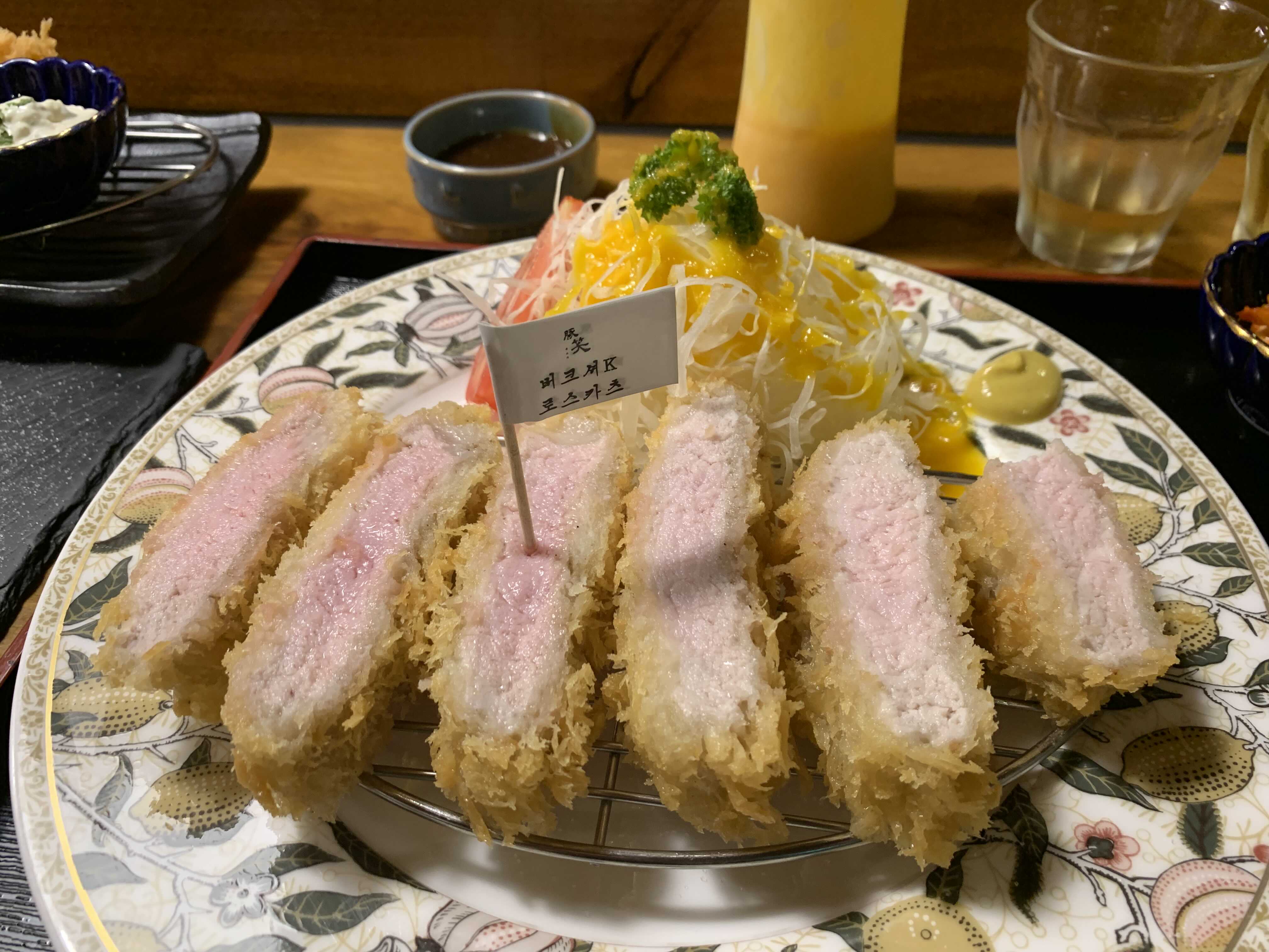 먹으면서도 참 희한했던 것이 분홍빛 고기가 안 익은 것 같으면서도 막상 씹으면 부드럽게 잘 익었습니다. 빛깔 때문인지 고기가 더 신선해 보이고 선홍빛 비쥬얼은 여태 먹은 돈카츠 중 제일인 것 같습니다.