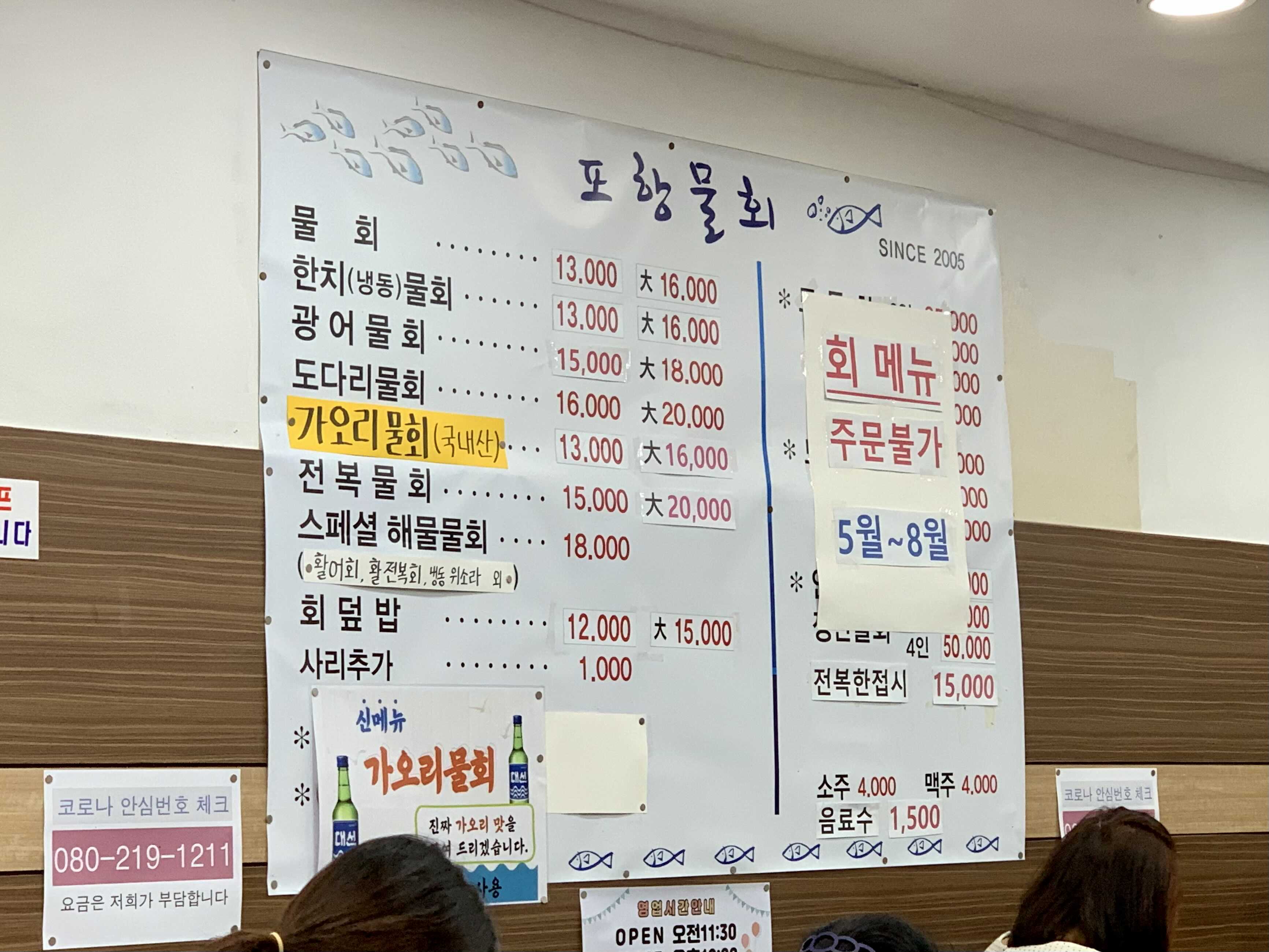 5월부터 8월까지는 물회 종류만 판매합니다.