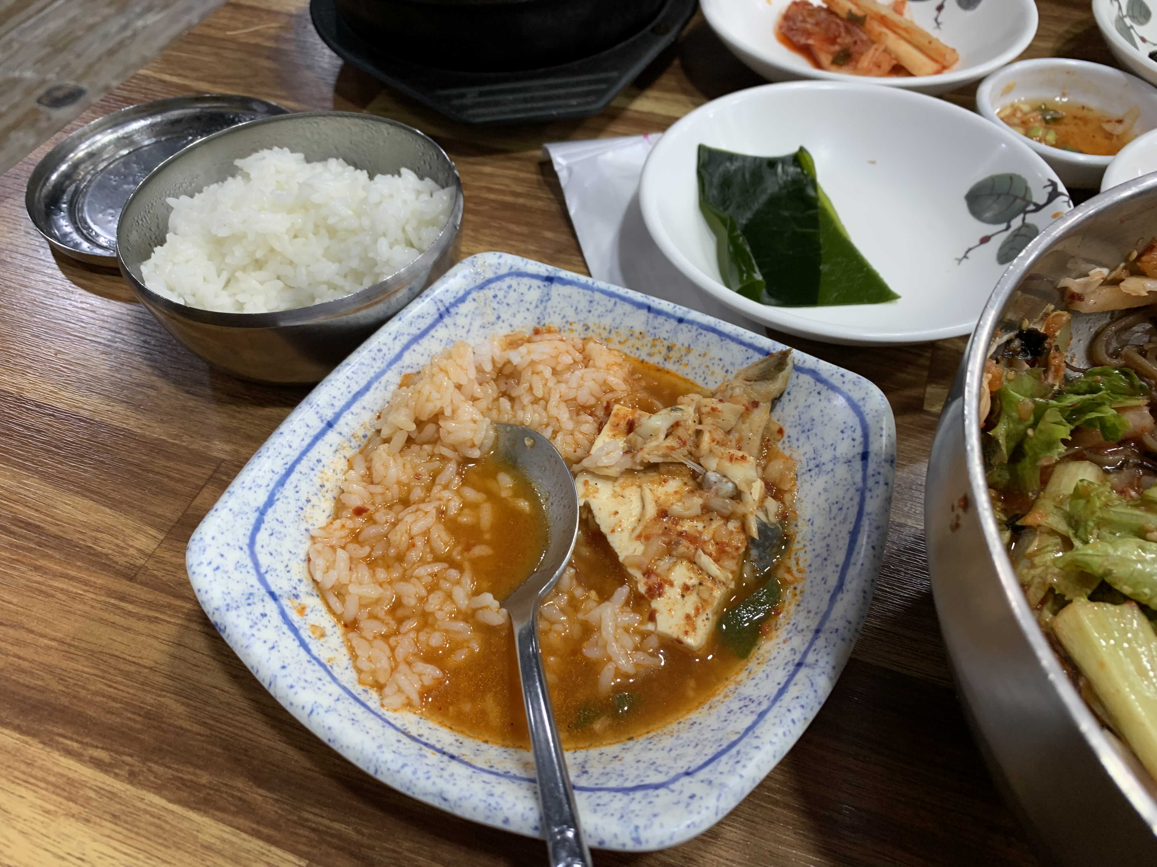 잘 참았다가 매운탕 먹으면서 순간 소주 생각이 나면서 정신을 잃을 뻔했지만 다시 부여잡고 밥을 말아먹습니다.