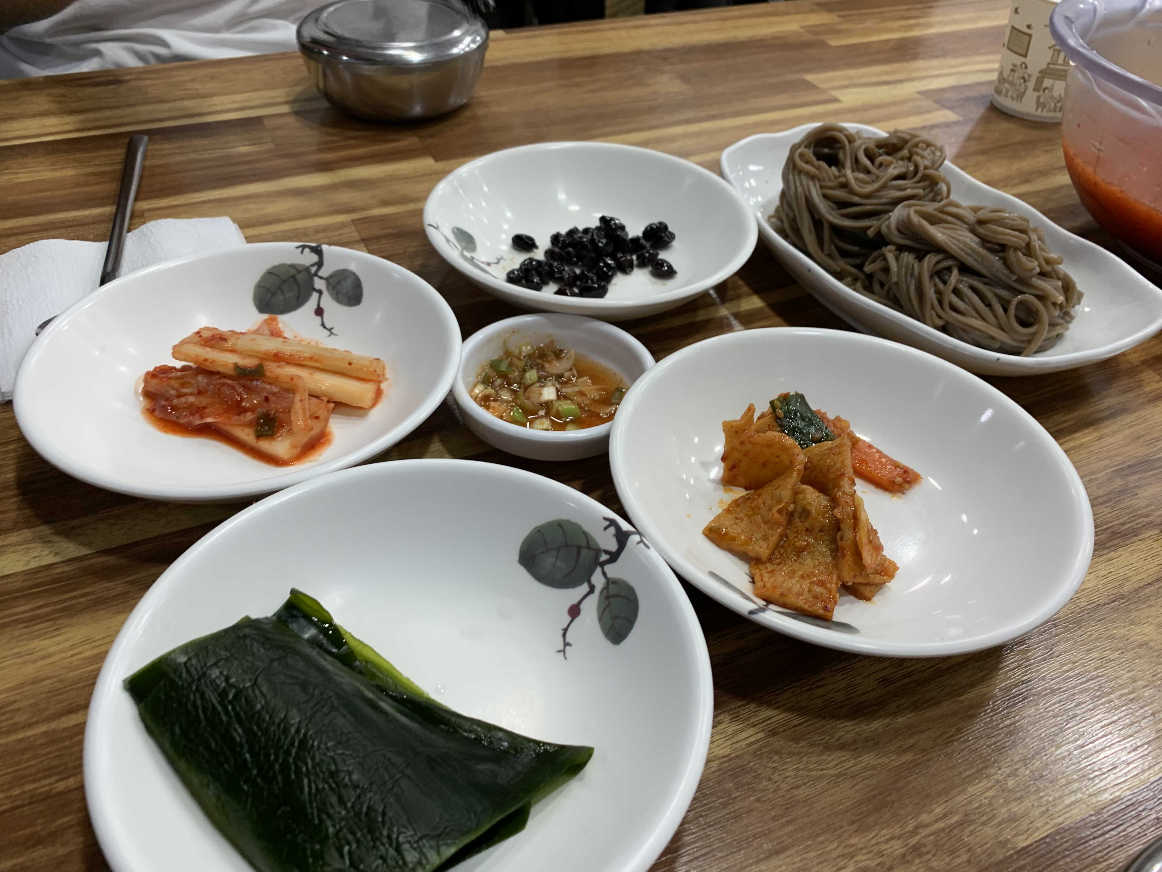 밑반찬이 세팅됩니다. 딱히 다시마 말고는 손가는 반찬은 없었습니다만 물회가 메인이니 밑반찬은 괜찮습니다.