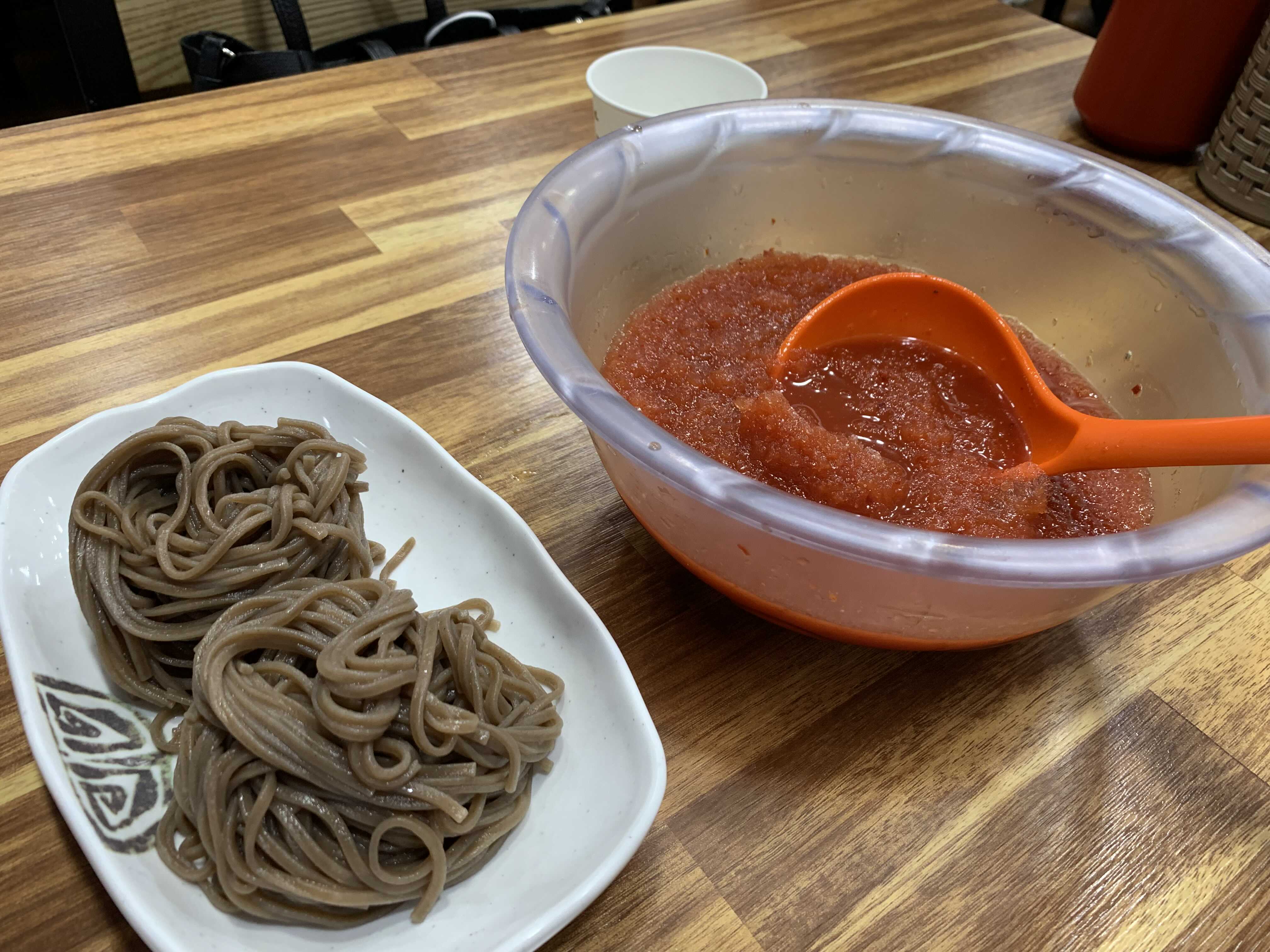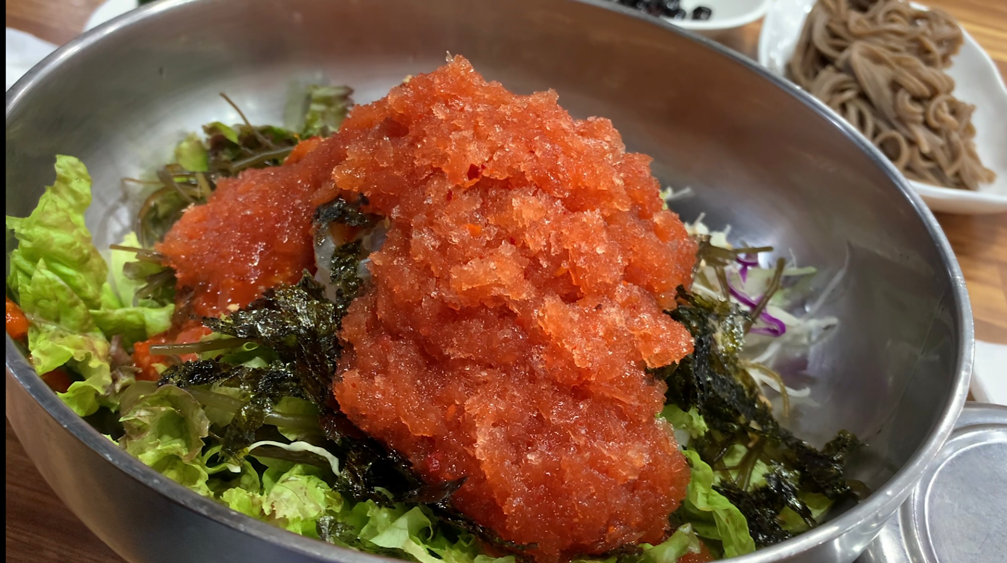 함께 넣어먹을 메밀면과 살얼음 육수도 준비되었습니다.