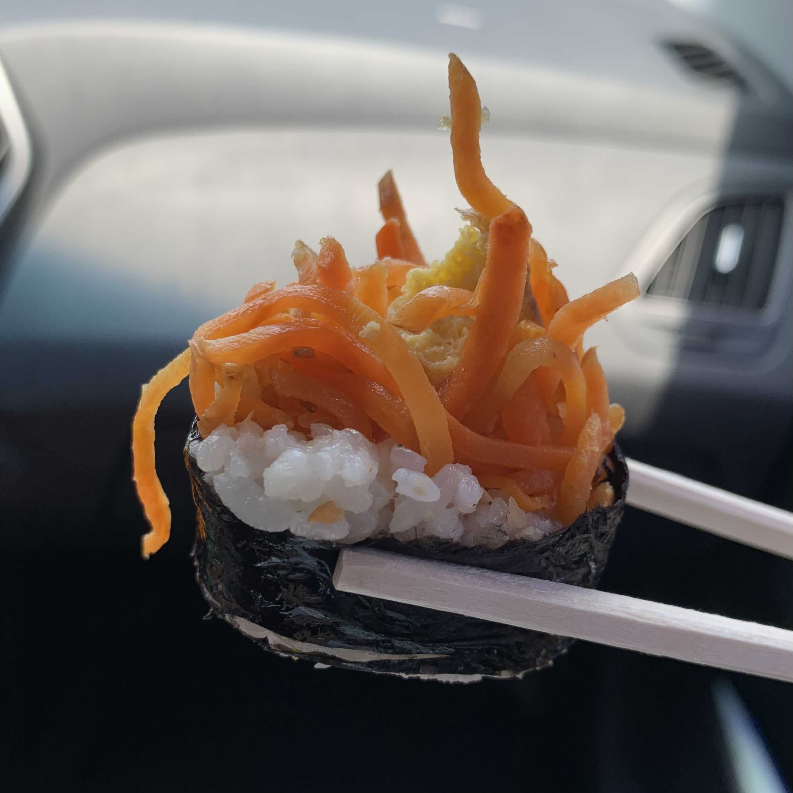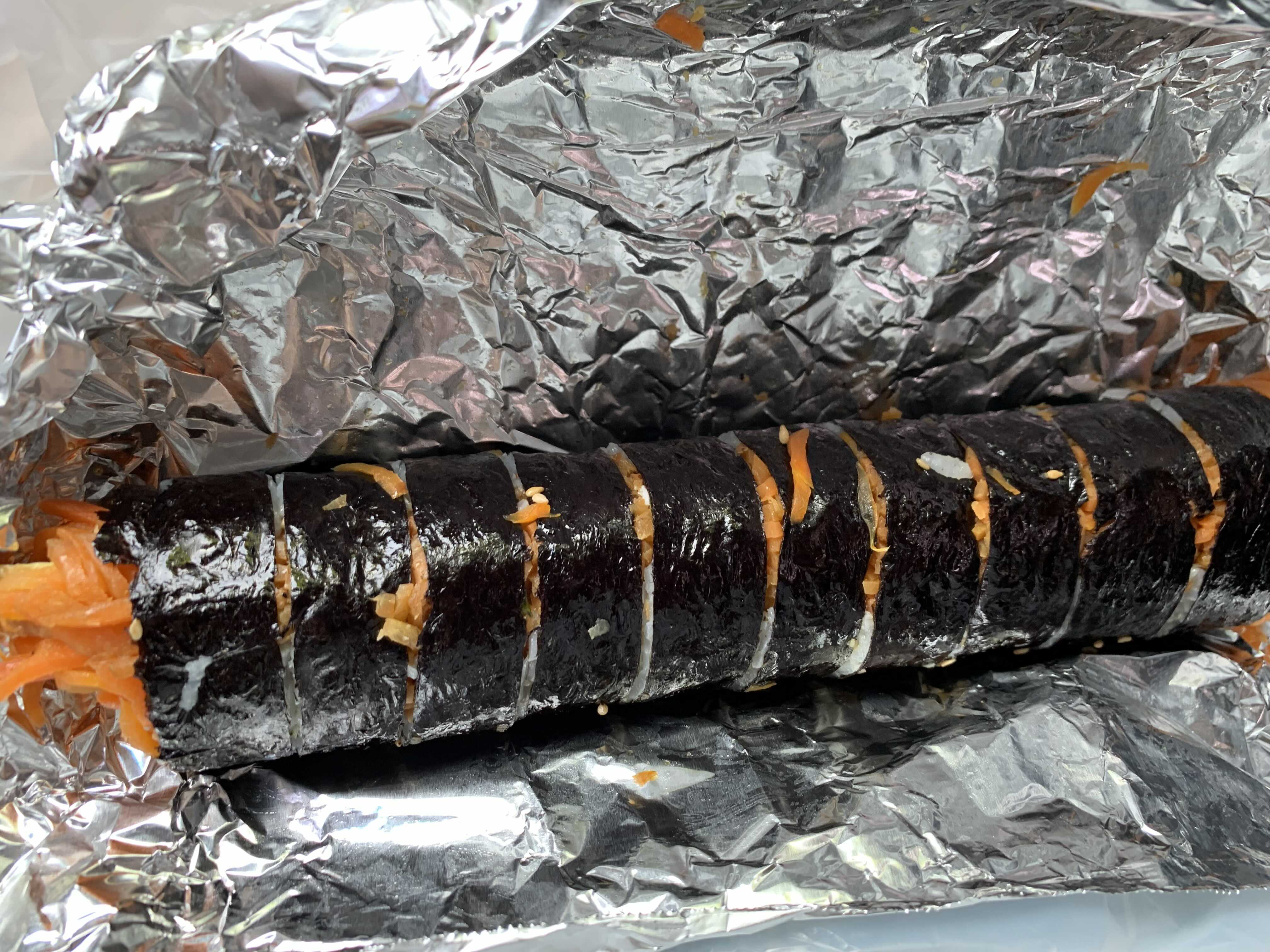 겉보기에는 정말 특별할 것 없는 당근 많이 들어간 김밥입니다.