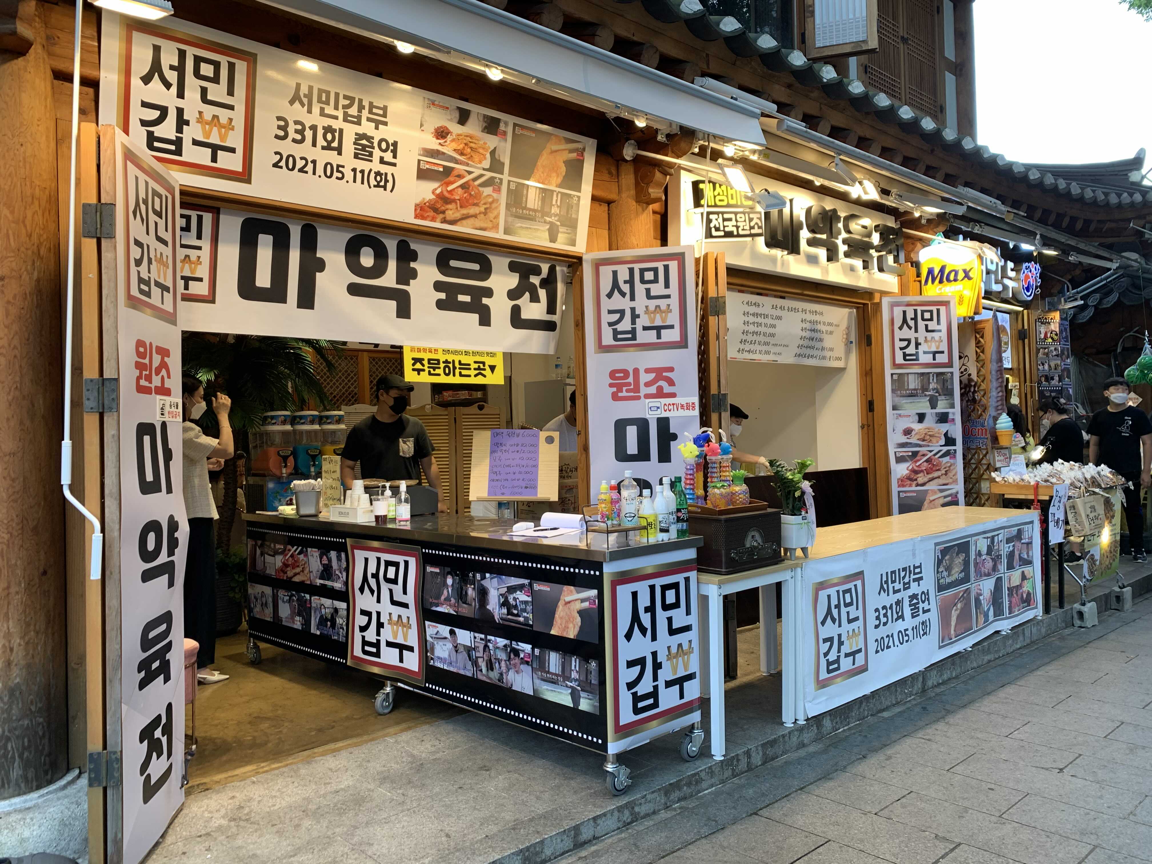 야시장에서 시작한 육전이 인기를 얻어 한옥마을까지 진출하게 되고 방송에도 출연하게 되면서 오늘날 서민갑부 마약육전이 탄생하게 되었다고 합니다.