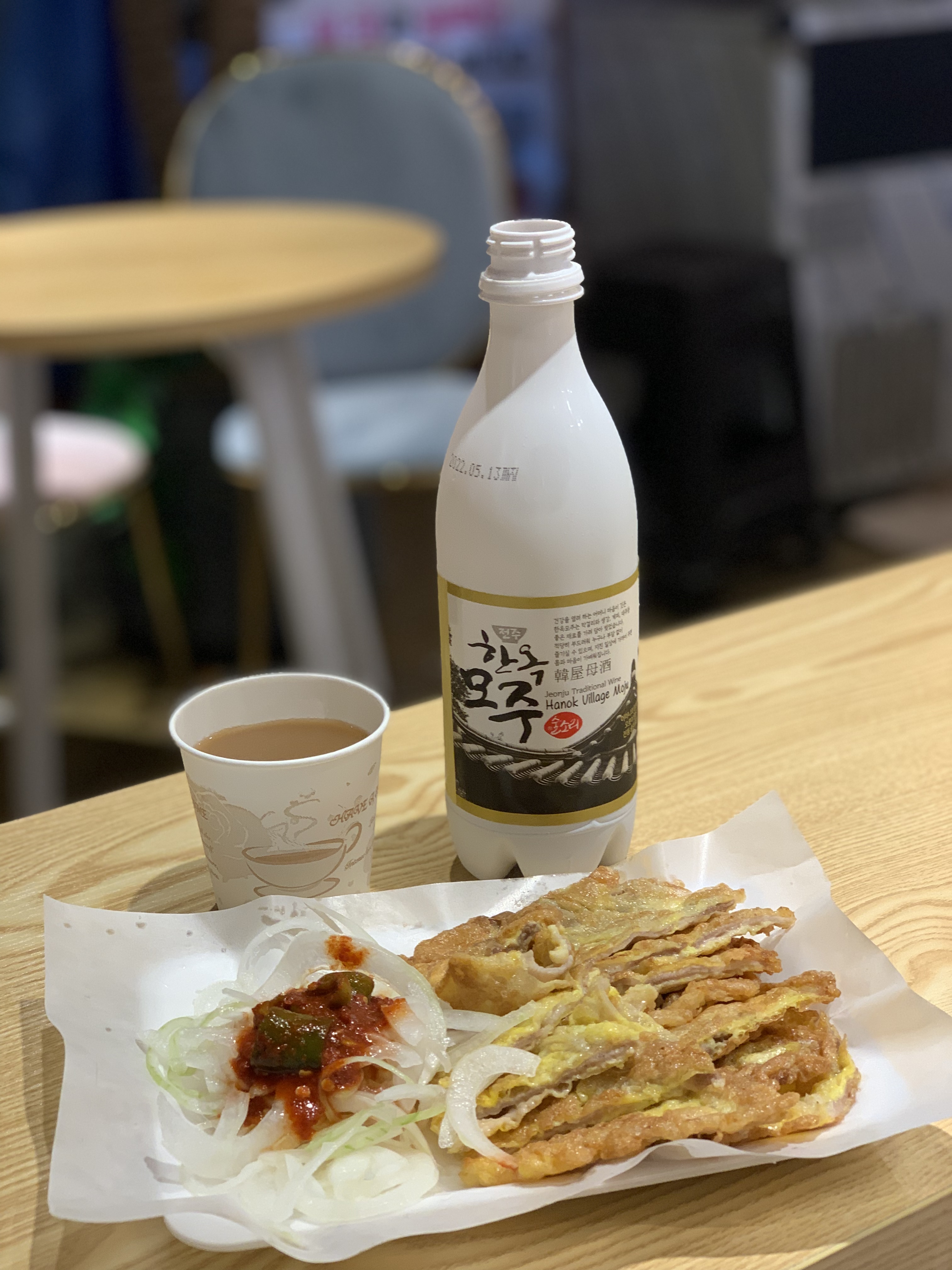 전주 특산물인 모주입니다. 막걸리, 생강, 계피, 대추 등으로 빚은 술입니다. 개인적으로 거의 술맛은 느껴지지 않고 달달하니 수정과 같은 전통음료 먹는 느낌입니다. 가볍게 먹기 좋은 술입니다.