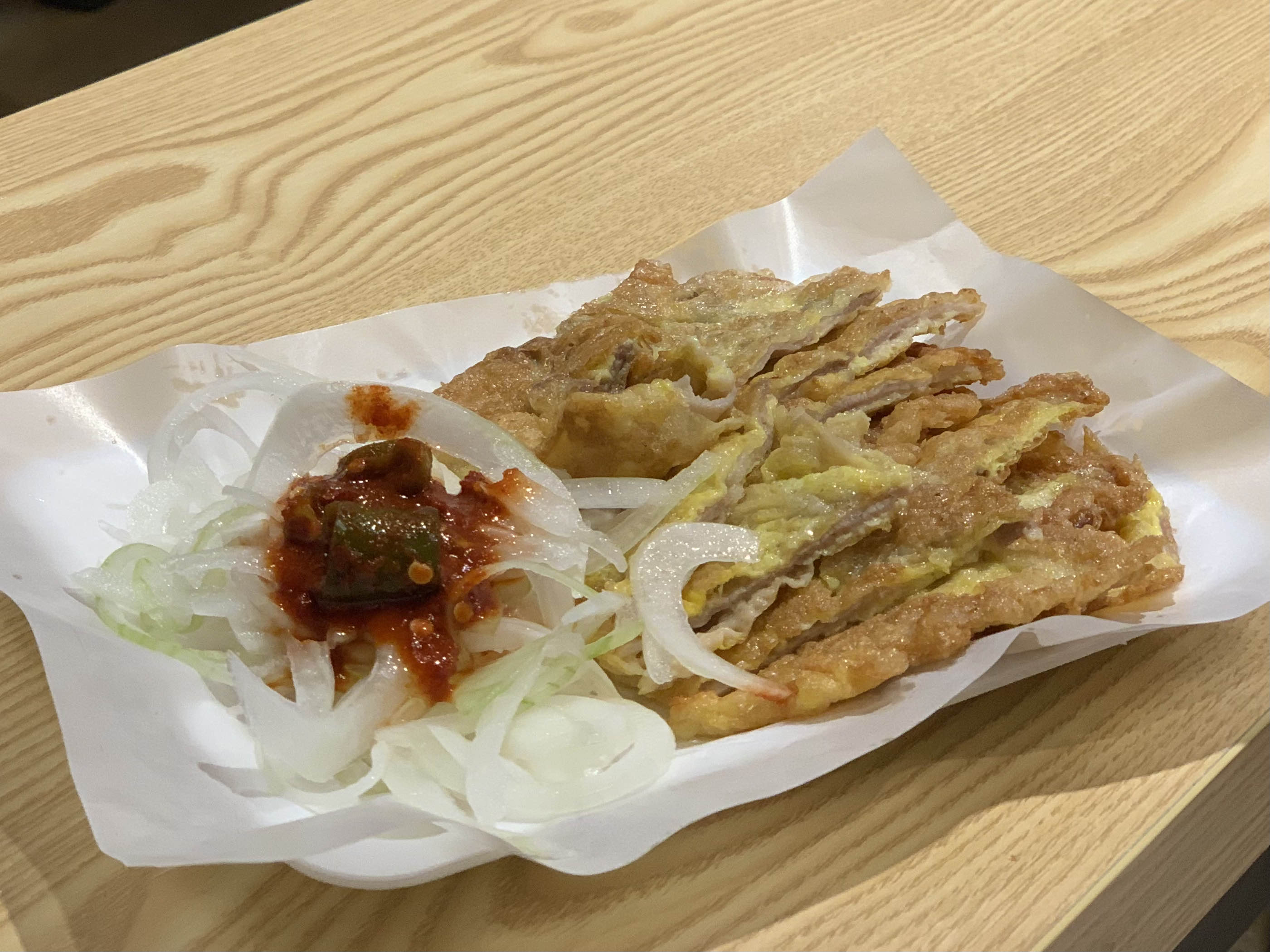 폭신하게 부드러운 식감과 갓 부쳐낸 따뜻한 육전이 저는 사실 소고기인 줄 알고 먹었습니다. 알고 보니 돼지고기 뒷다리살로 만든 돼지고기 육전이었습니다. 가격이 저렴한 이유가 여기에 있었습니다.