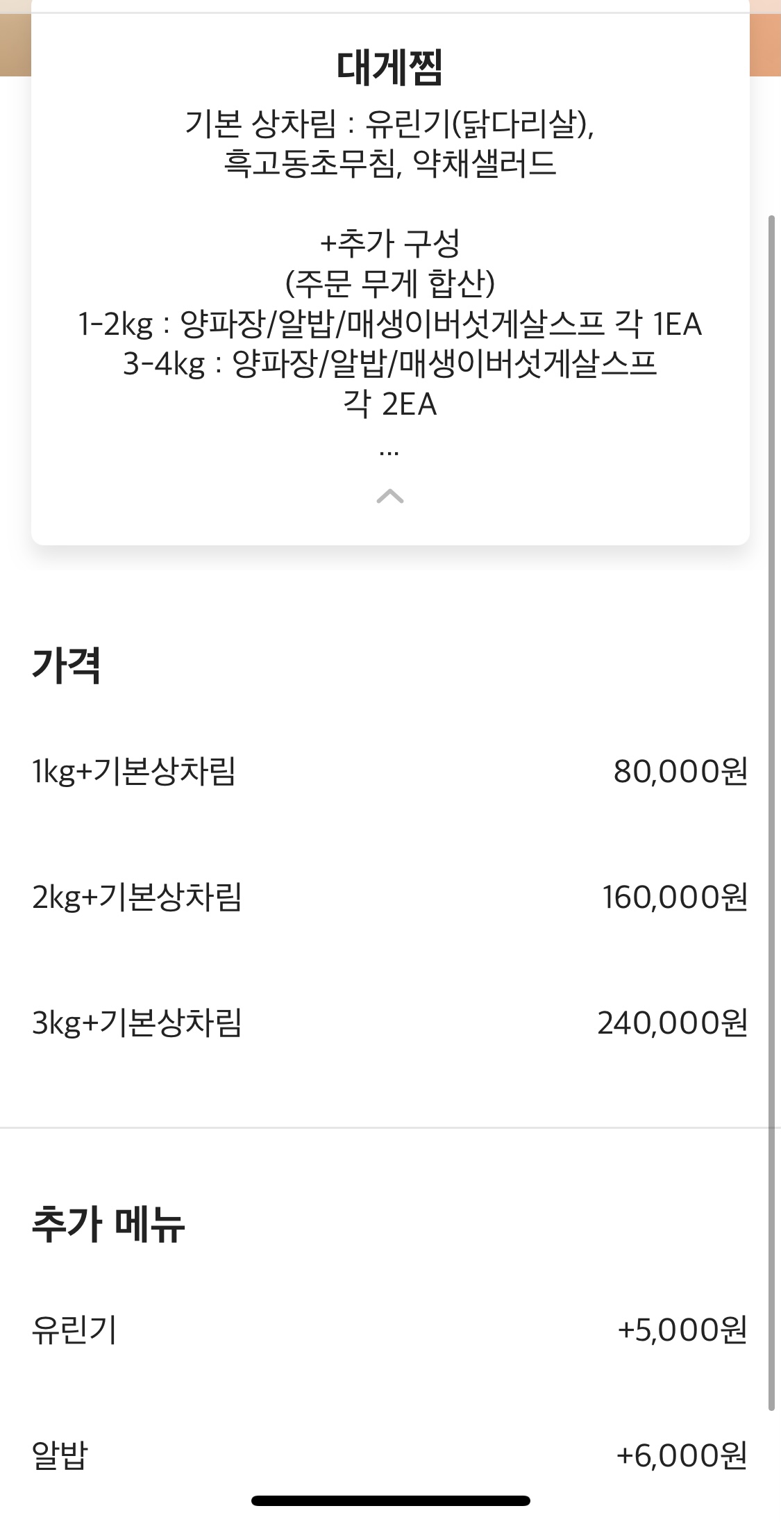 대게찜 1kg(21.09.05기준) 80,000원