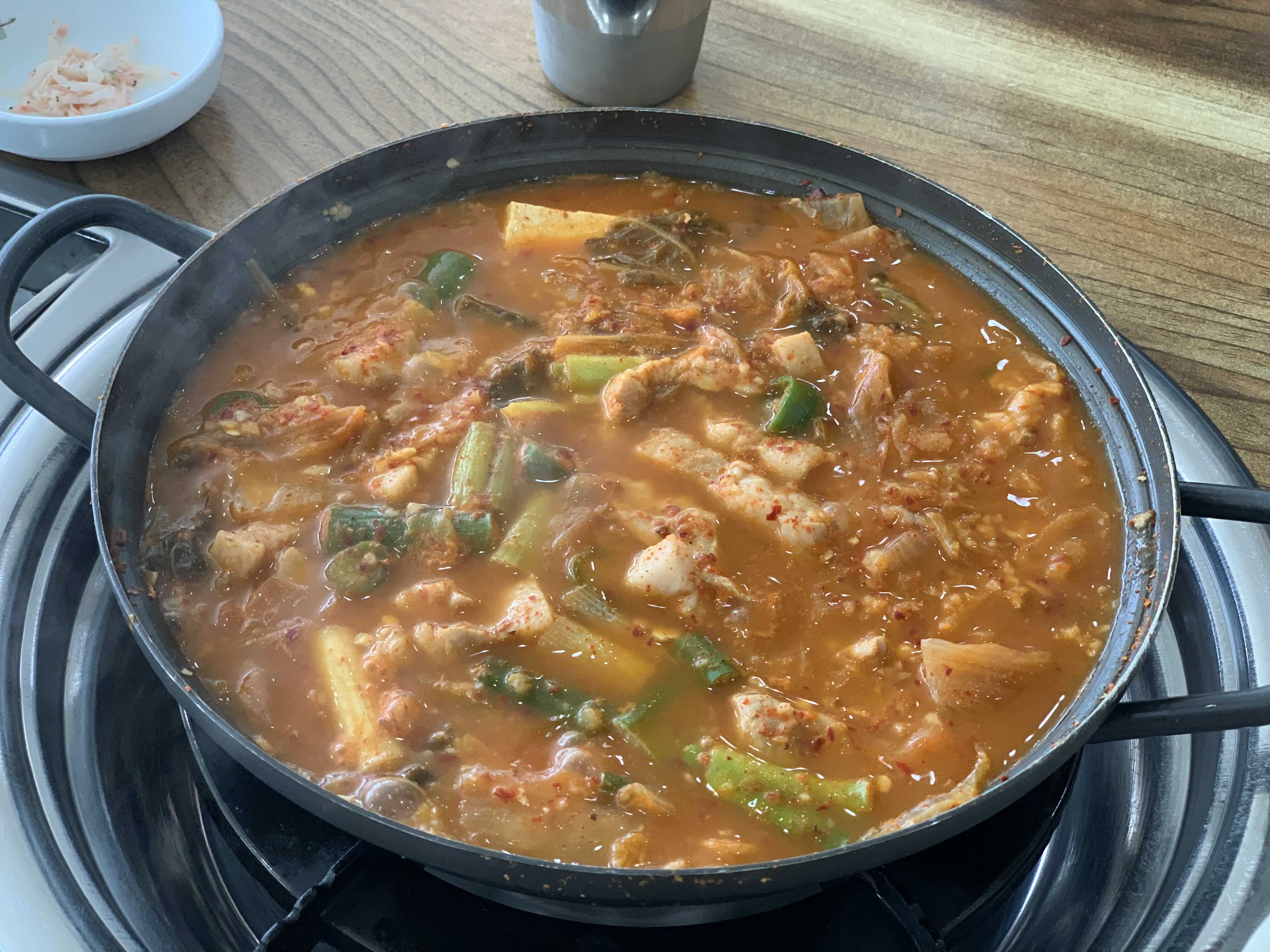 사진은 찍지 못했지만 라면 사리도 넣어서 끓여 먹었습니다. 부족한 육수는 요청하면 더 부어주십니다. 사천 현지인 맛집 김치찌개 잘 먹고 갑니다!