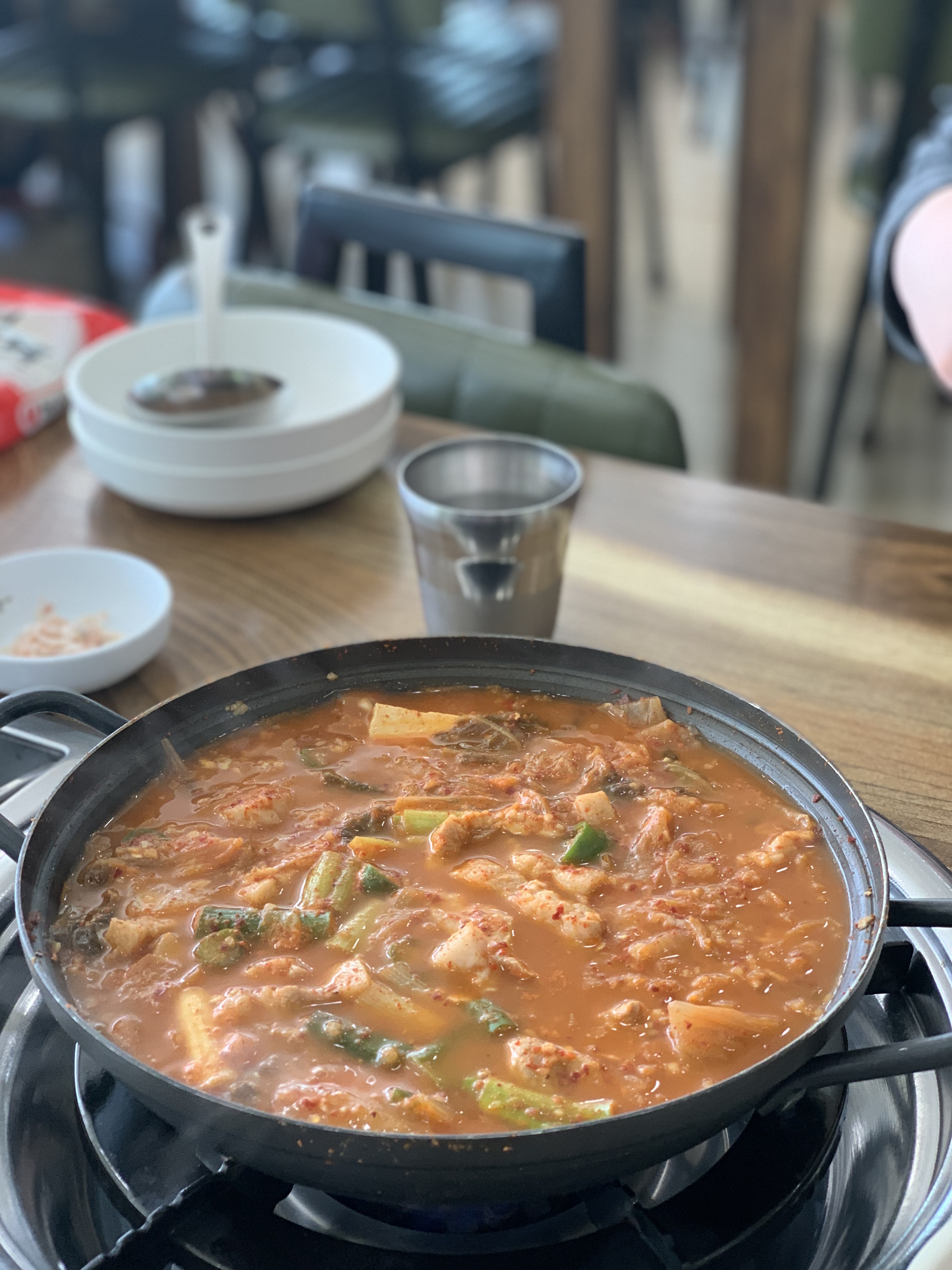 사천 아르떼리조트에서 꿀맛 같은 휴식을 즐기고 아침을 먹기로 합니다. 리조트의 조식도 꽤 괜찮다는 후기를 보았지만 사천에서 현지인 맛집으로 유명한 김치찌개 집이 있다는 소문을 듣고 식당으로 향했습니다.