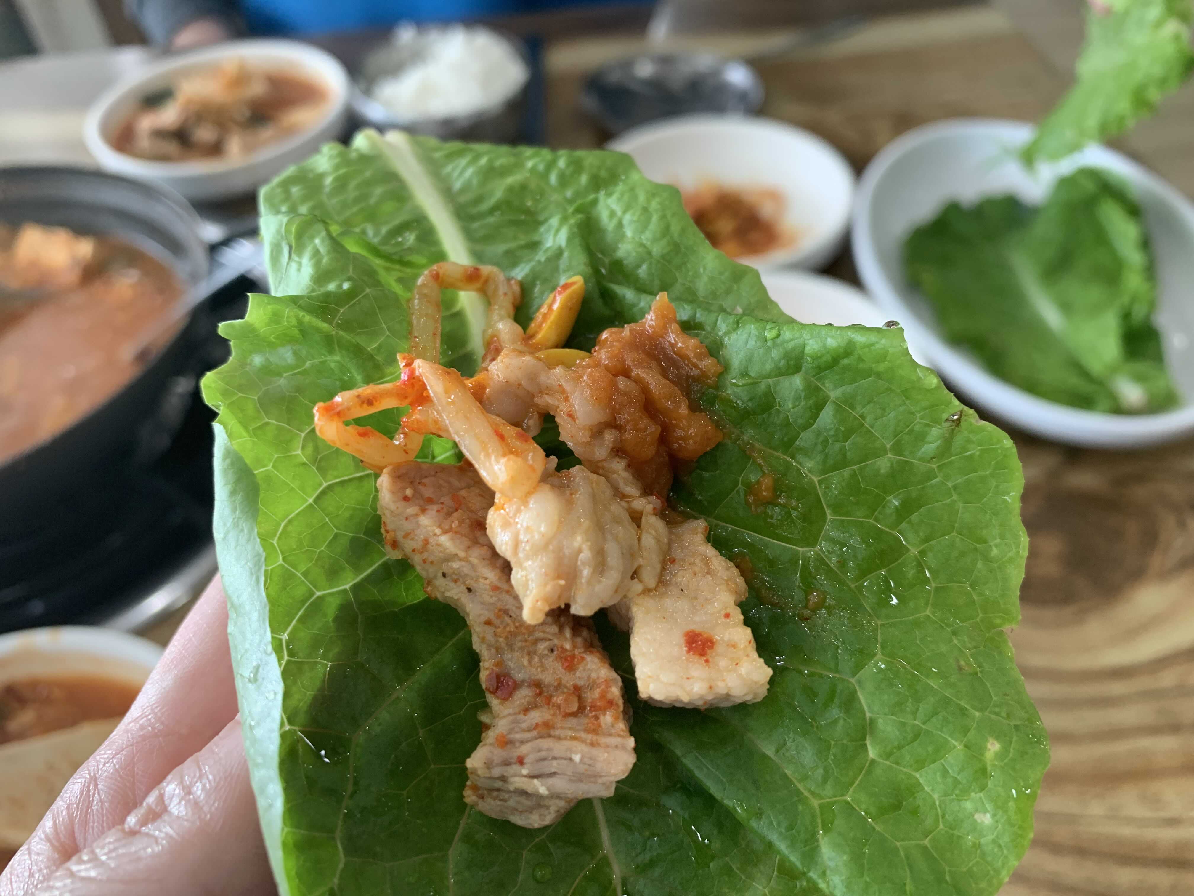 김치찌개의 고기를 싸먹을 수 있도록 상추가 나오는 것이 특별했습니다.