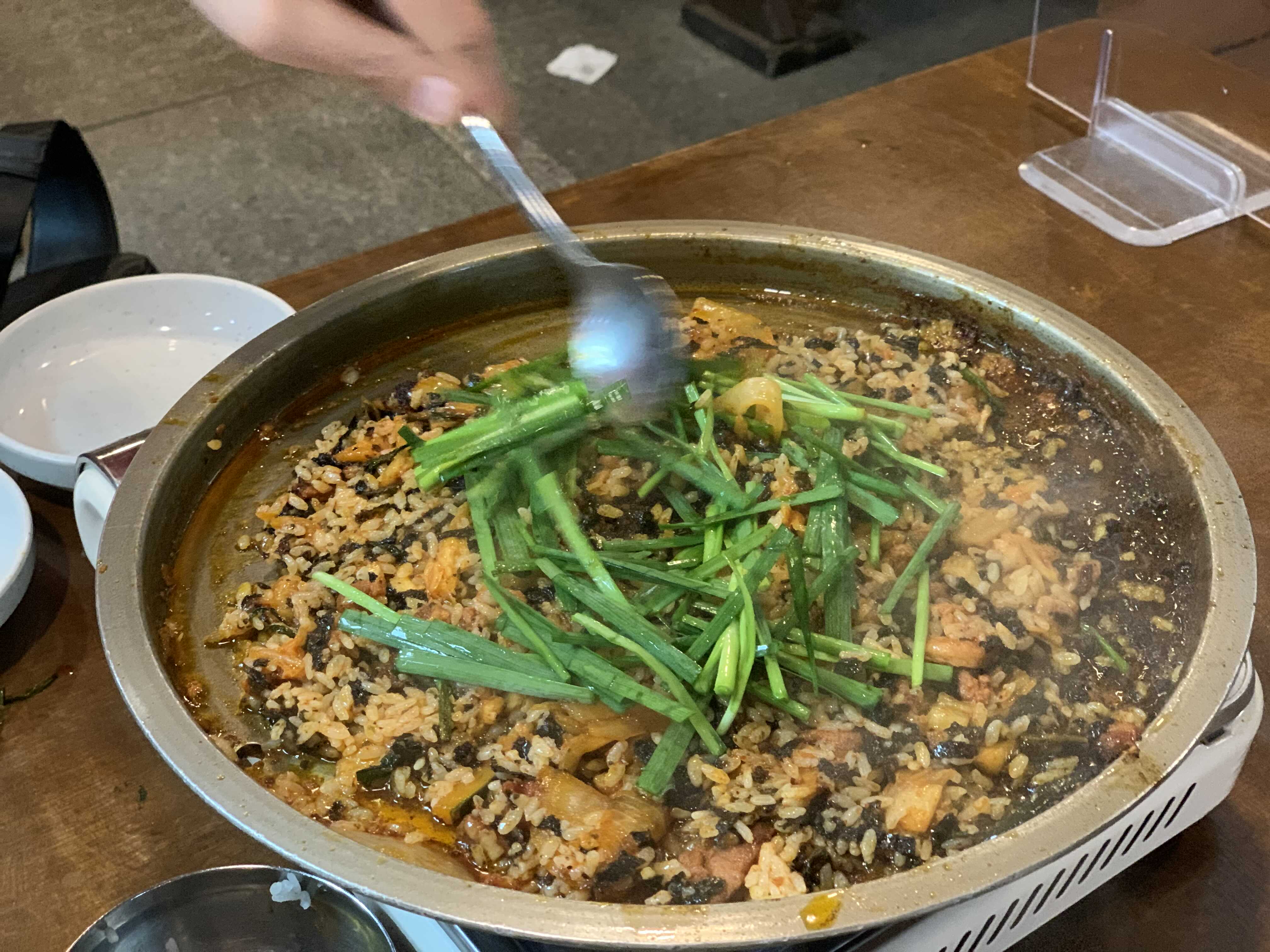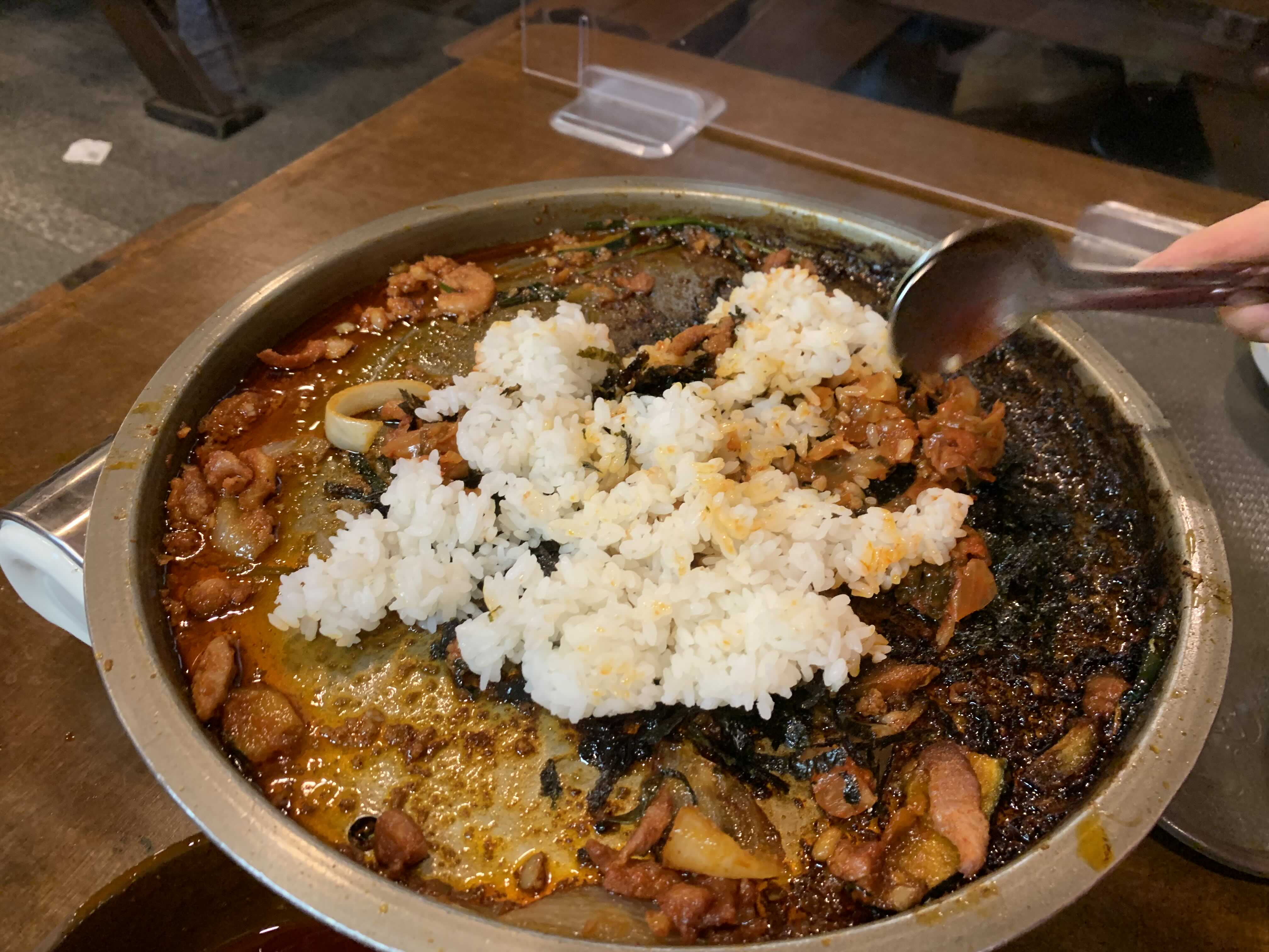 고기는 거의 건져 먹었고 이제 하이라이트! 냉수탕가든 오리불고기의 화룡점정인 볶음밥입니다.