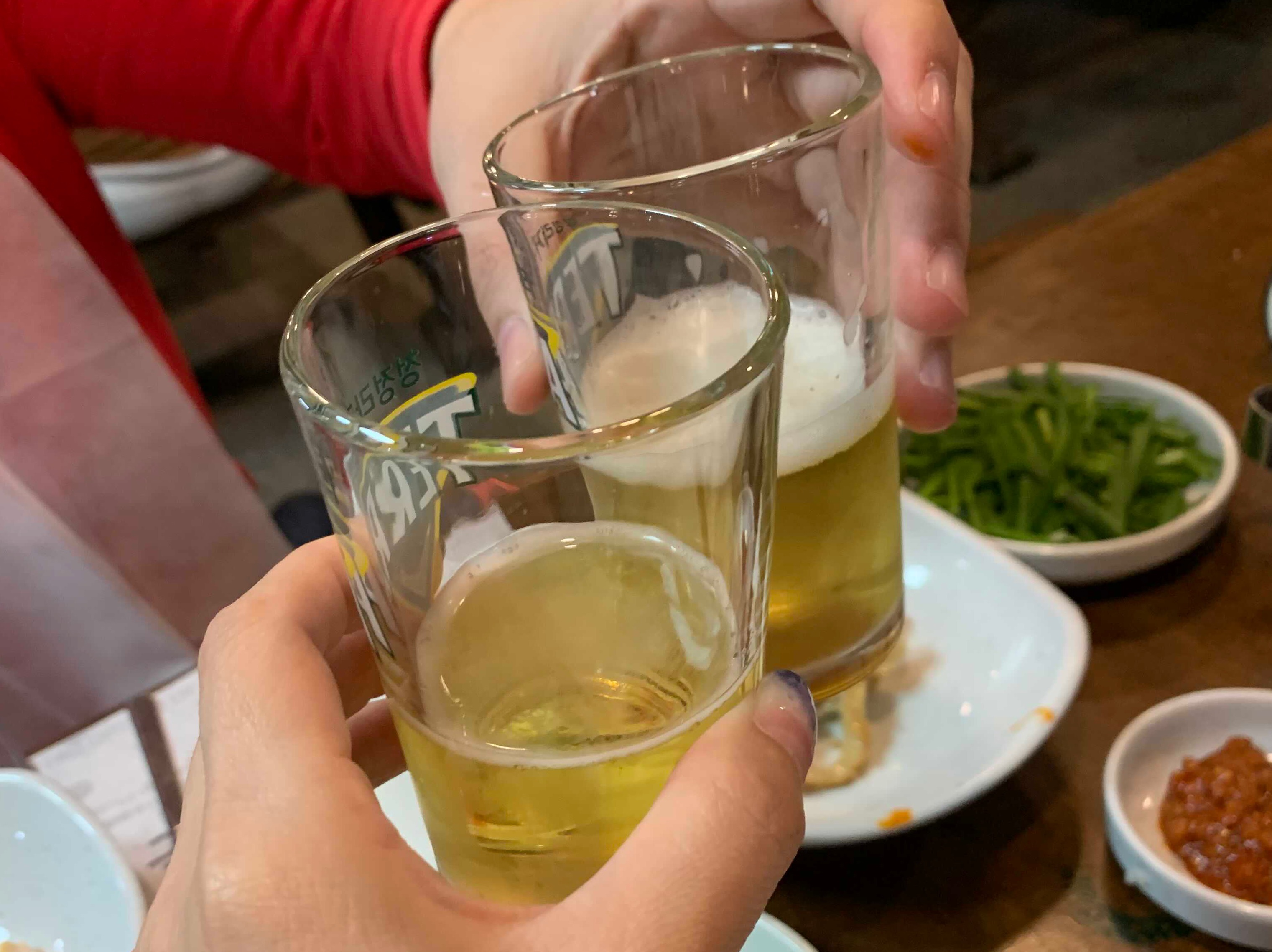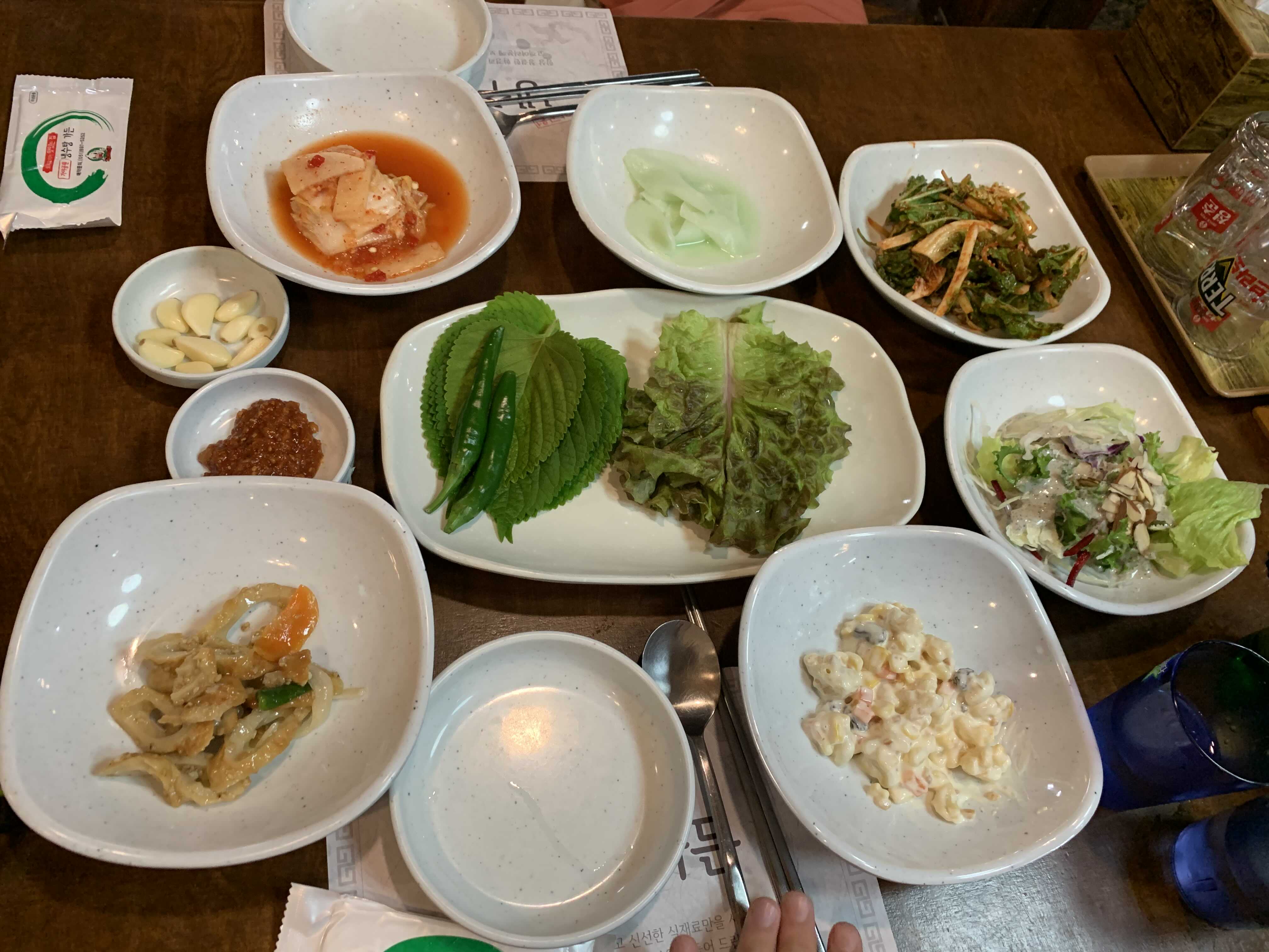삼십 분 정도 기다린 후 드디어 자리를 안내받았습니다. 겉절이, 샐러드 등 기본반찬이 준비됩니다.