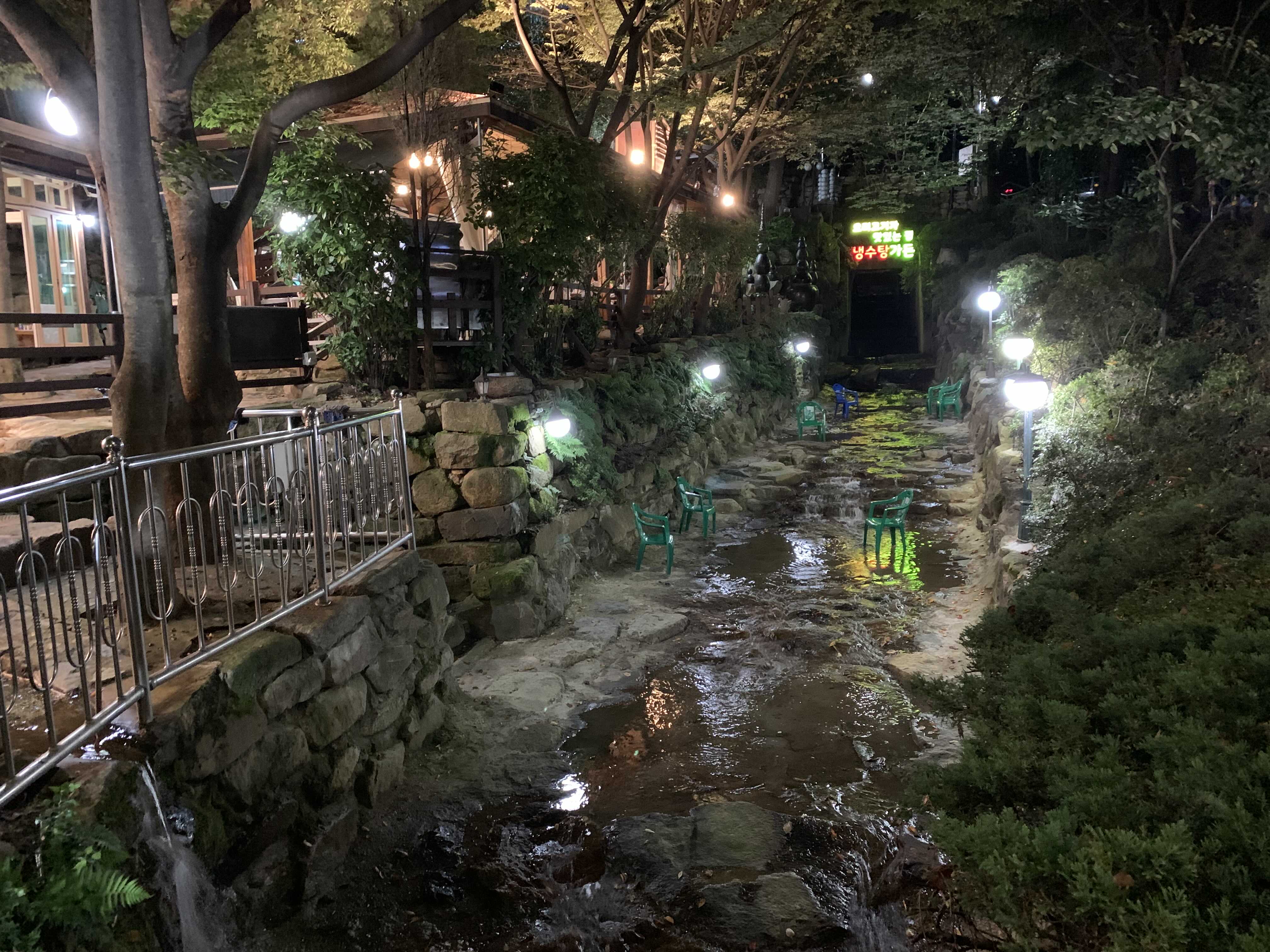 실내 자리에서 먹는다면 굳이 메리트는 없을 것 같습니다. 밤에도 좋지만 푸릇푸릇한 나무와 계곡 뷰를 보면서 낮에 방문한다면 더 좋겠다는 생각을 합니다.