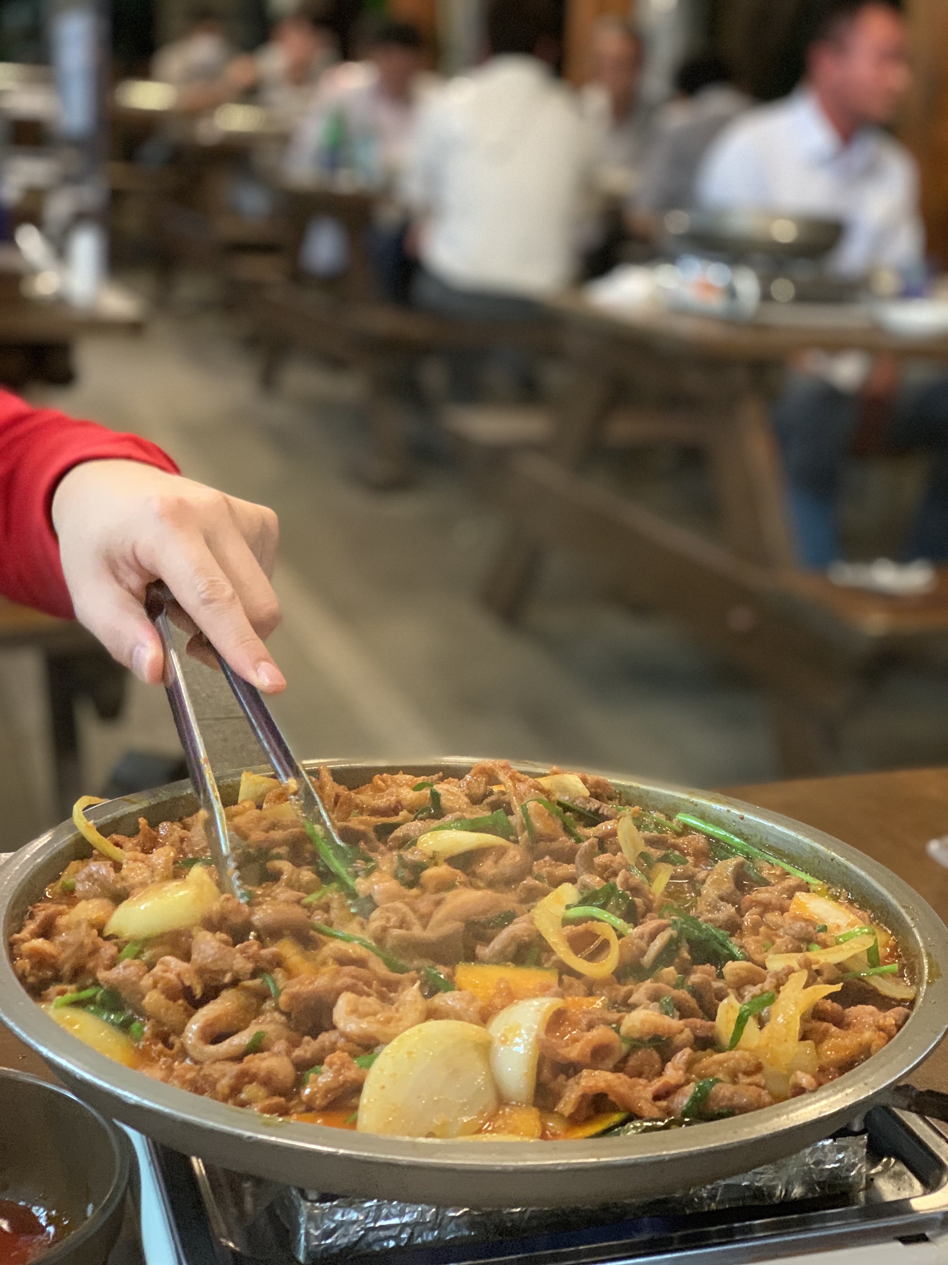오리고기는 빨간 양념이라 익었는지 덜 익었는지 잘 구분이 가지 않아 이모님에도 한번 여쭈어 보고 이제 슬 먹을 준비를 합니다.