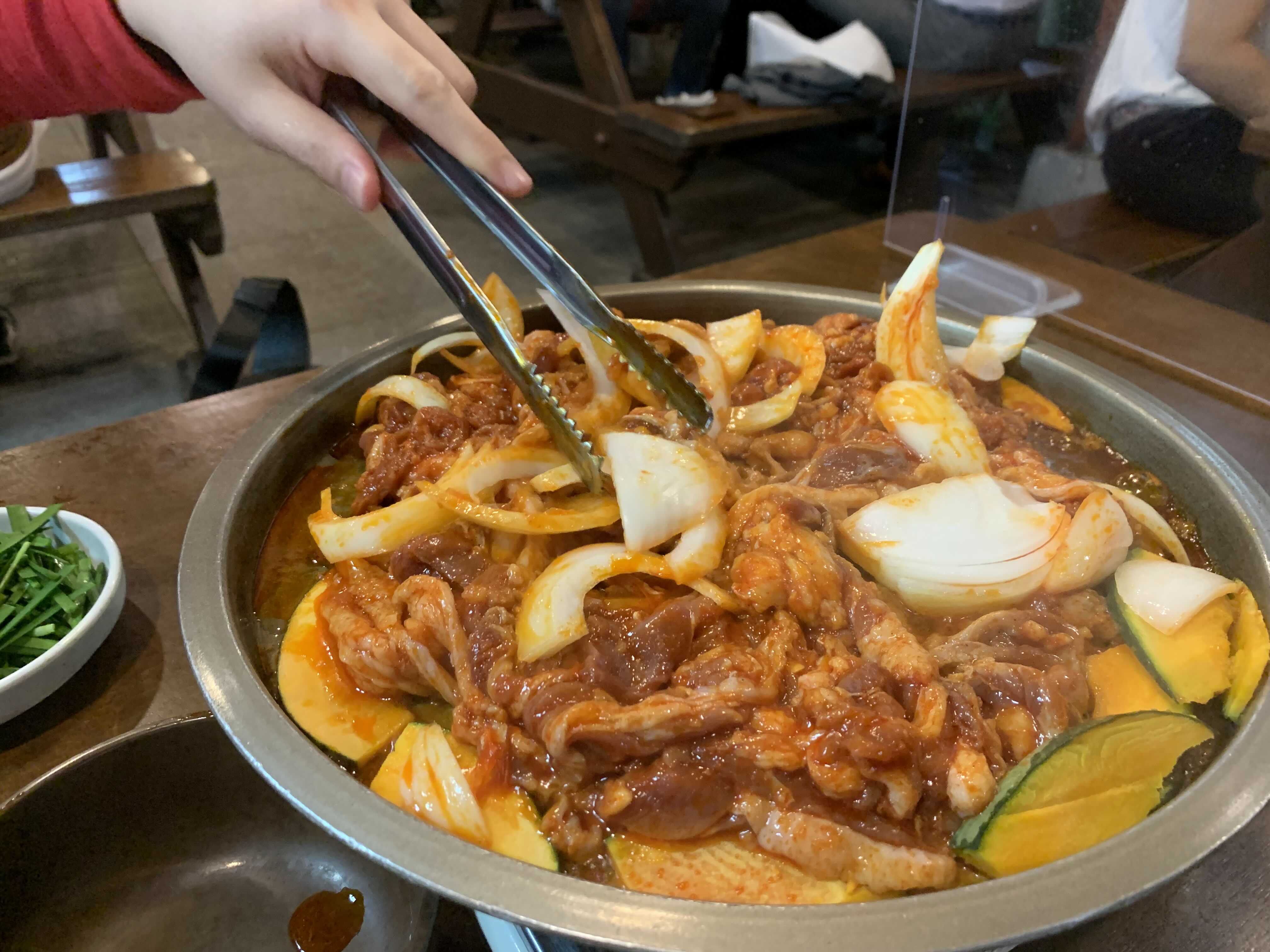 주문한 오리불고기가 준비됩니다.